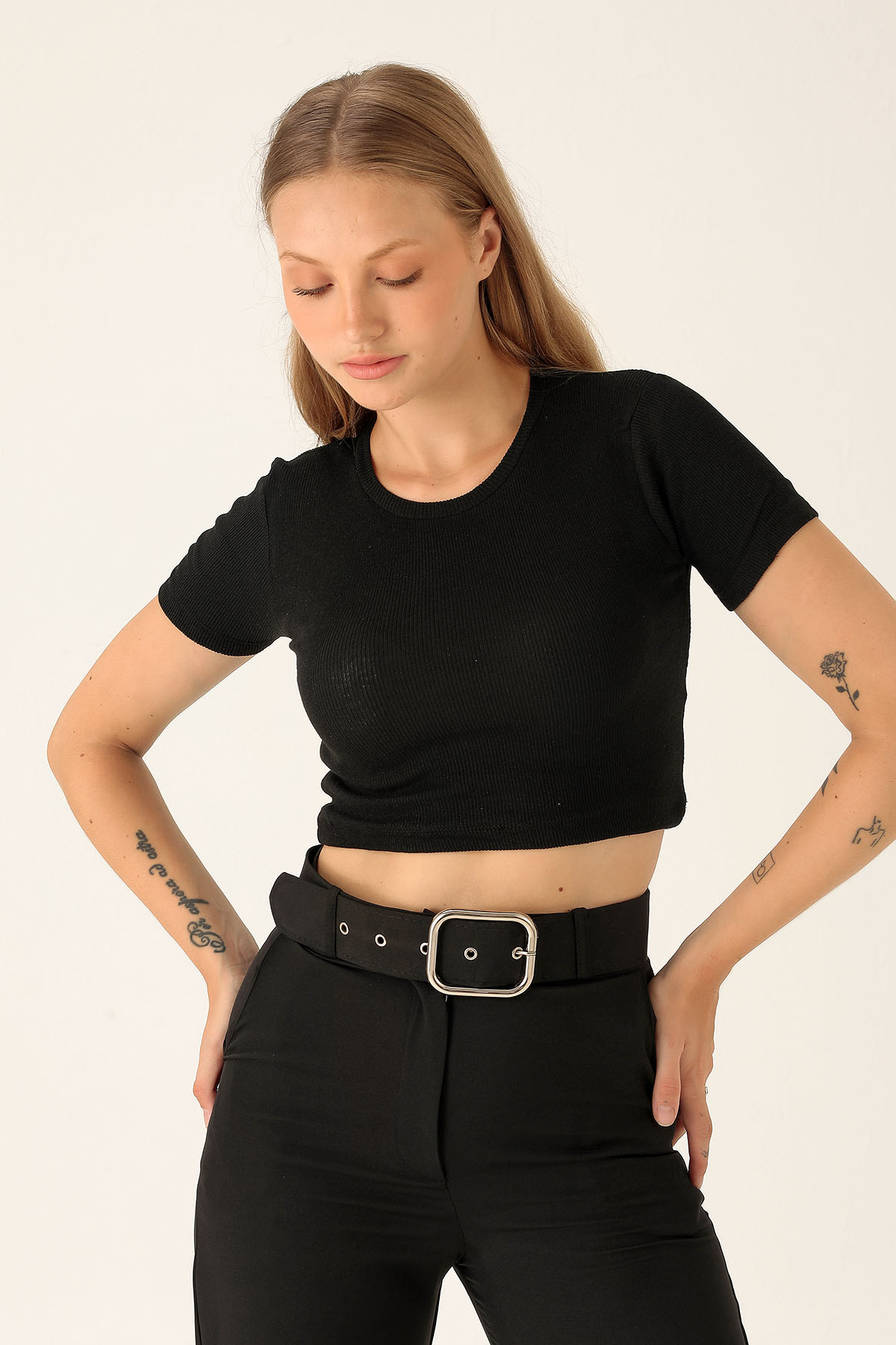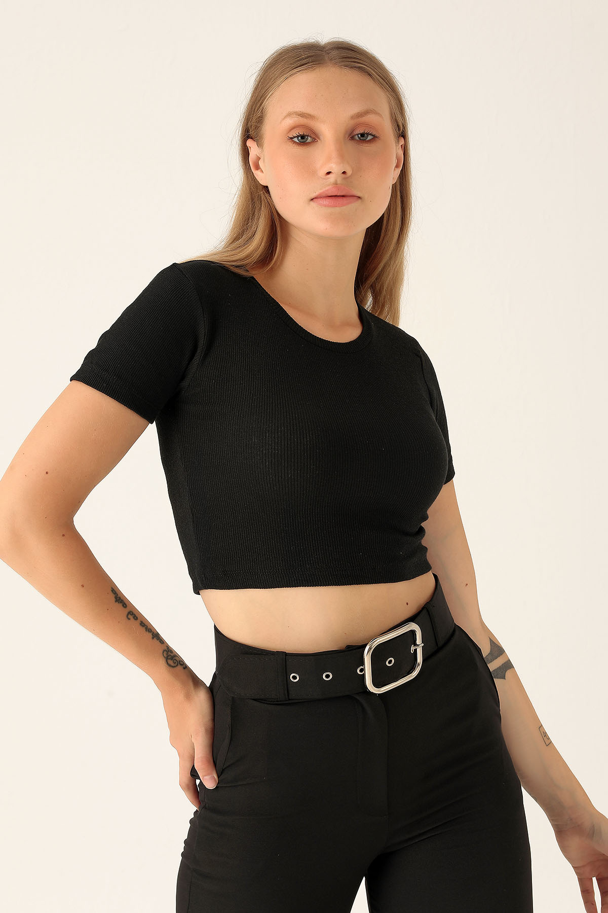 Bisiklet Yaka Bayan Bluz - 1405 Siyah