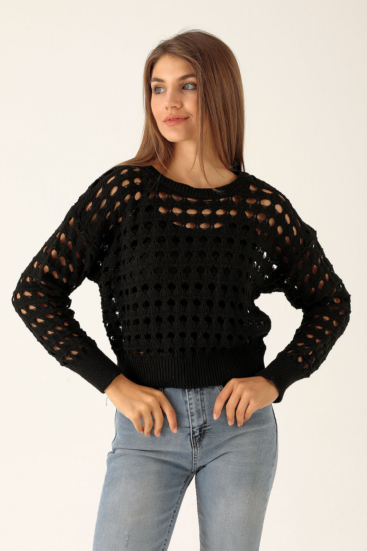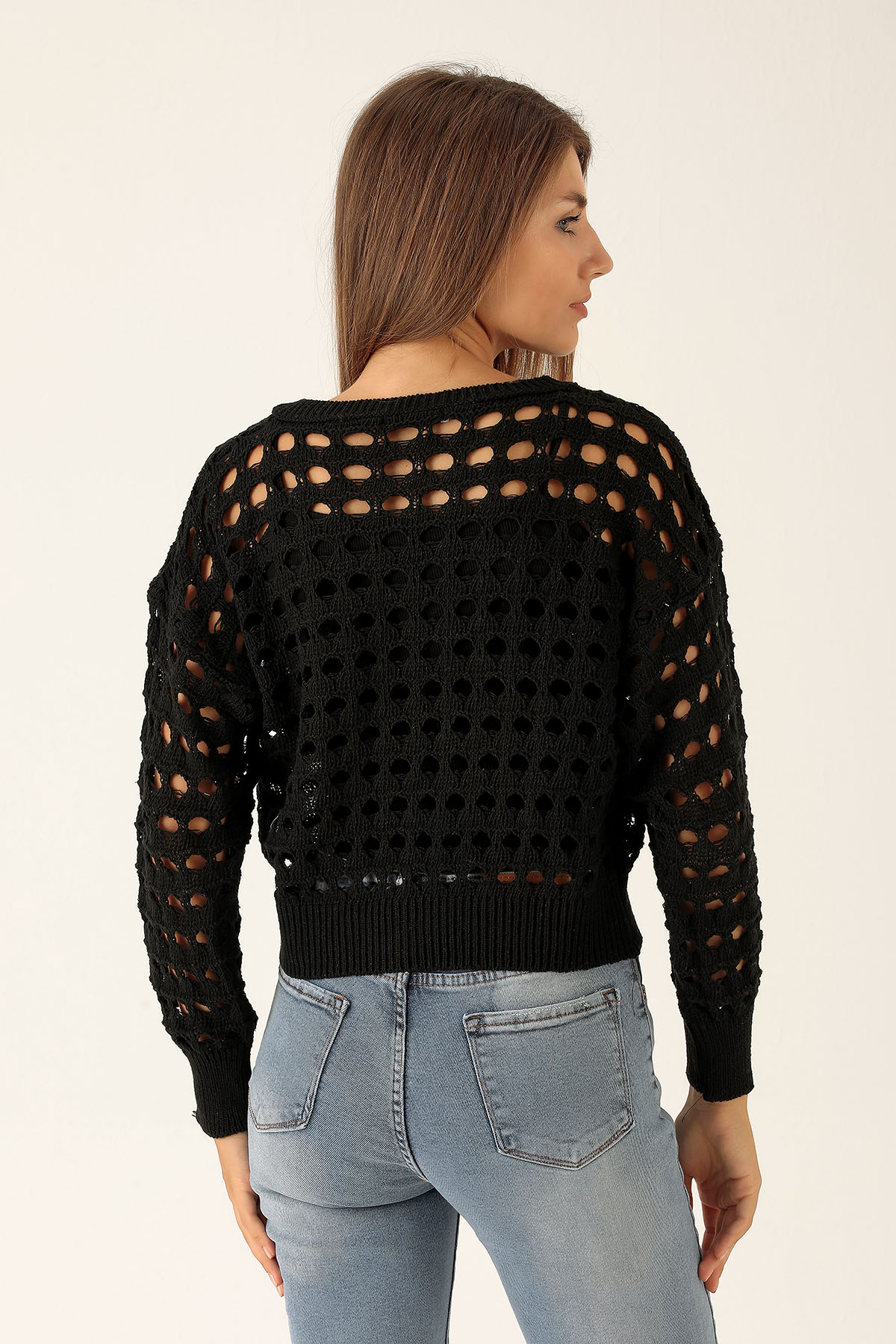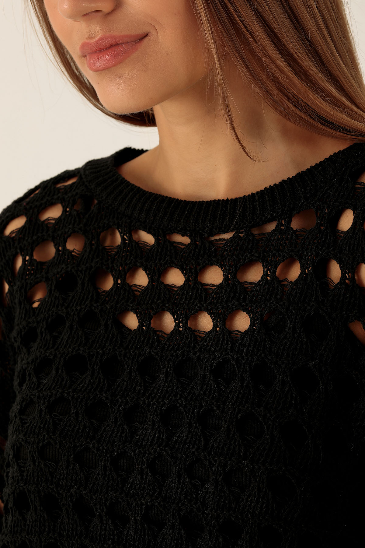 Bisiklet Yaka Delikli Kazak - 1533 Siyah