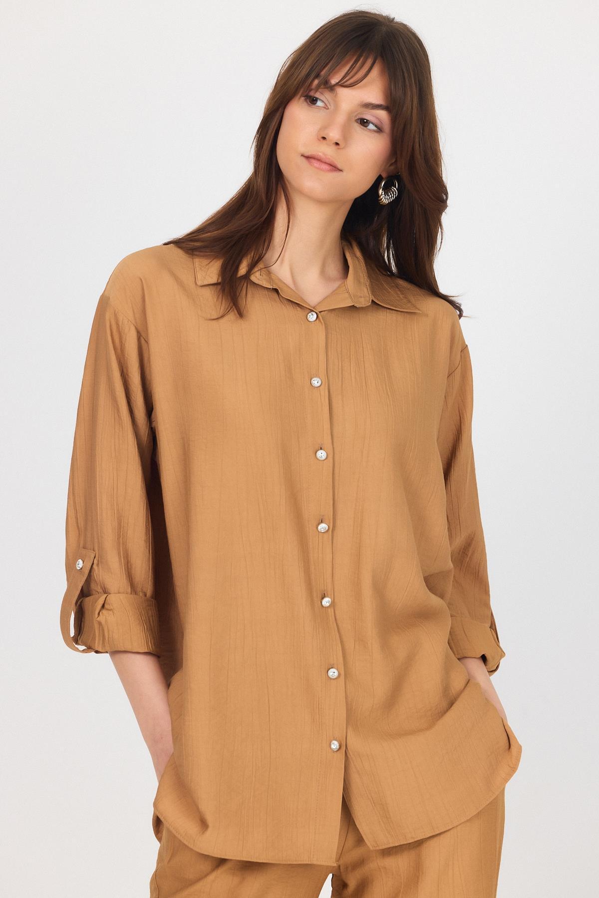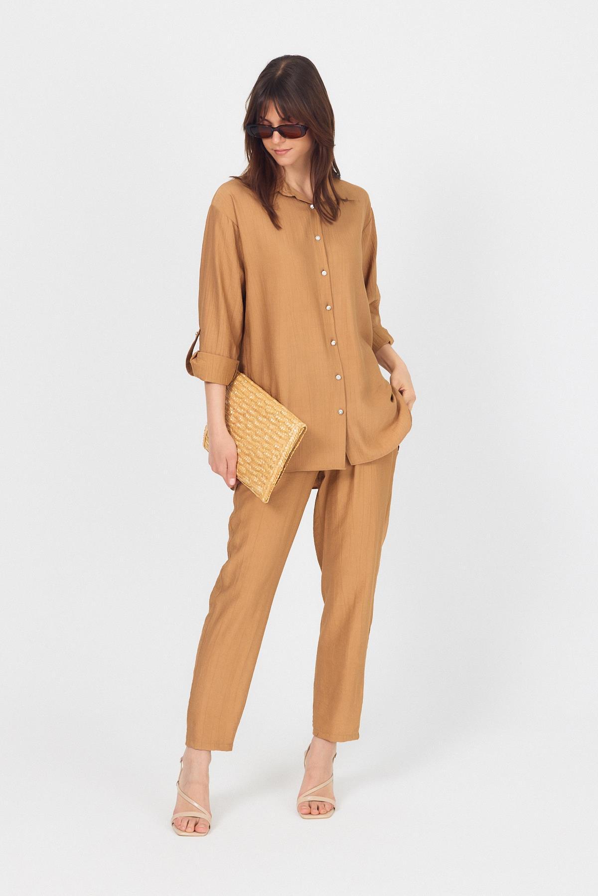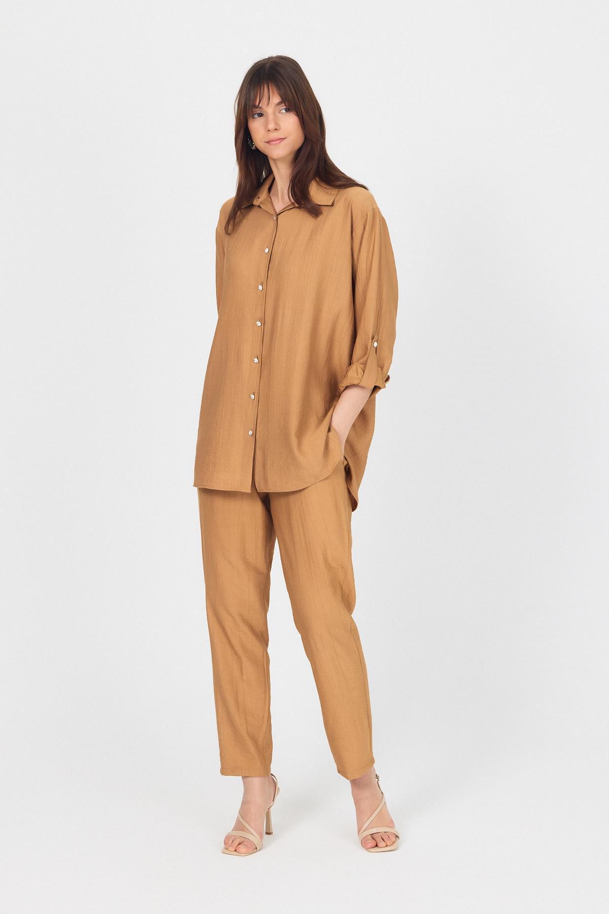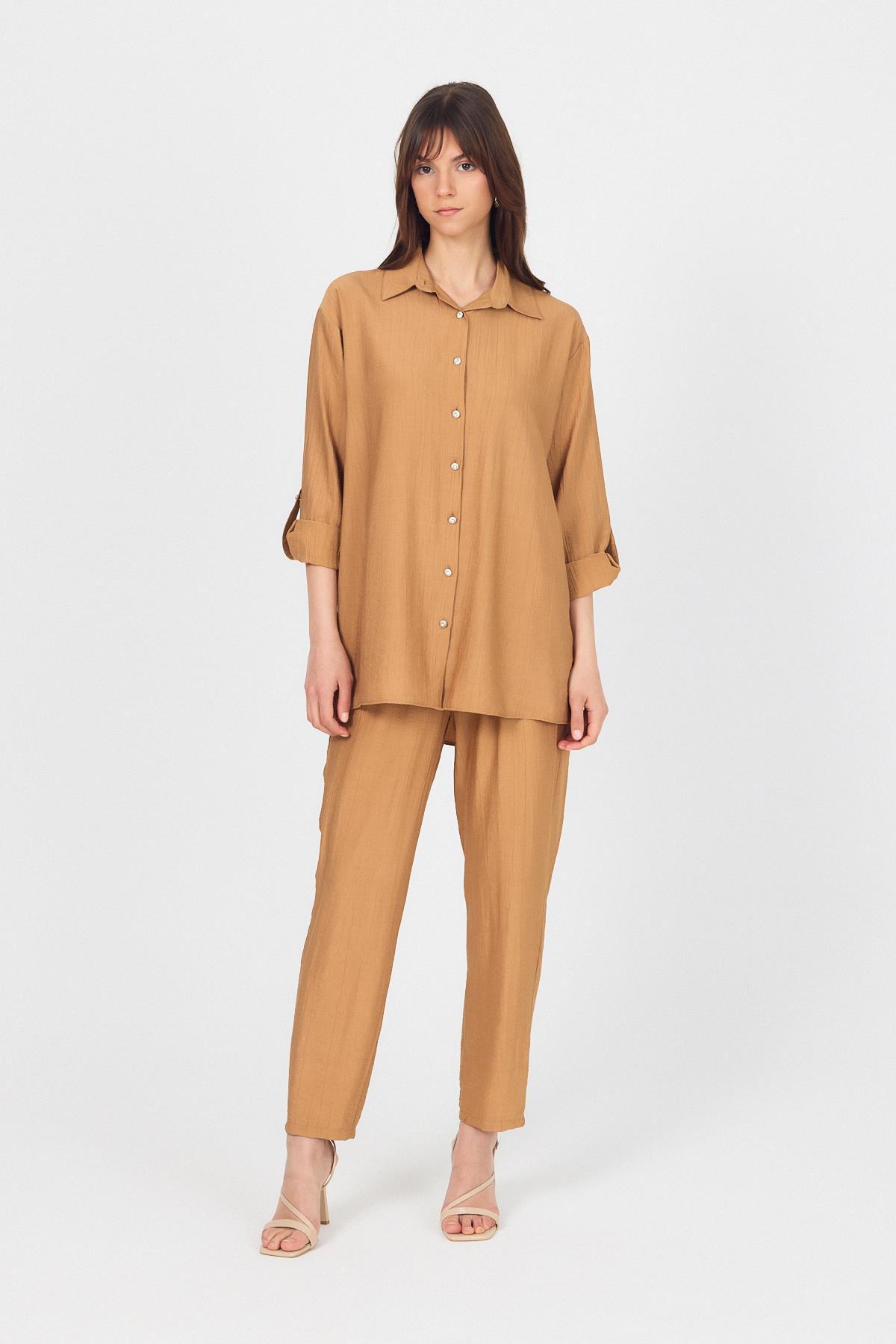 Bisküvi Dokuma Gömlek Pantolon İkili Takım 4607A