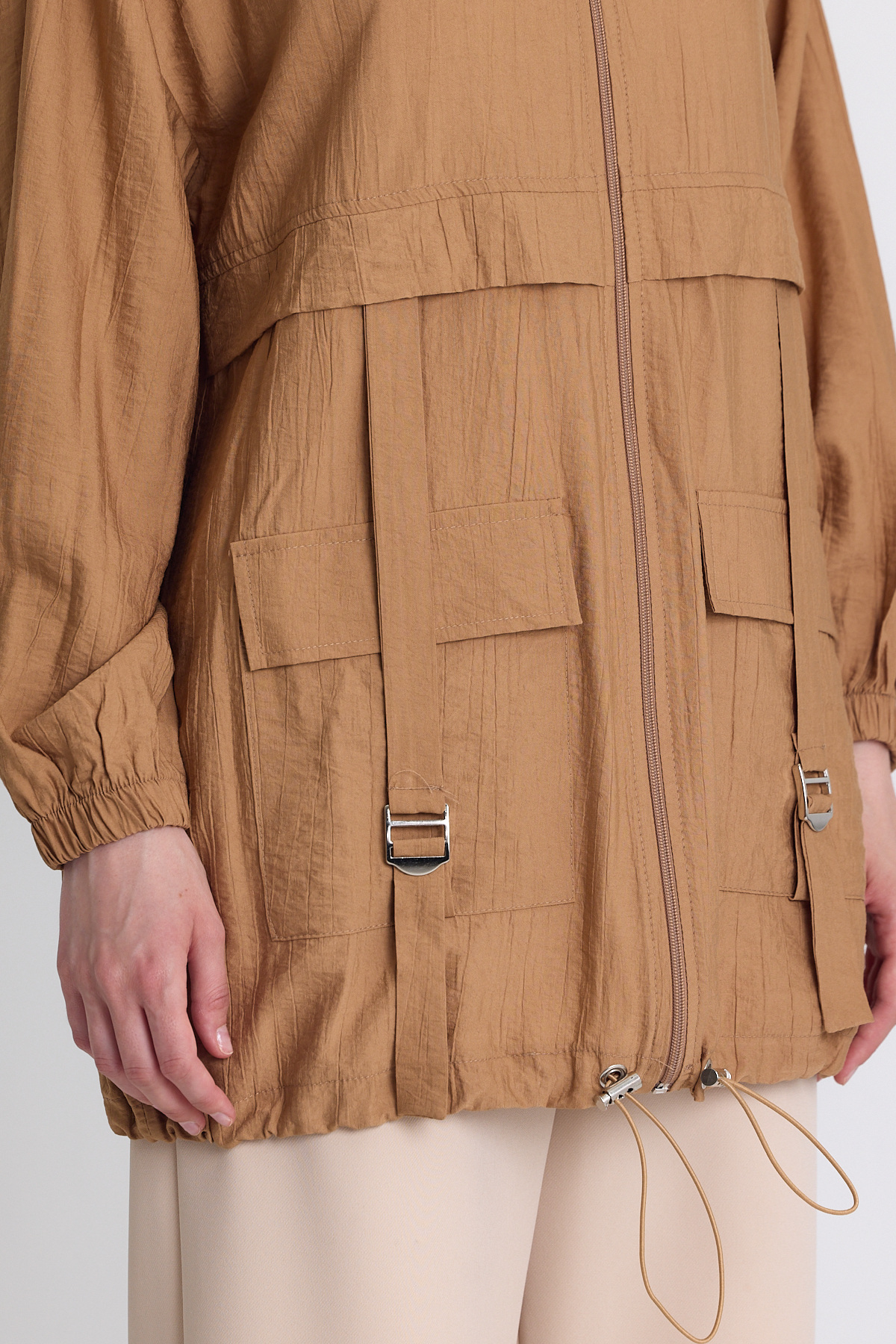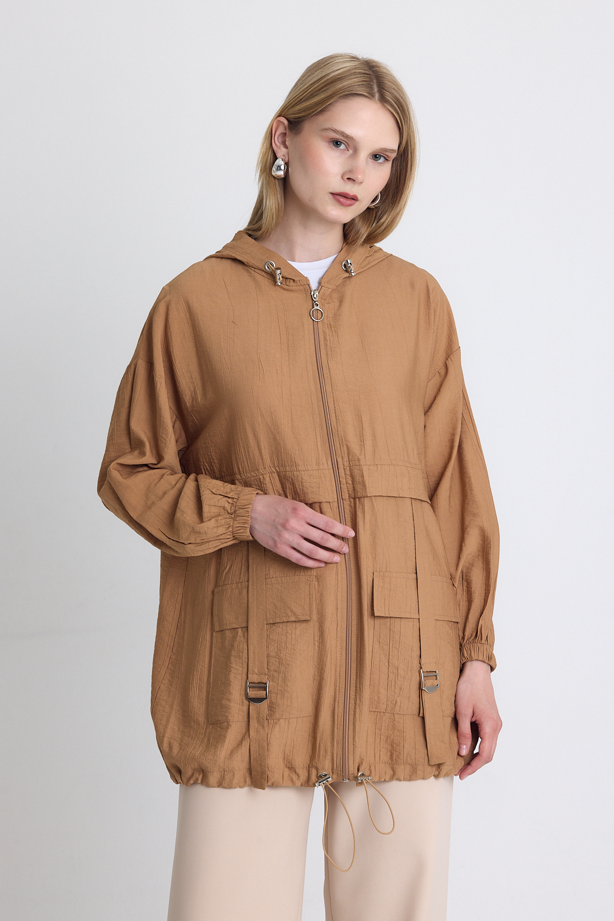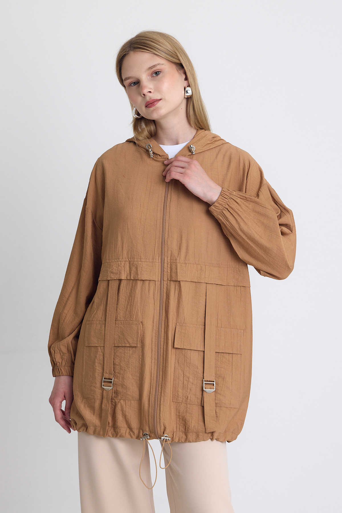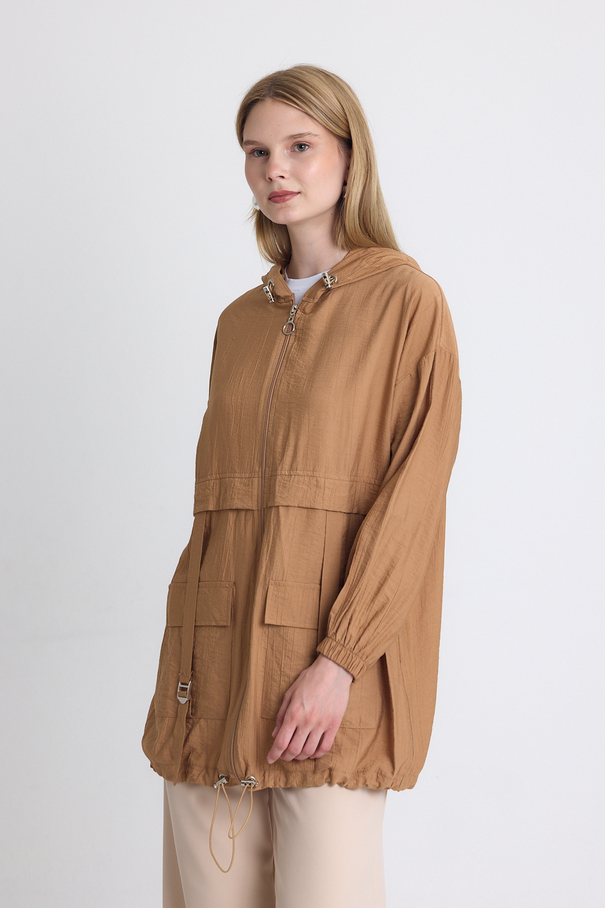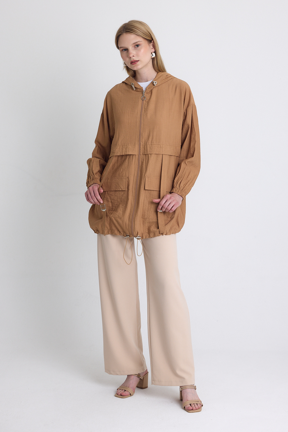 Bisküvi Kapüşonlu Cepli Fermuarlı Kap 4572A