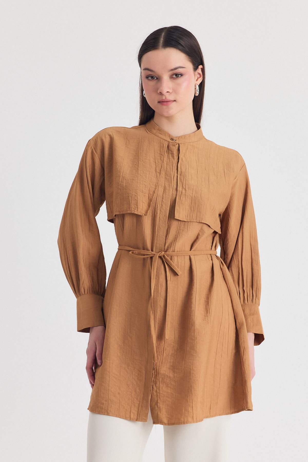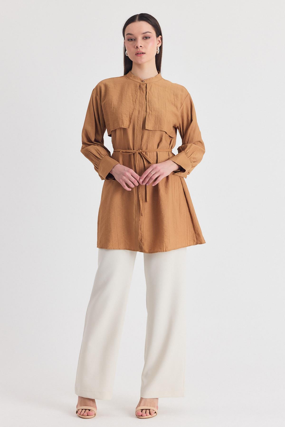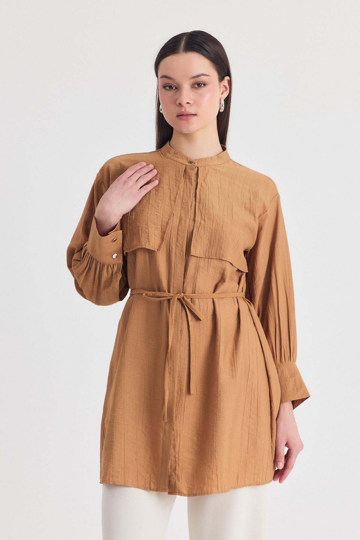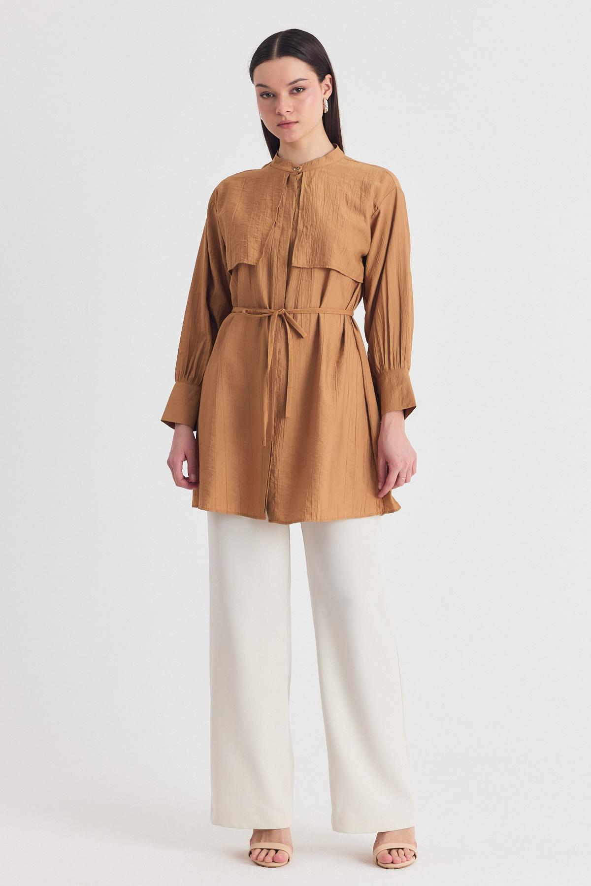 Bisküvi Parça Detaylı İp Bağcıklı Gömlek 4553A