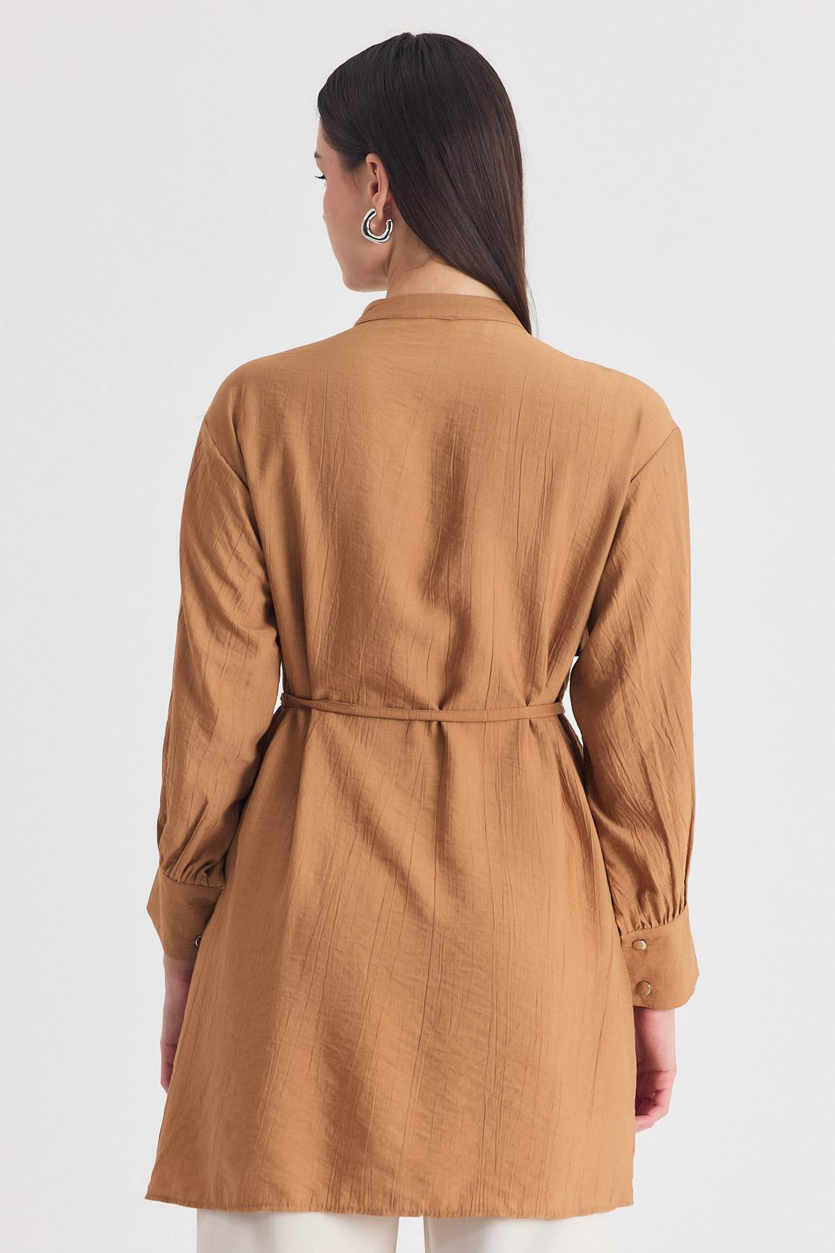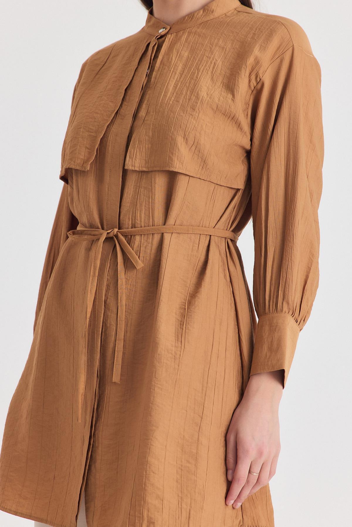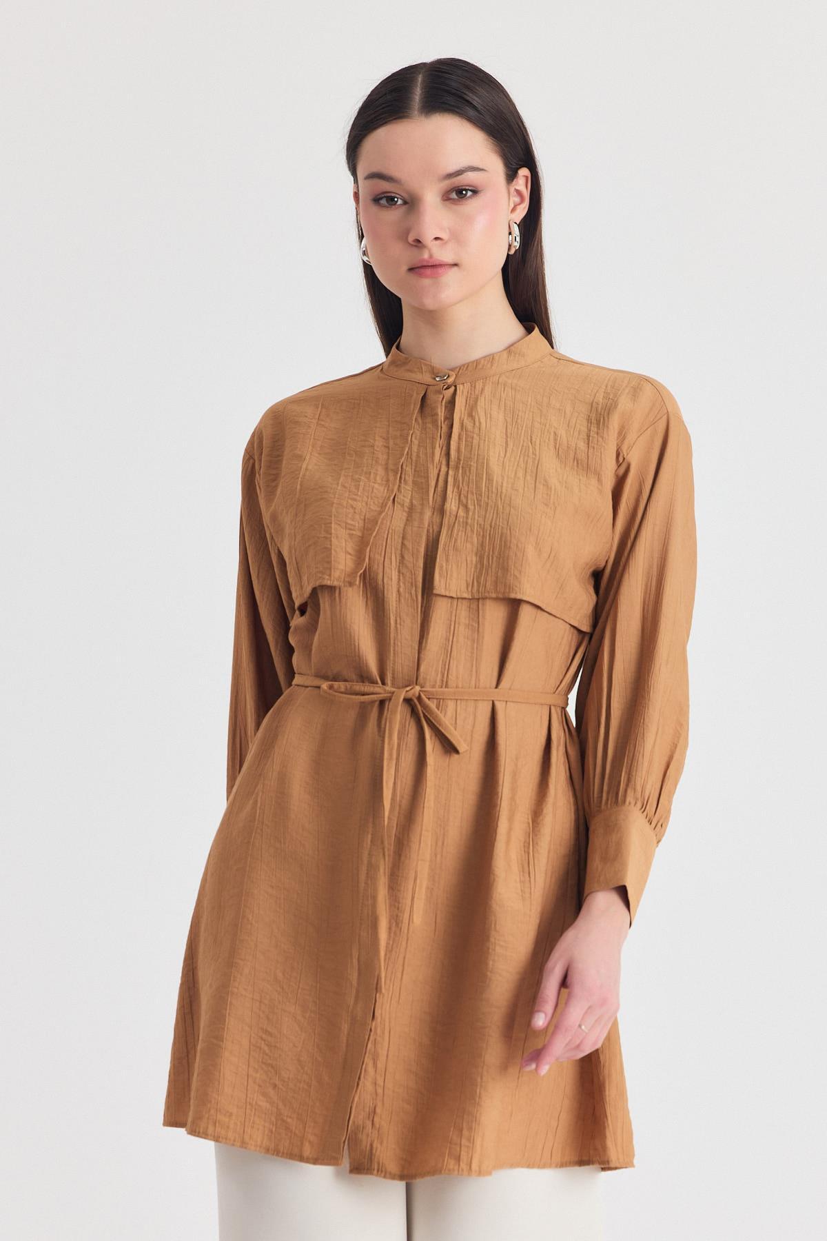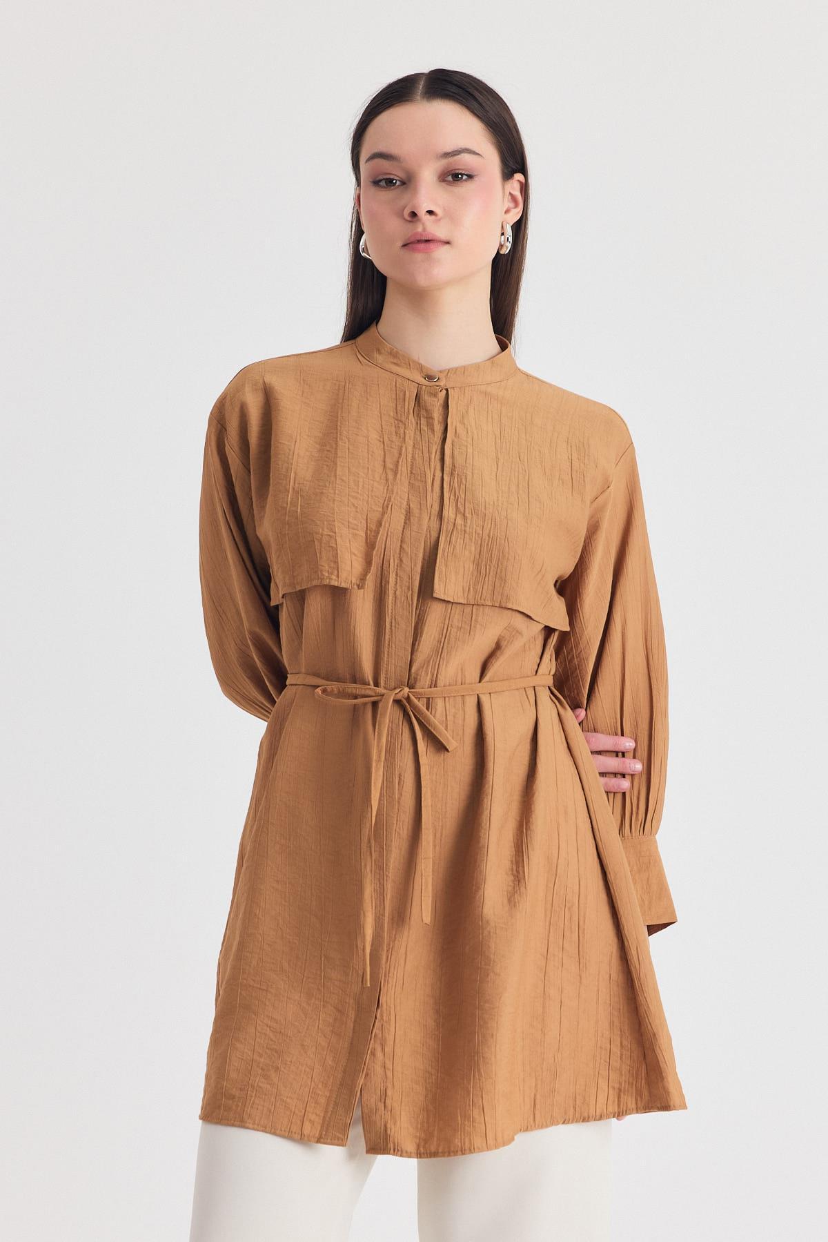 Bisküvi Parça Detaylı İp Bağcıklı Gömlek 4553A