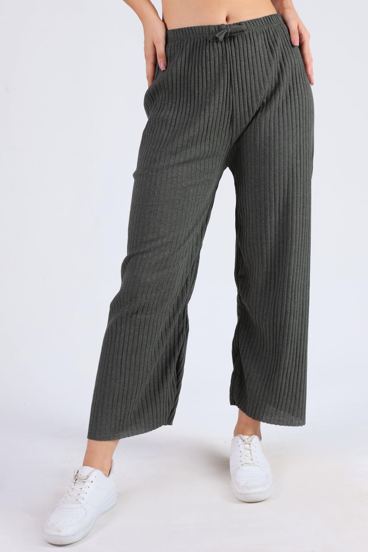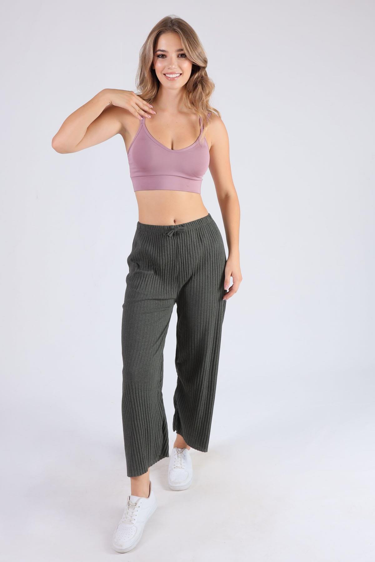 Haki Pileli Palazzo Pantolon 3871