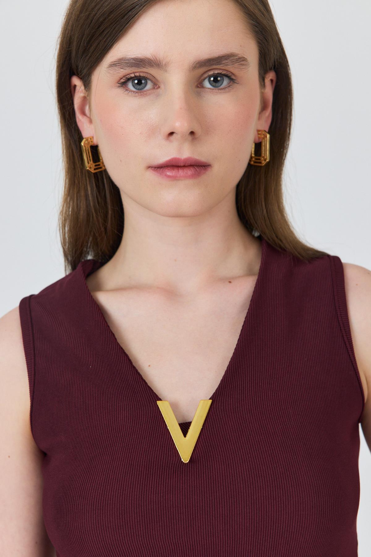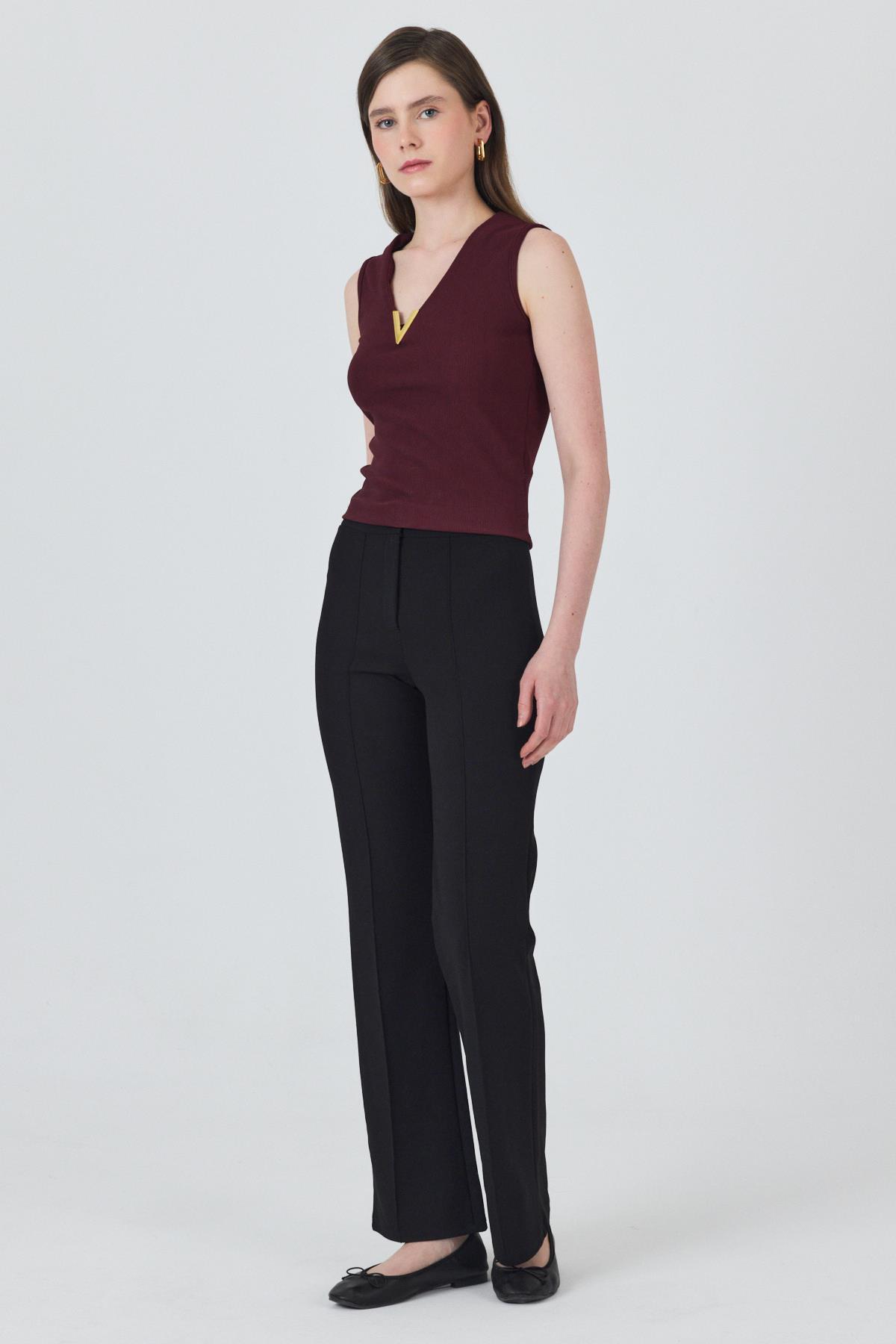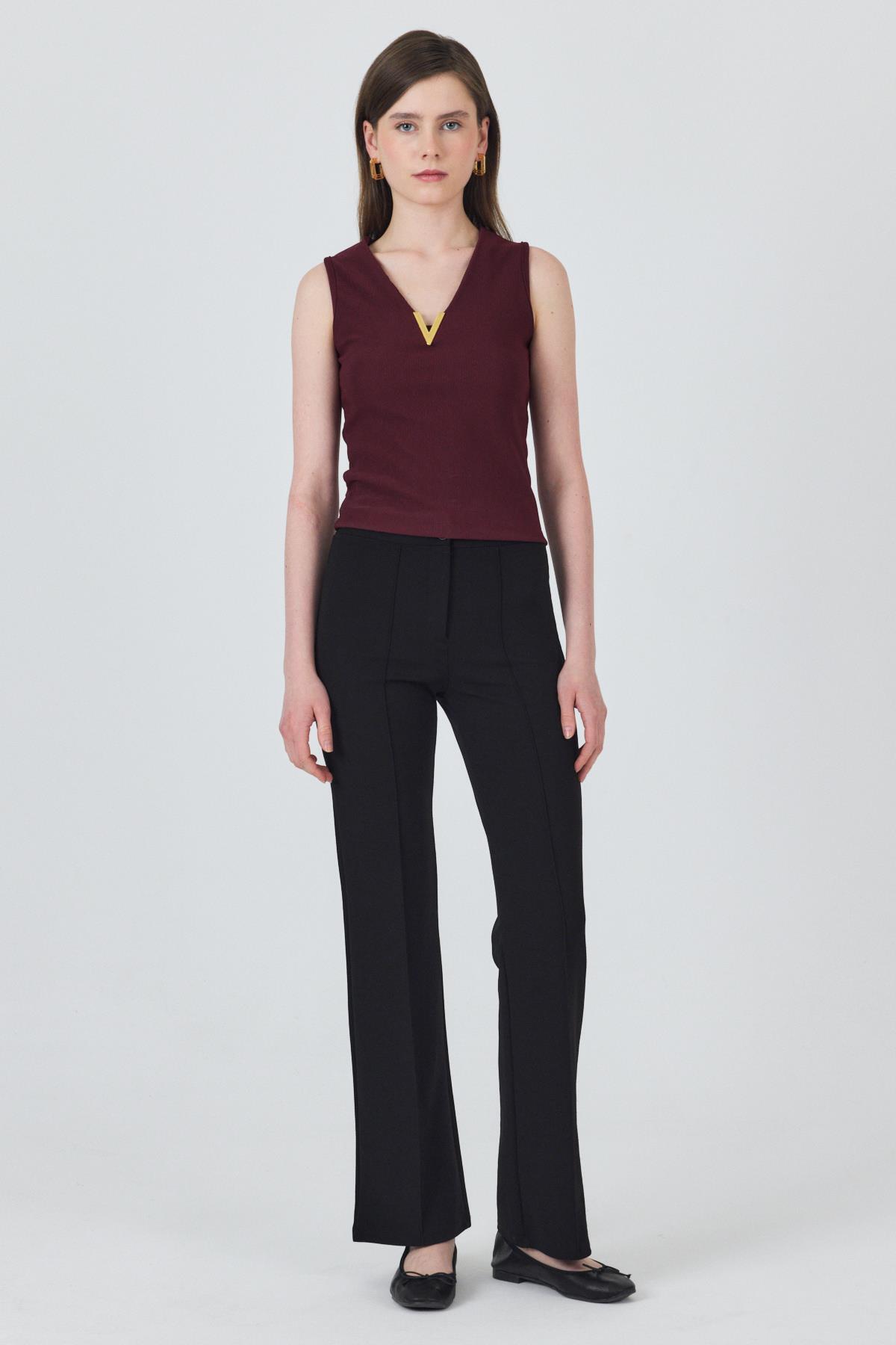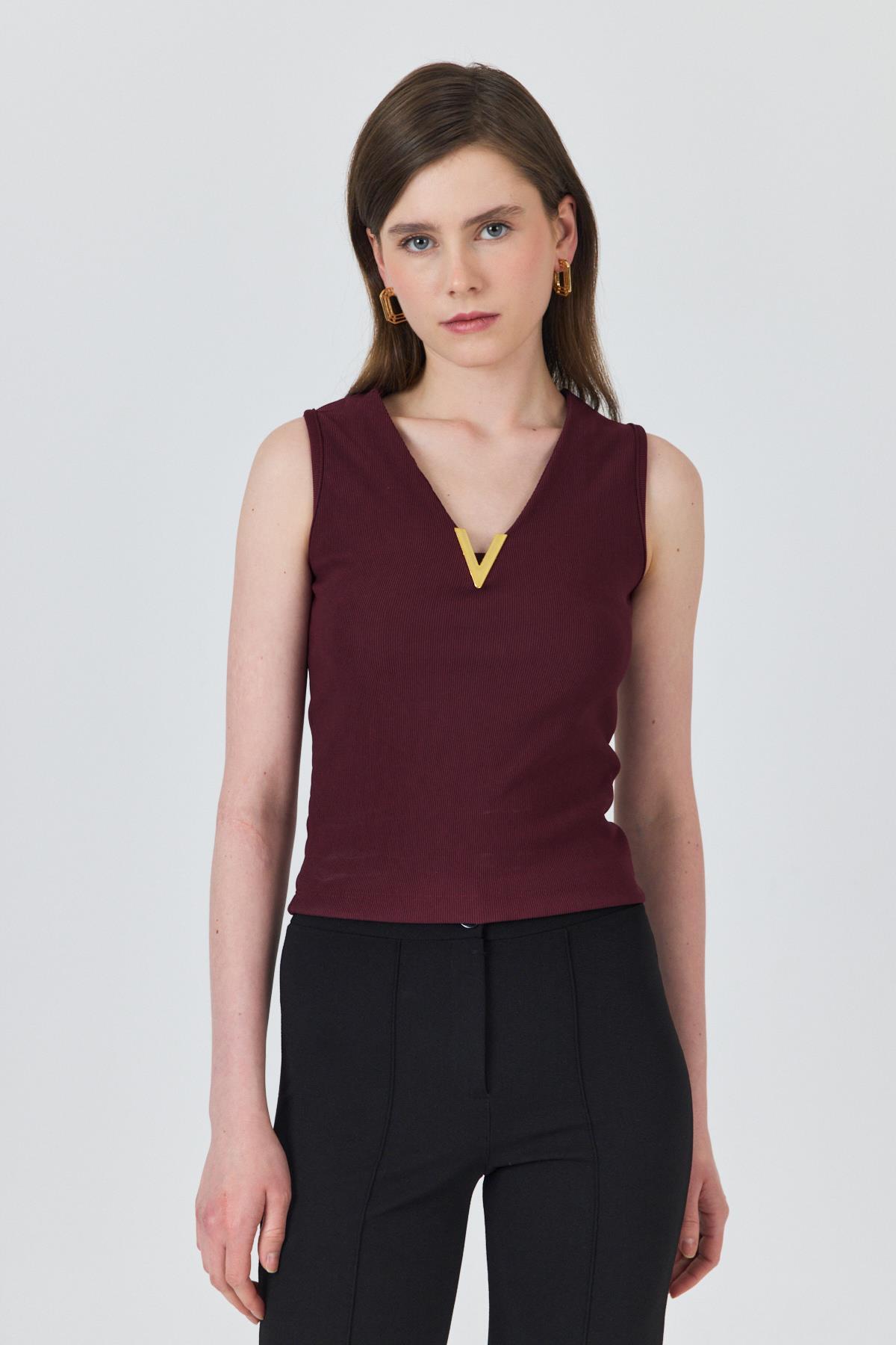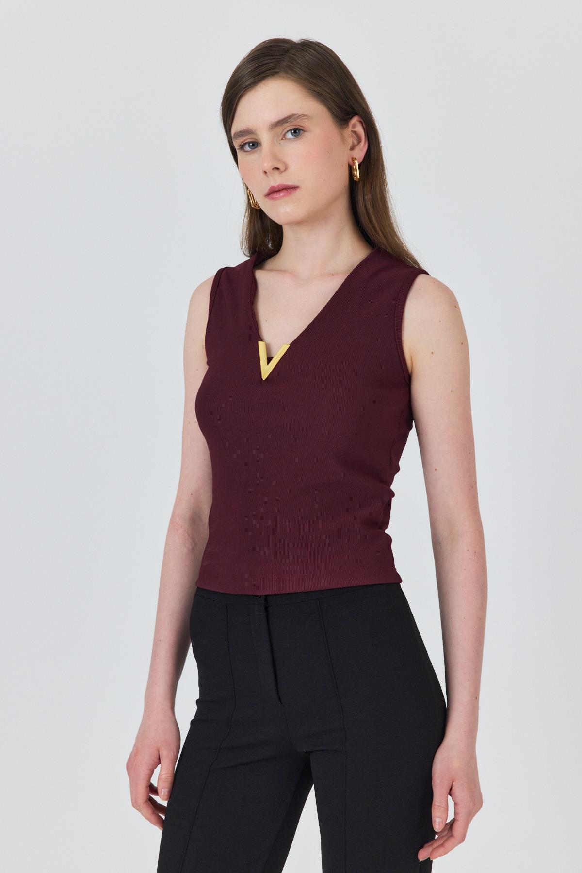 Bordo Aksesuar Detaylı Kolsuz Kadın Bluz 21545
