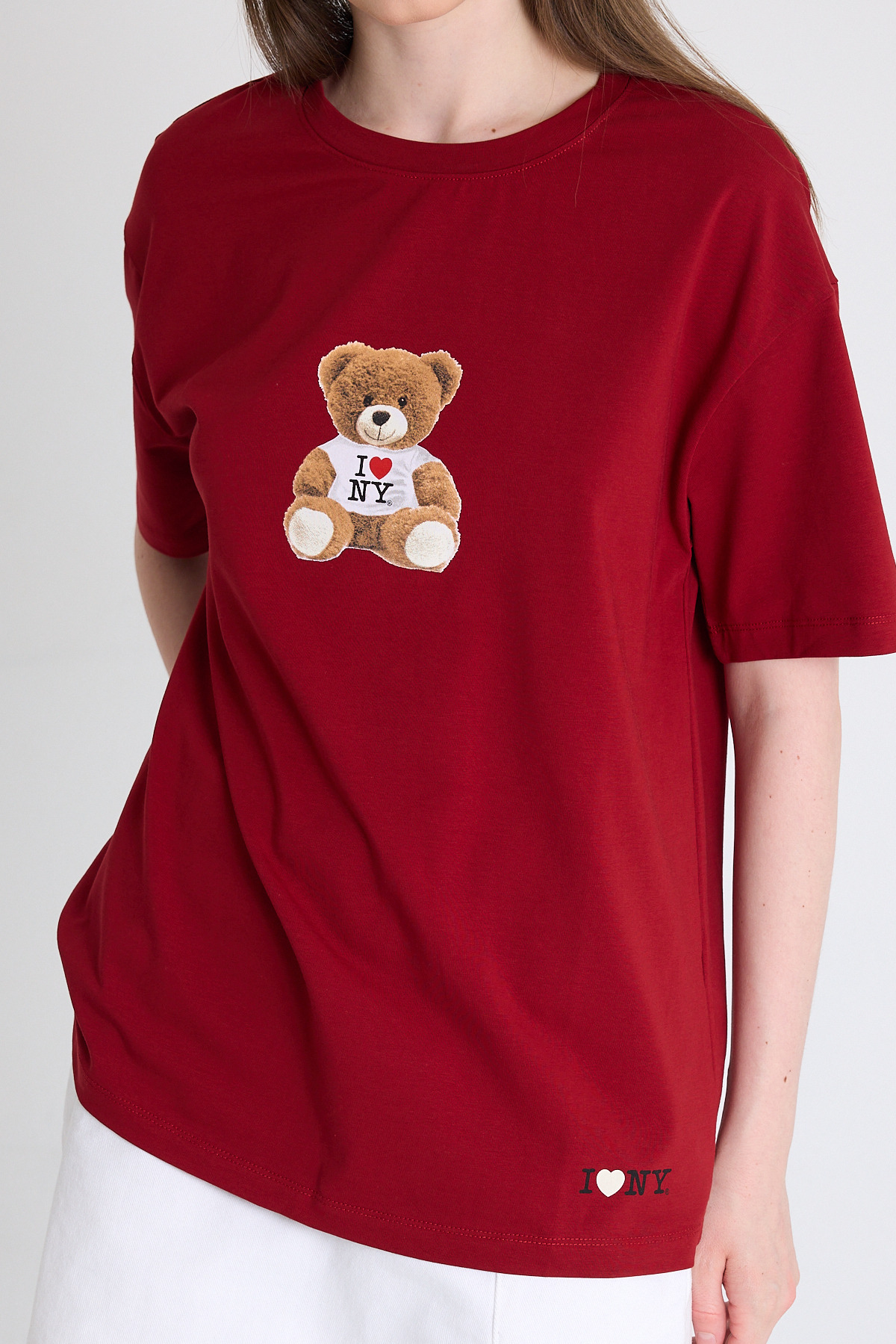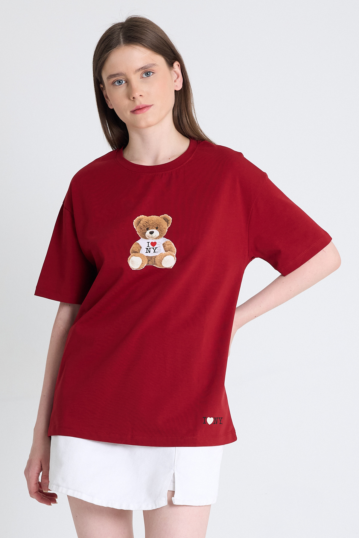 Bordo Ayı Baskılı Oversize Tişört 6402