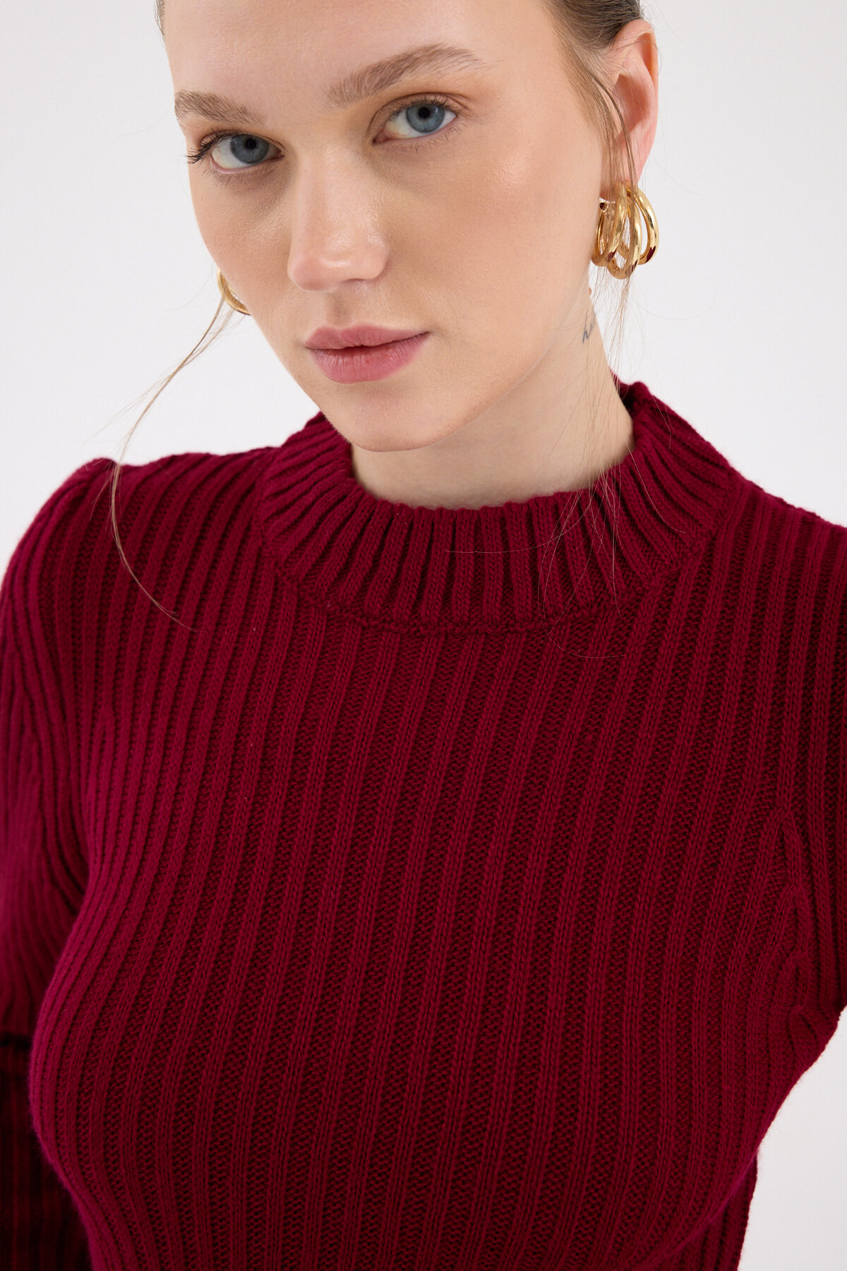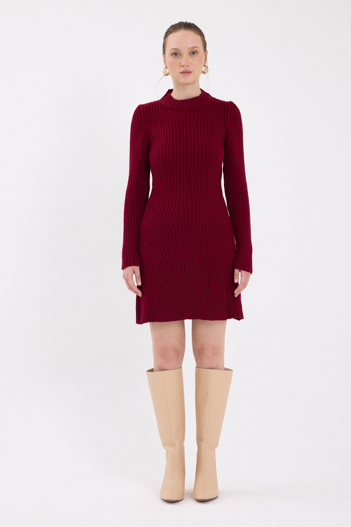 Bordo Balıkçı Yaka Triko Mini Elbise 1907