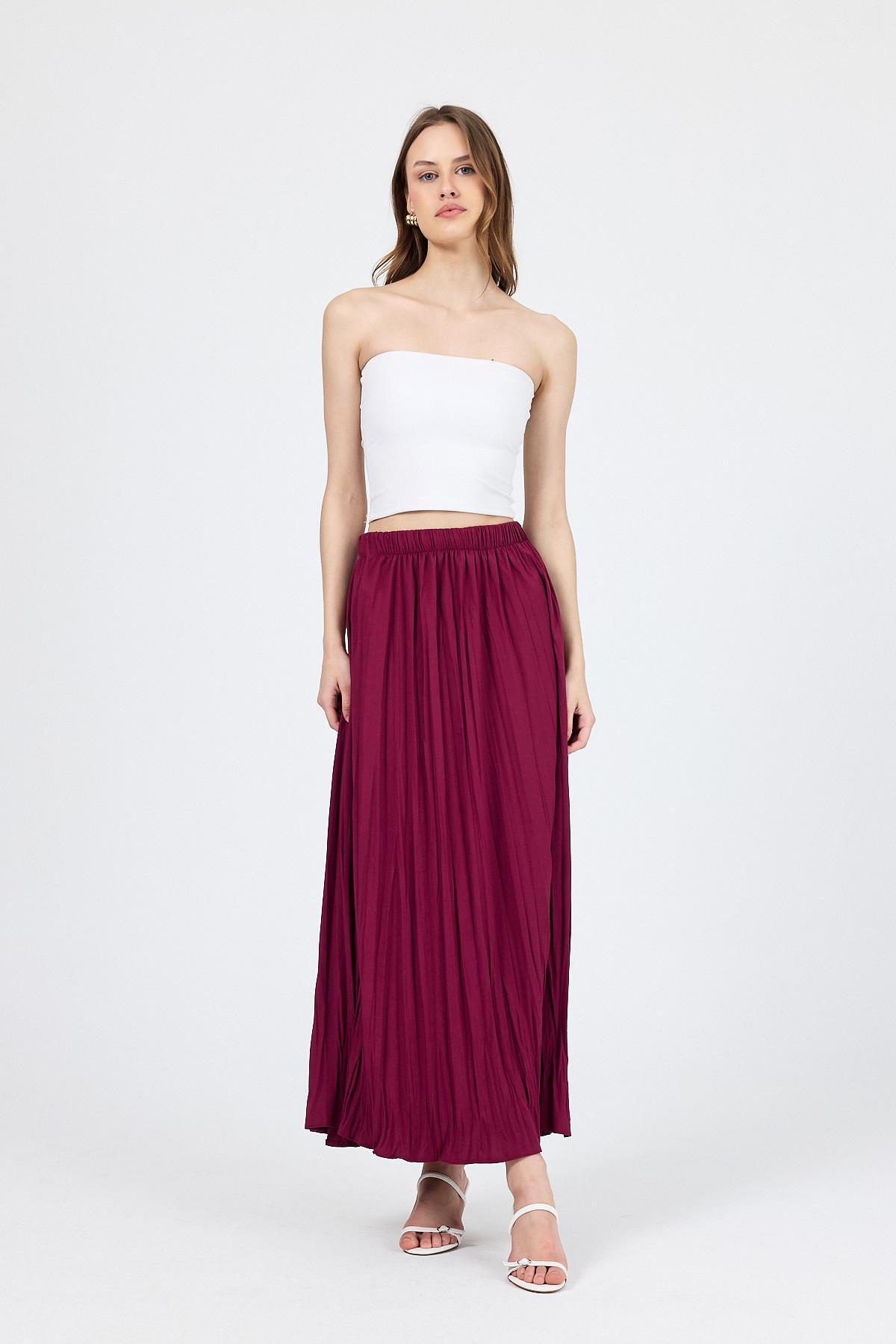 Bordo Beli Lastikli Kırışık Kumaş Etek 4692A