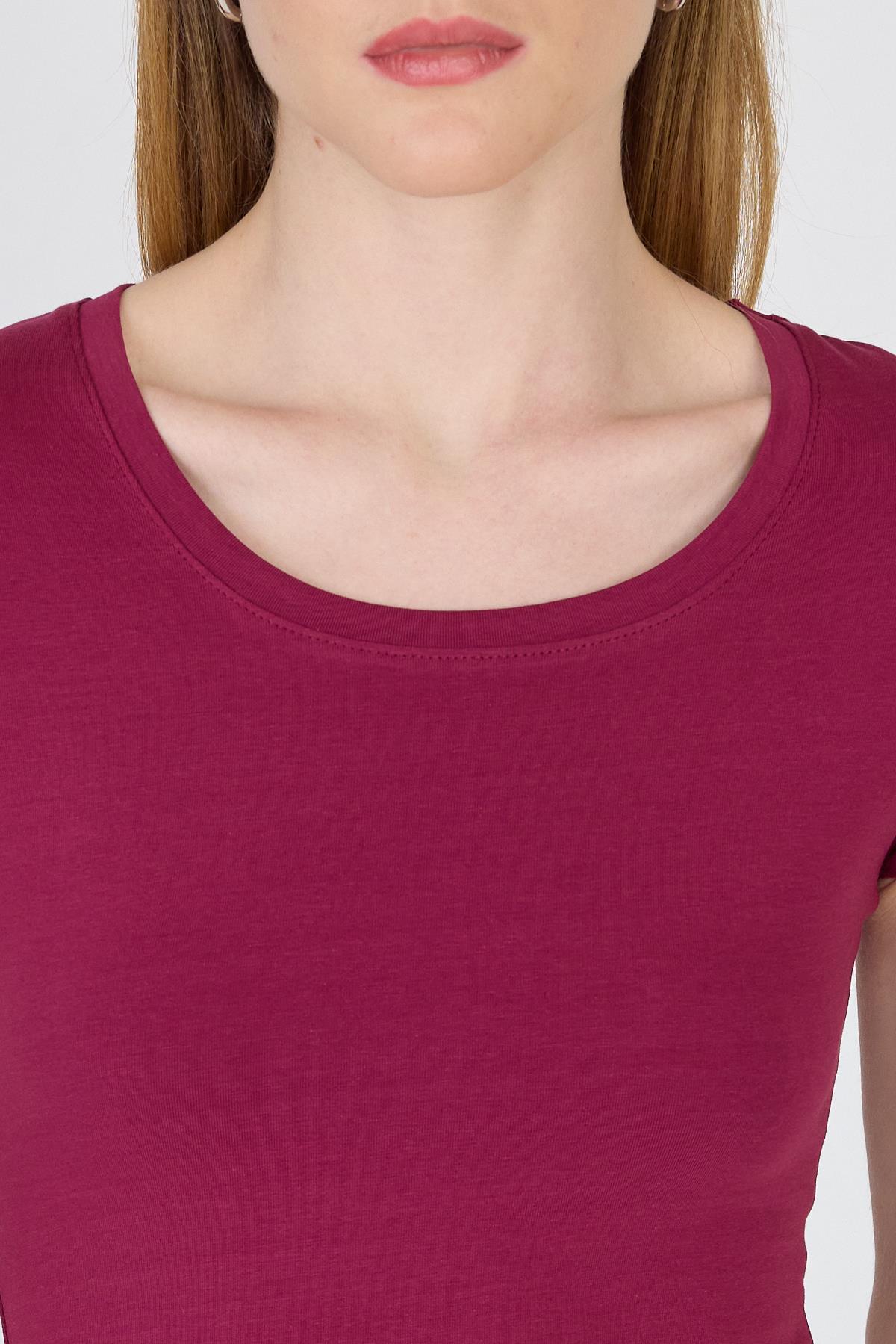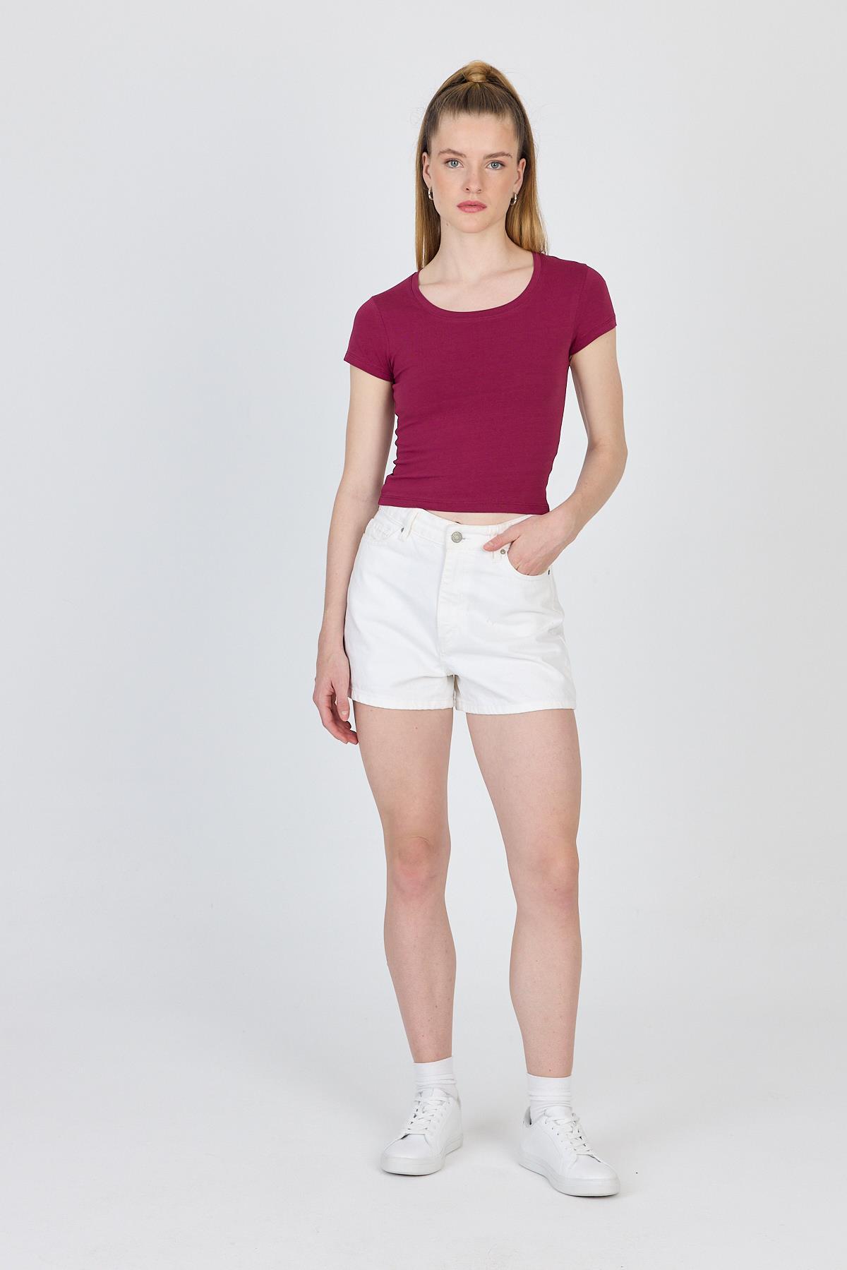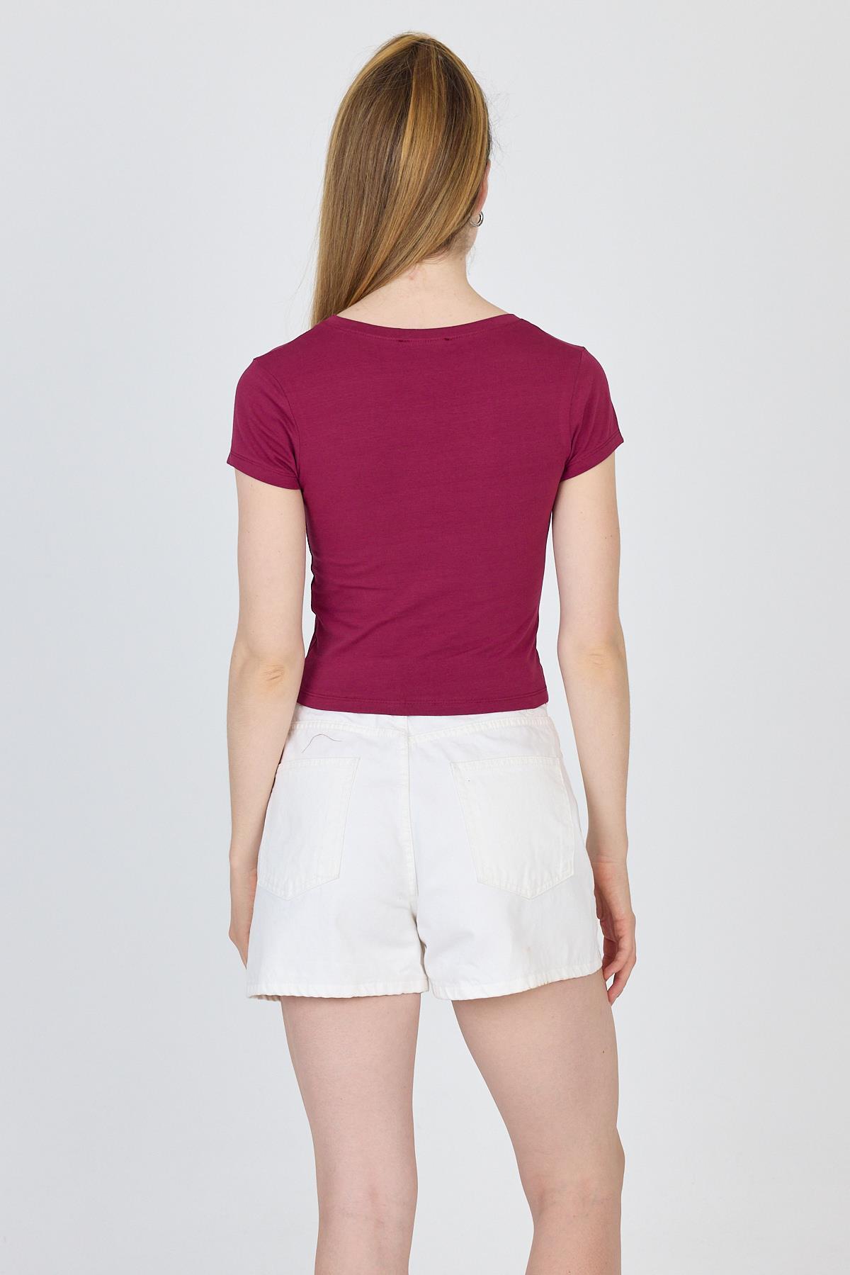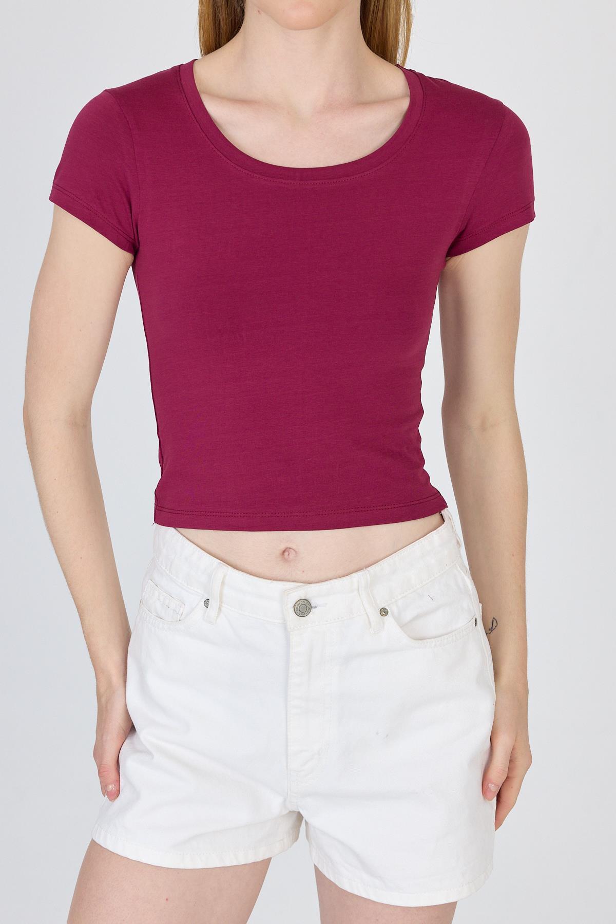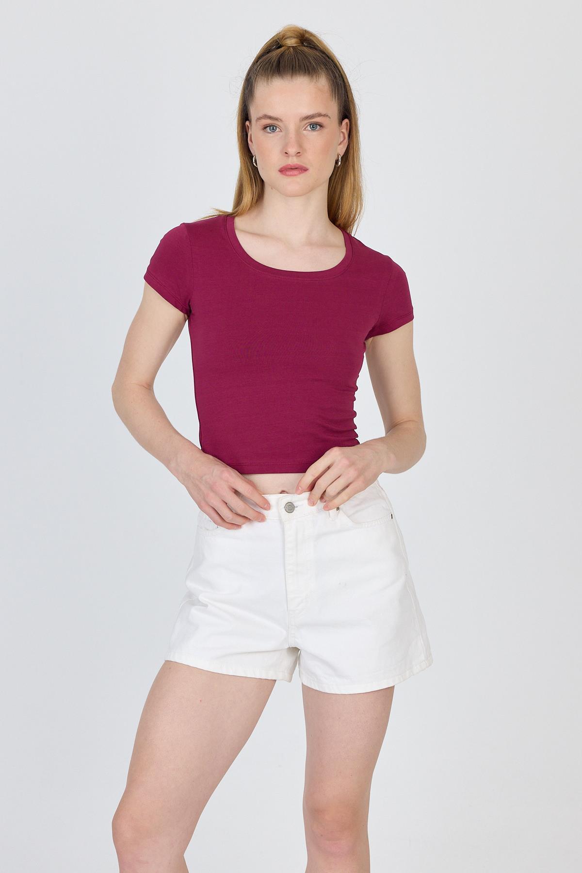 Bordo Bisiklet Yaka Basic Crop Tişört 9200M