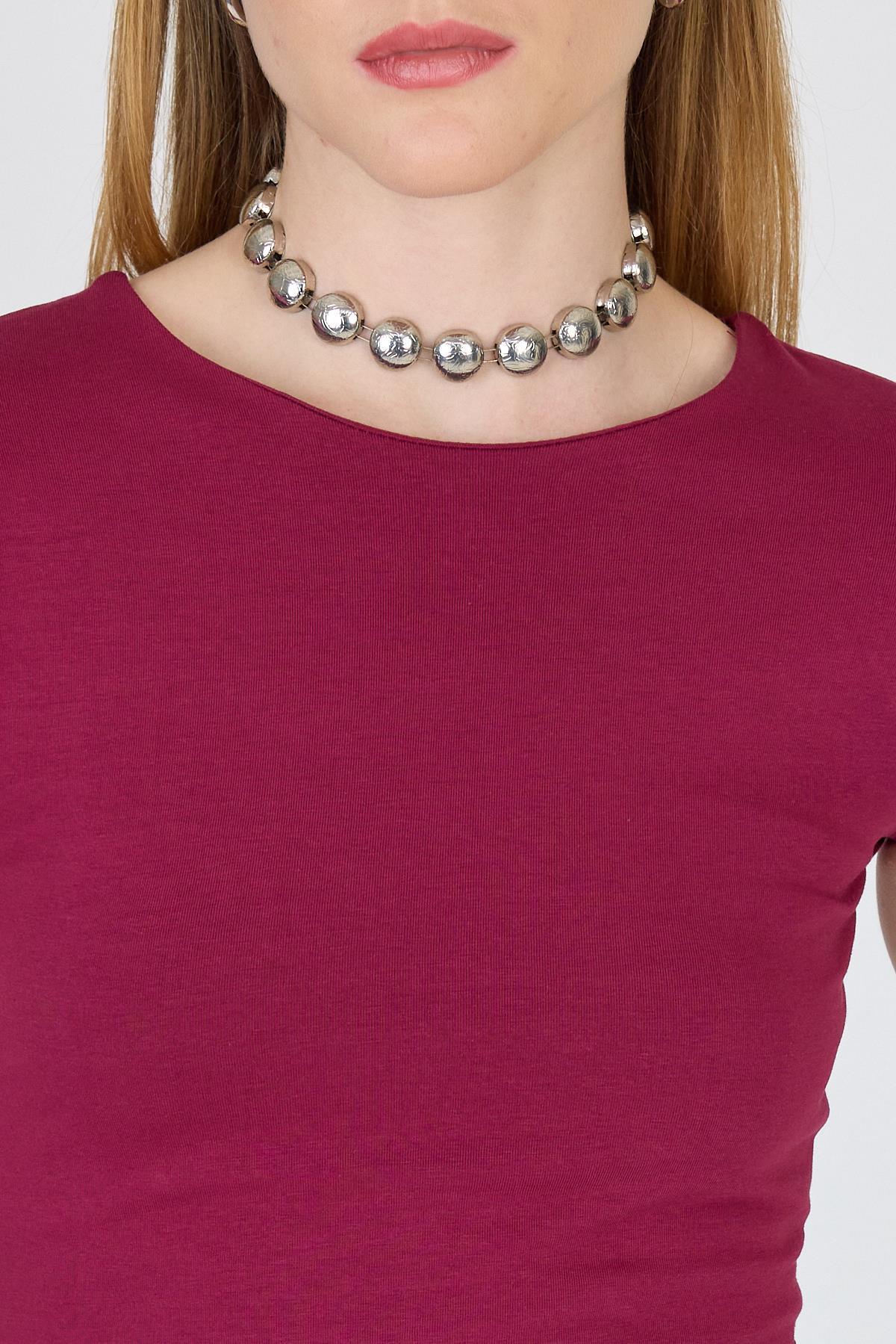 Bordo Bisiklet Yaka Pamuklu Slim Fit Tişört 9190