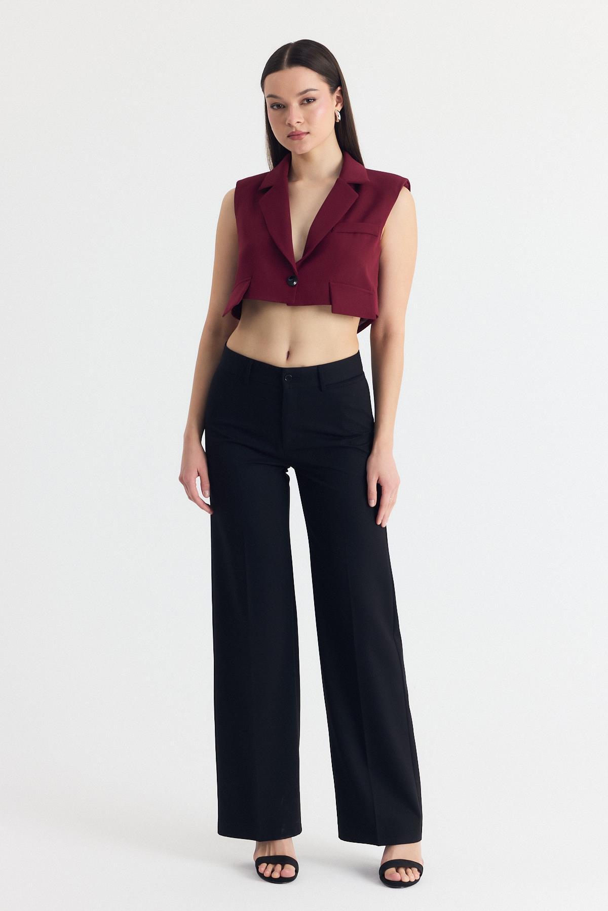 Bordo Crop Vatkalı Tek Düğme Cep Detay Yelek 6929