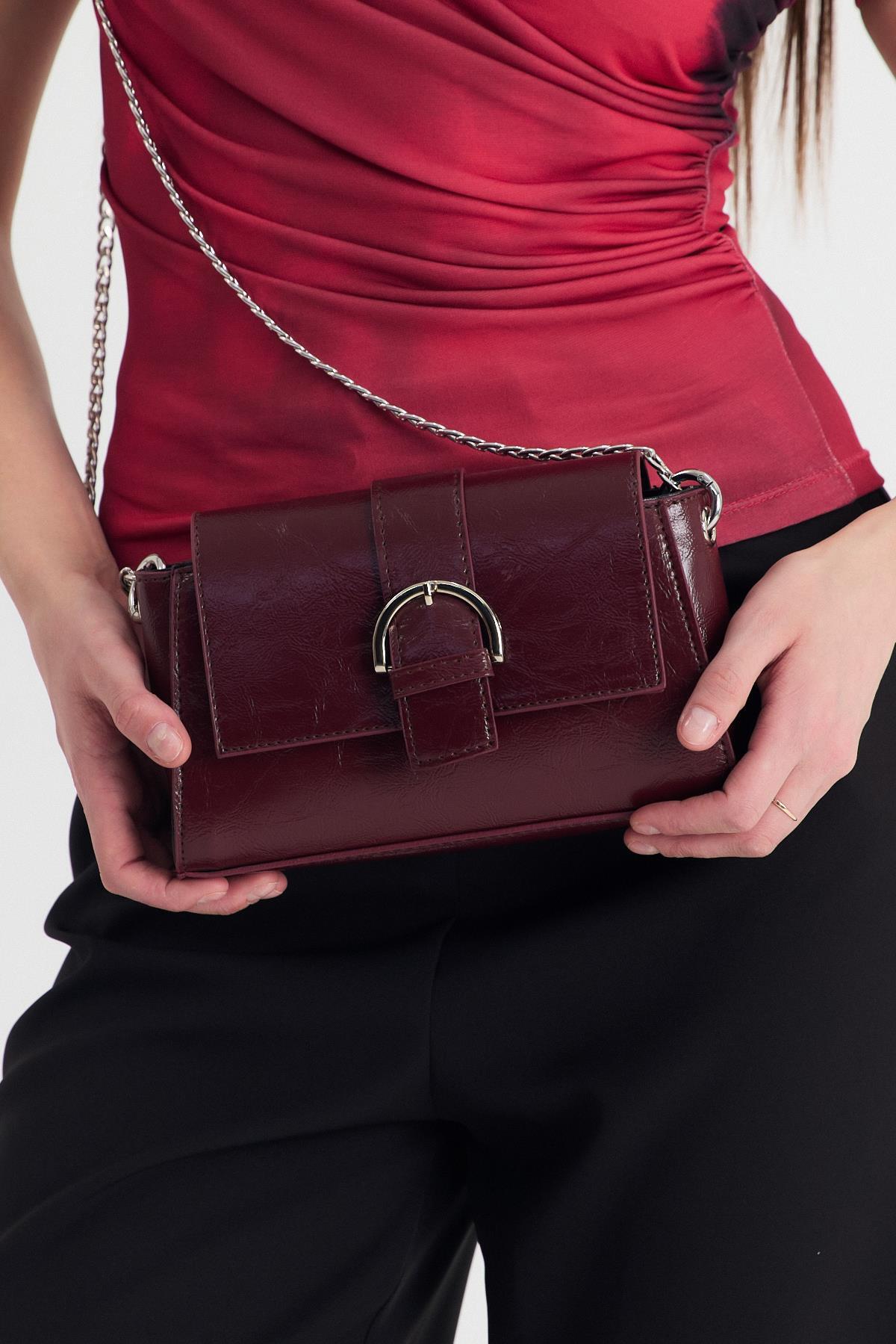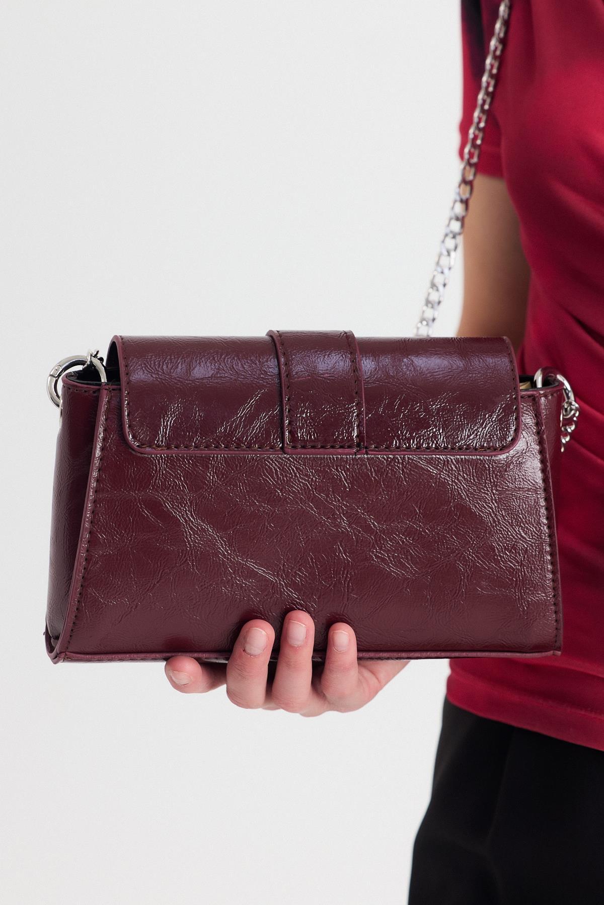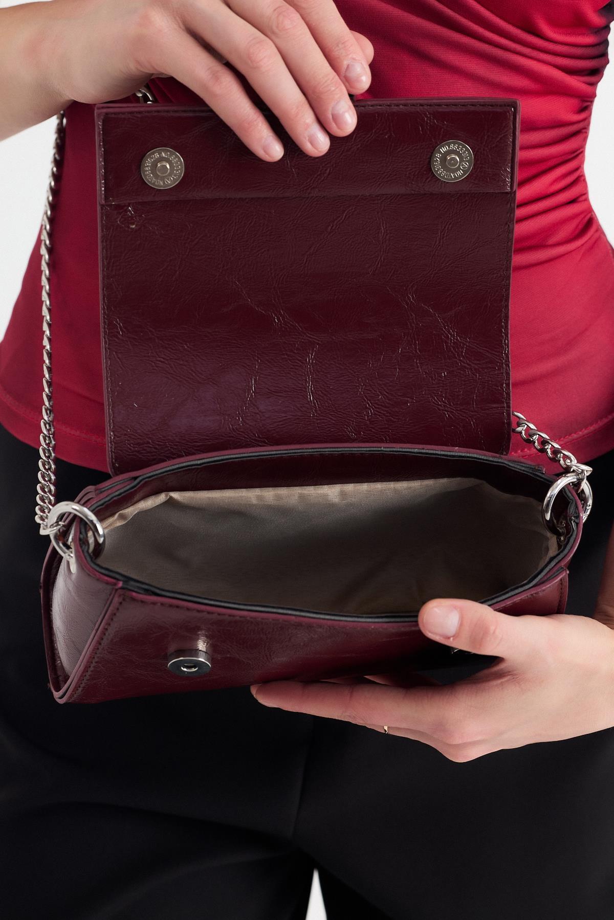 Bordo Deri Görünümlü Omuz Çantası 3023