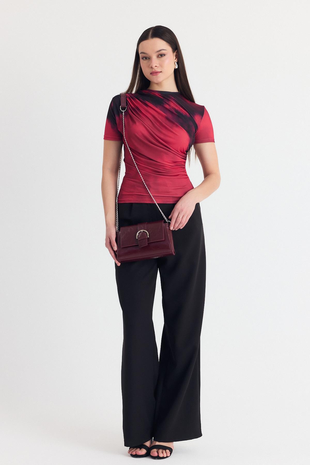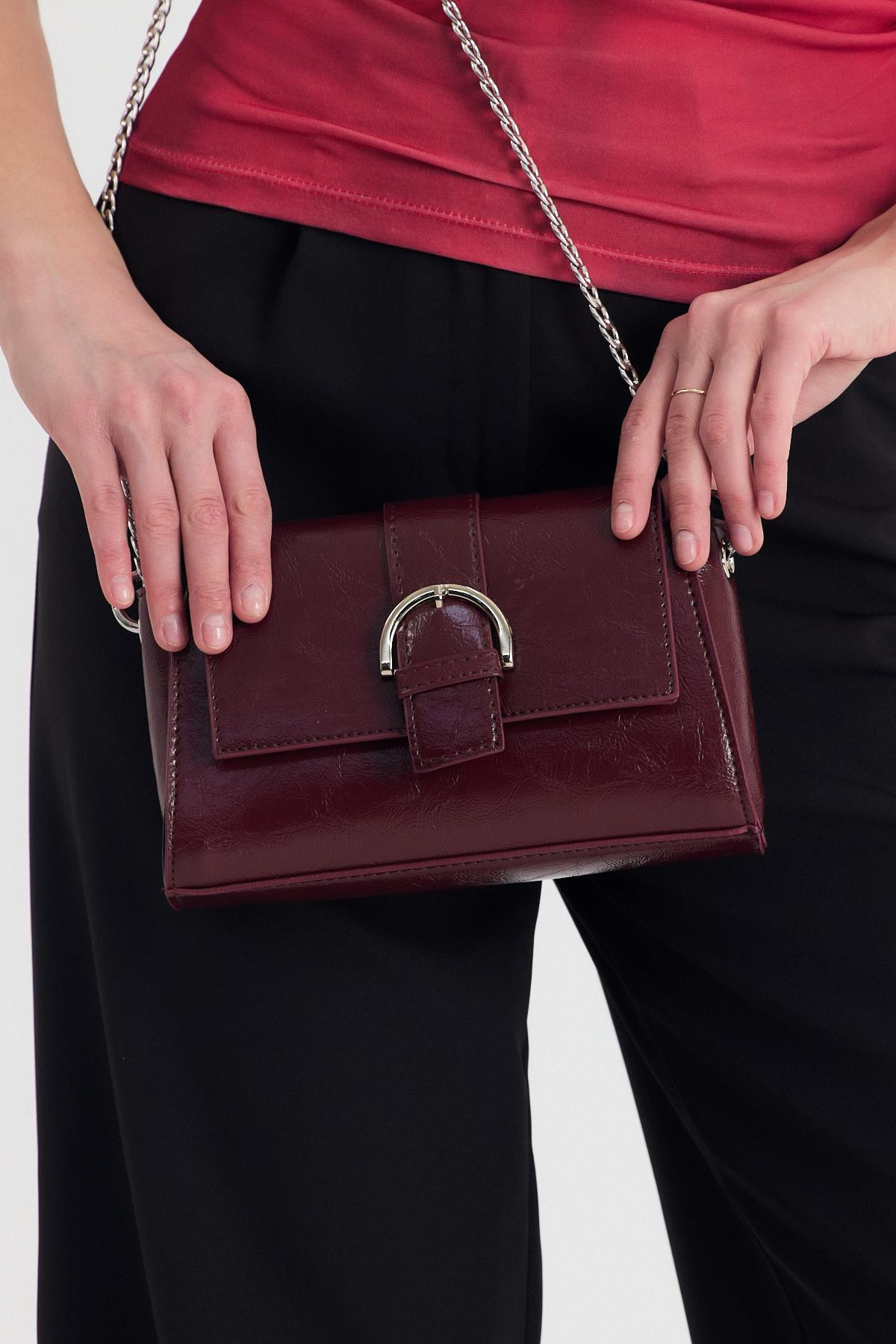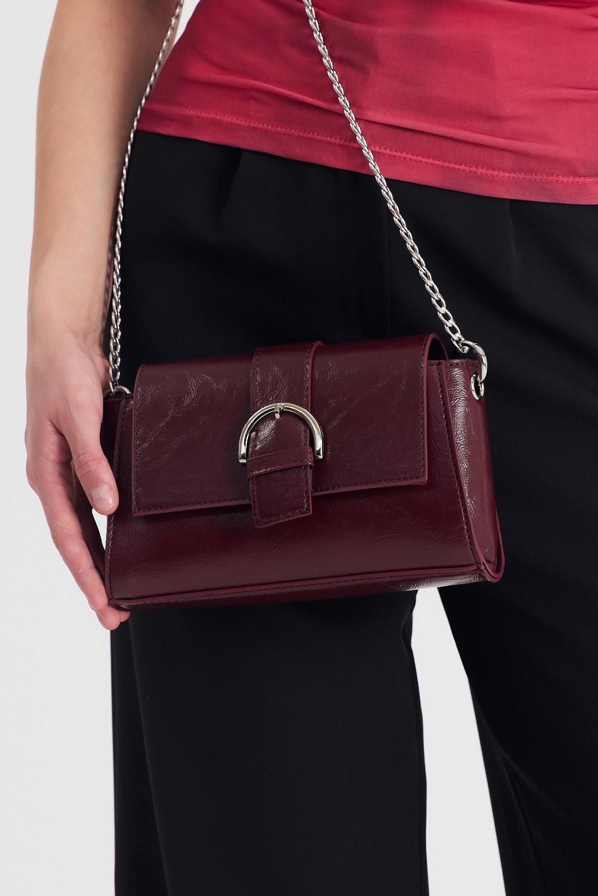 Bordo Deri Görünümlü Omuz Çantası 3023