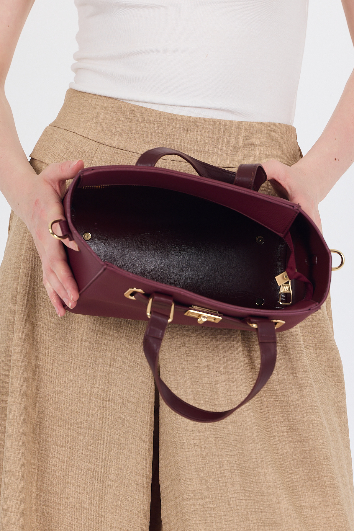 Bordo Deri Görünümlü Omuz Çantası 3029