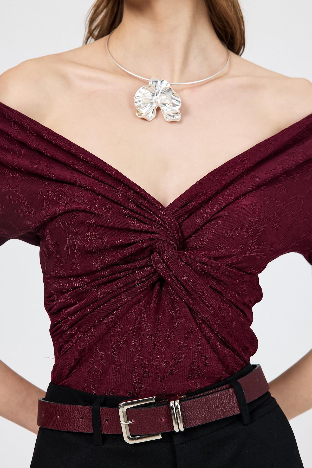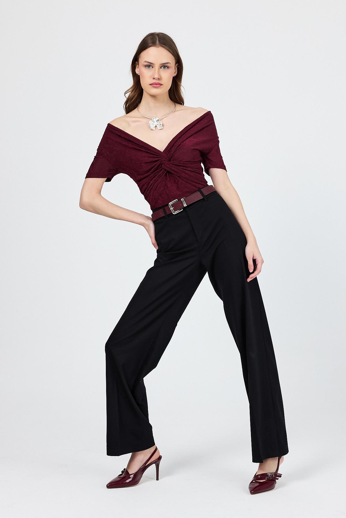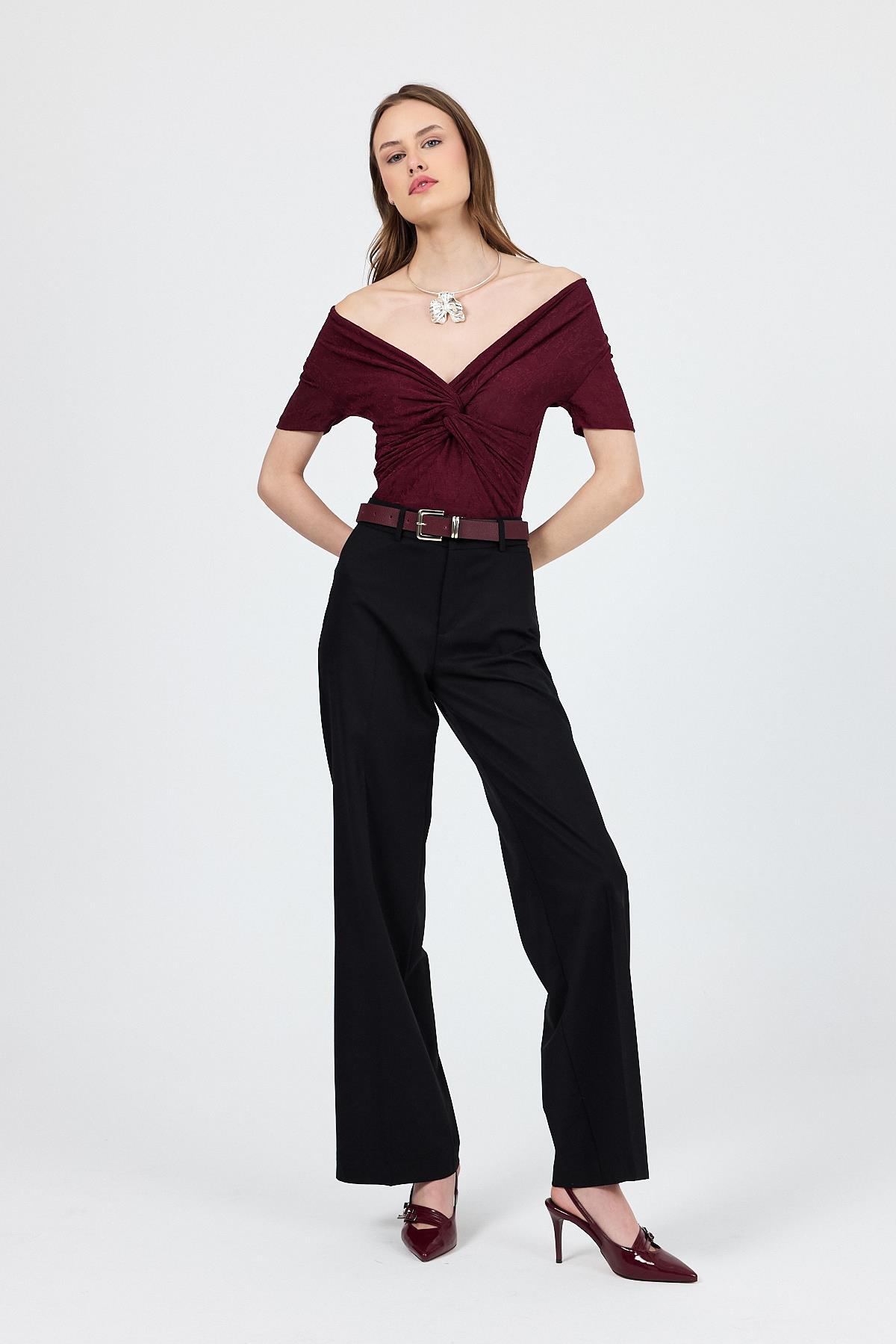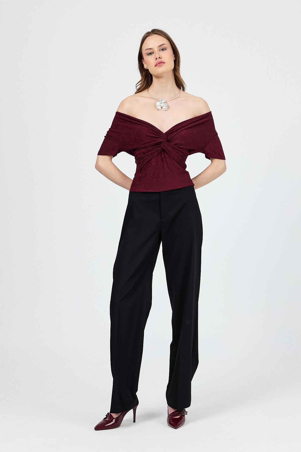 Bordo Düşük Omuz Büzgü Detaylı Bluz 13325