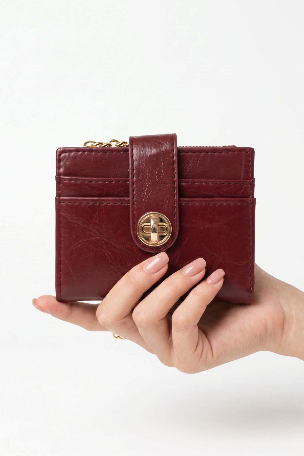 Bordo Fermuarlı Tokalı Kapama Cüzdan 211