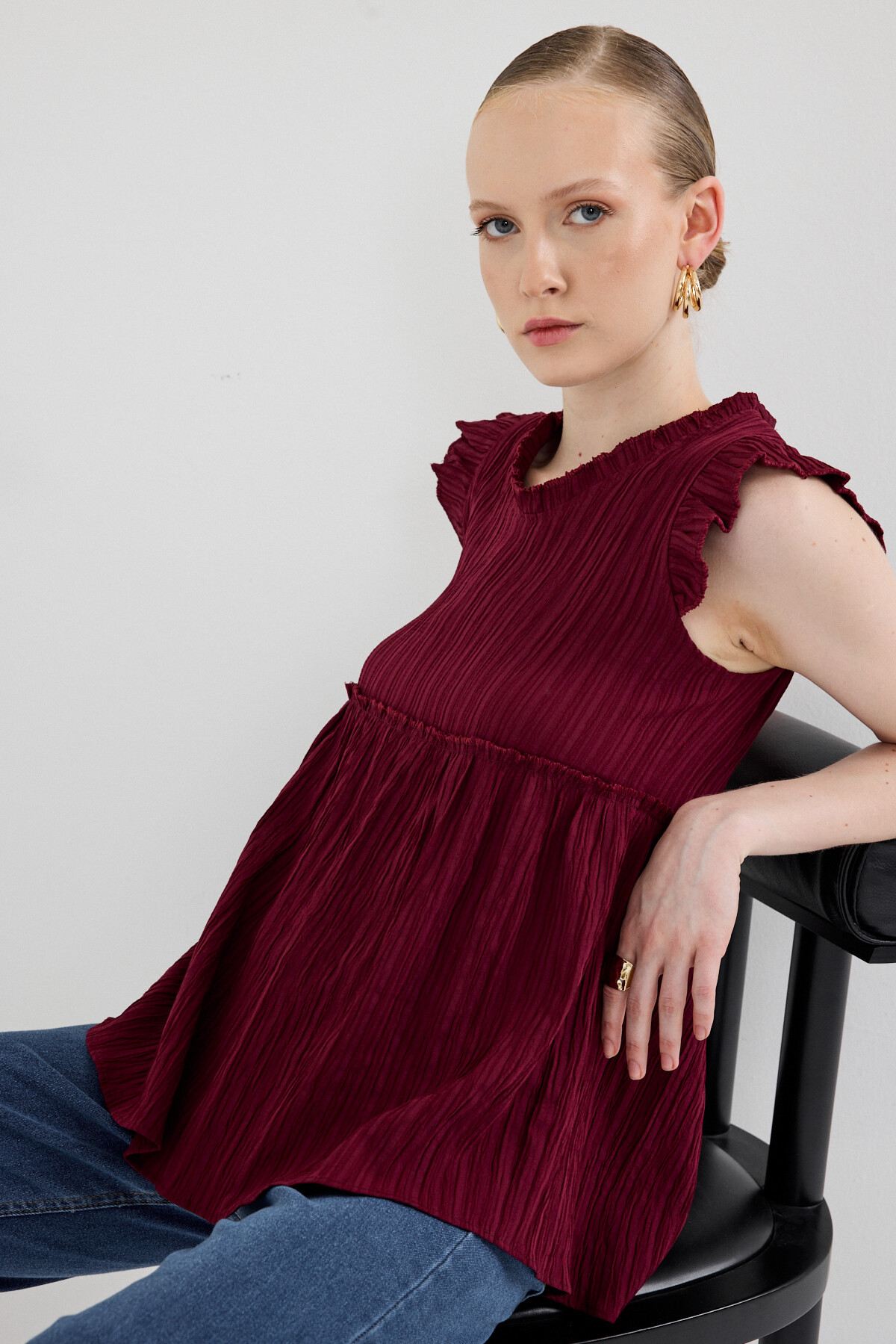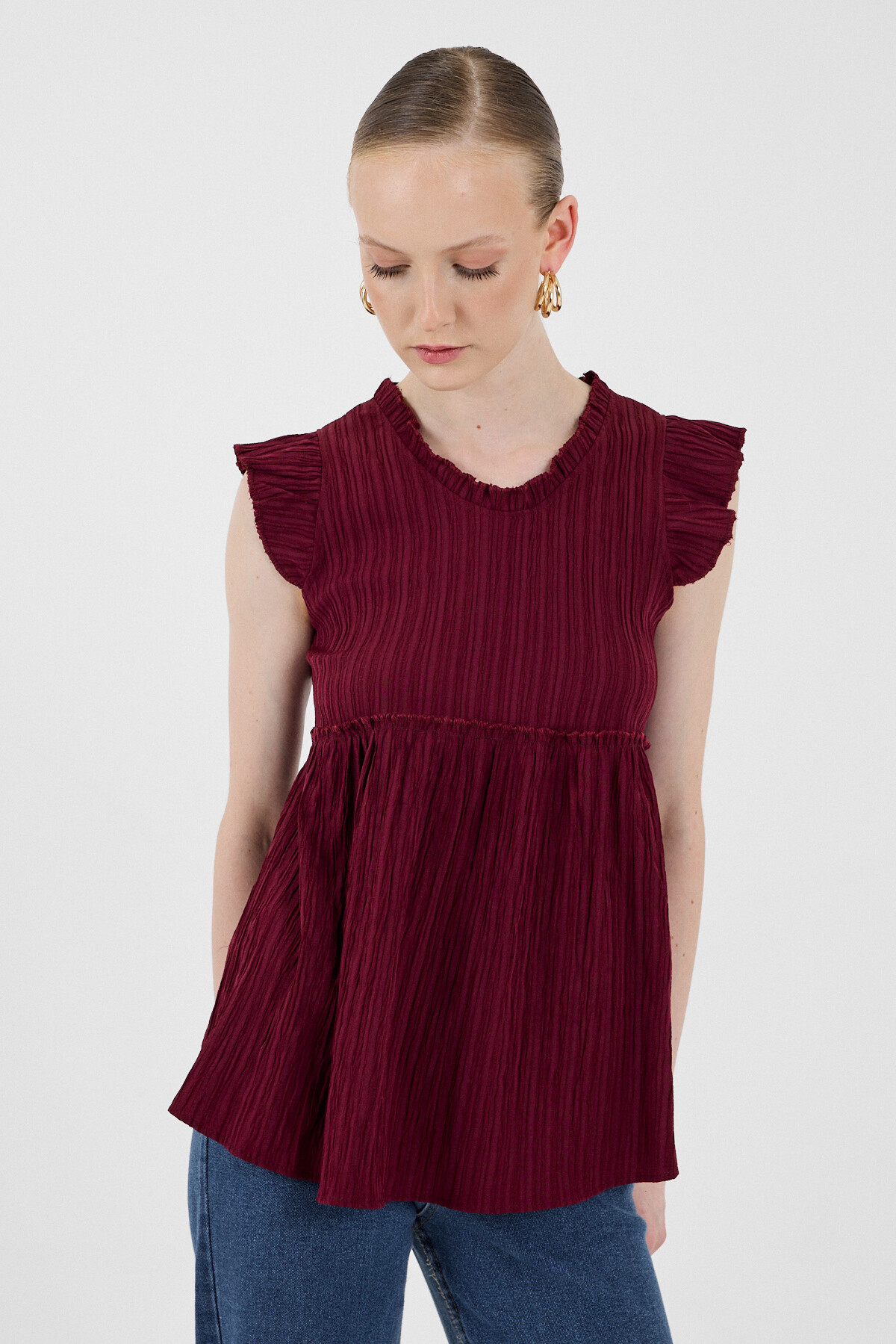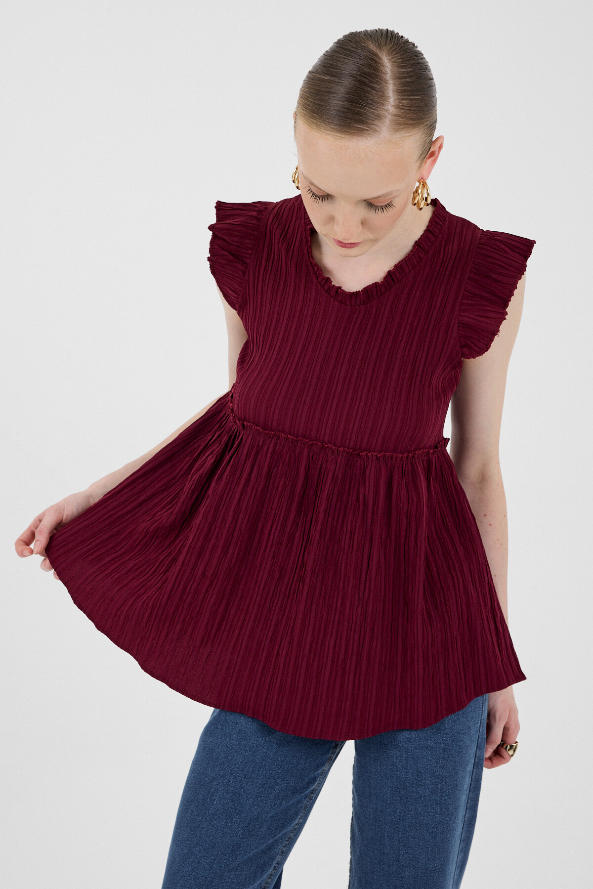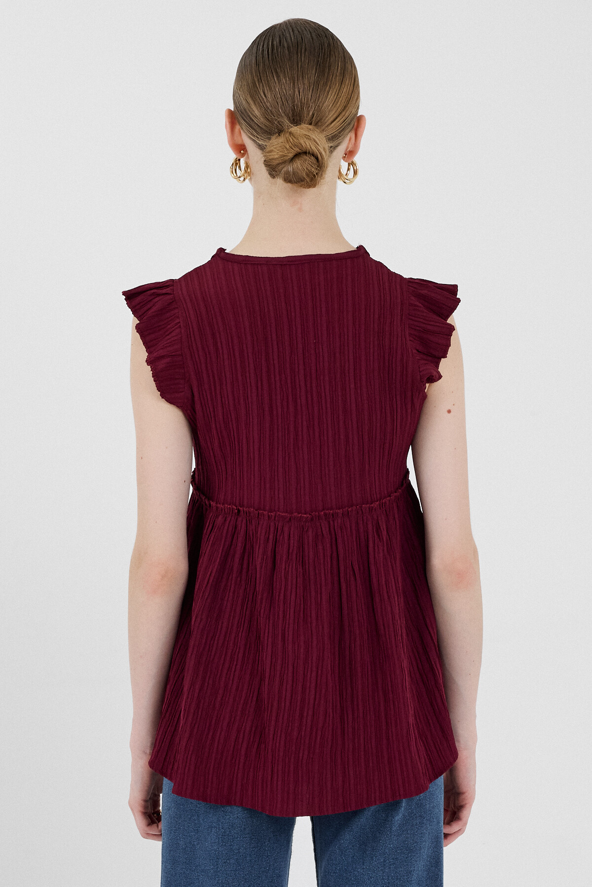 Bordo Fırfır Kol Detaylı Bluz 8053A