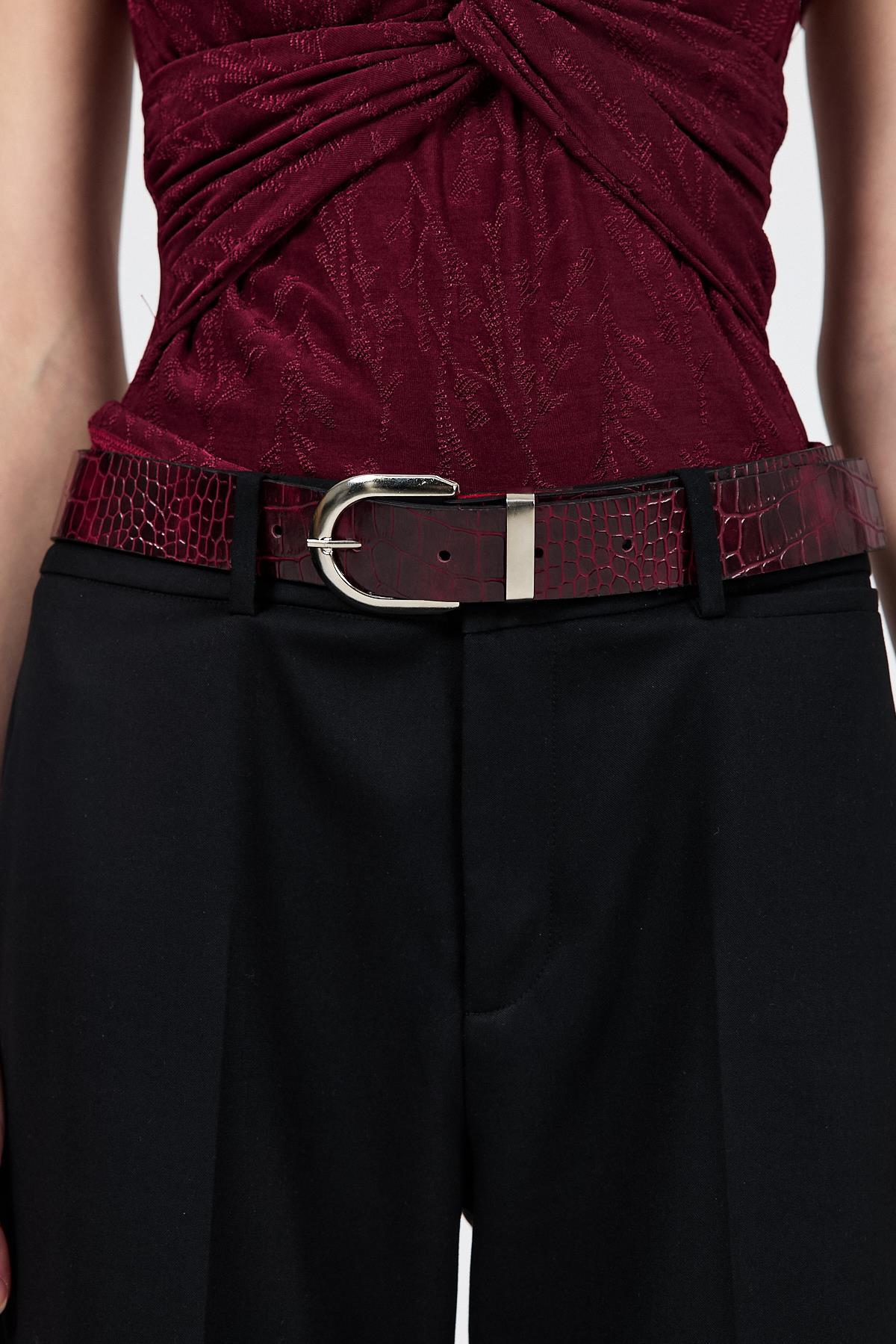Bordo Gümüş Toka Detaylı Kroko Desen Kemer 414