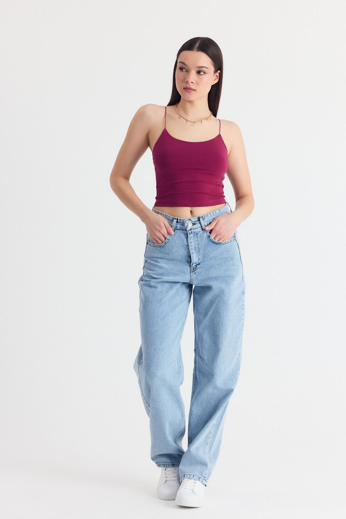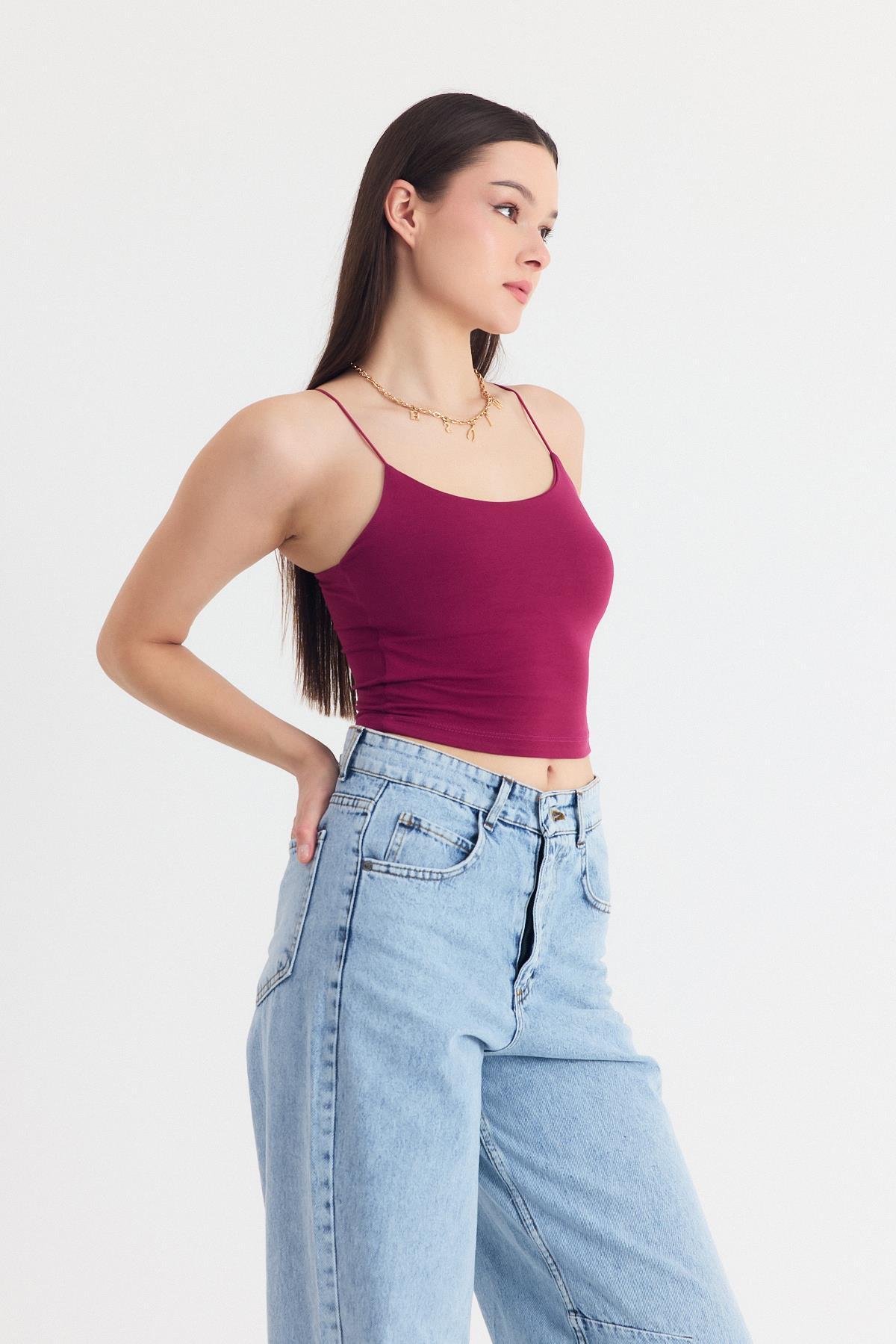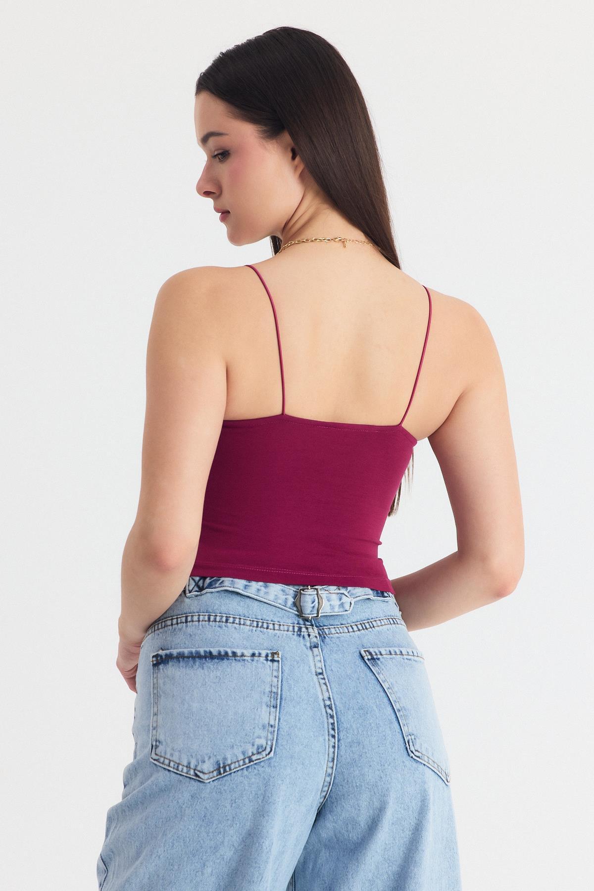 Bordo İnce Askılı Fitted Basic Atlet 947