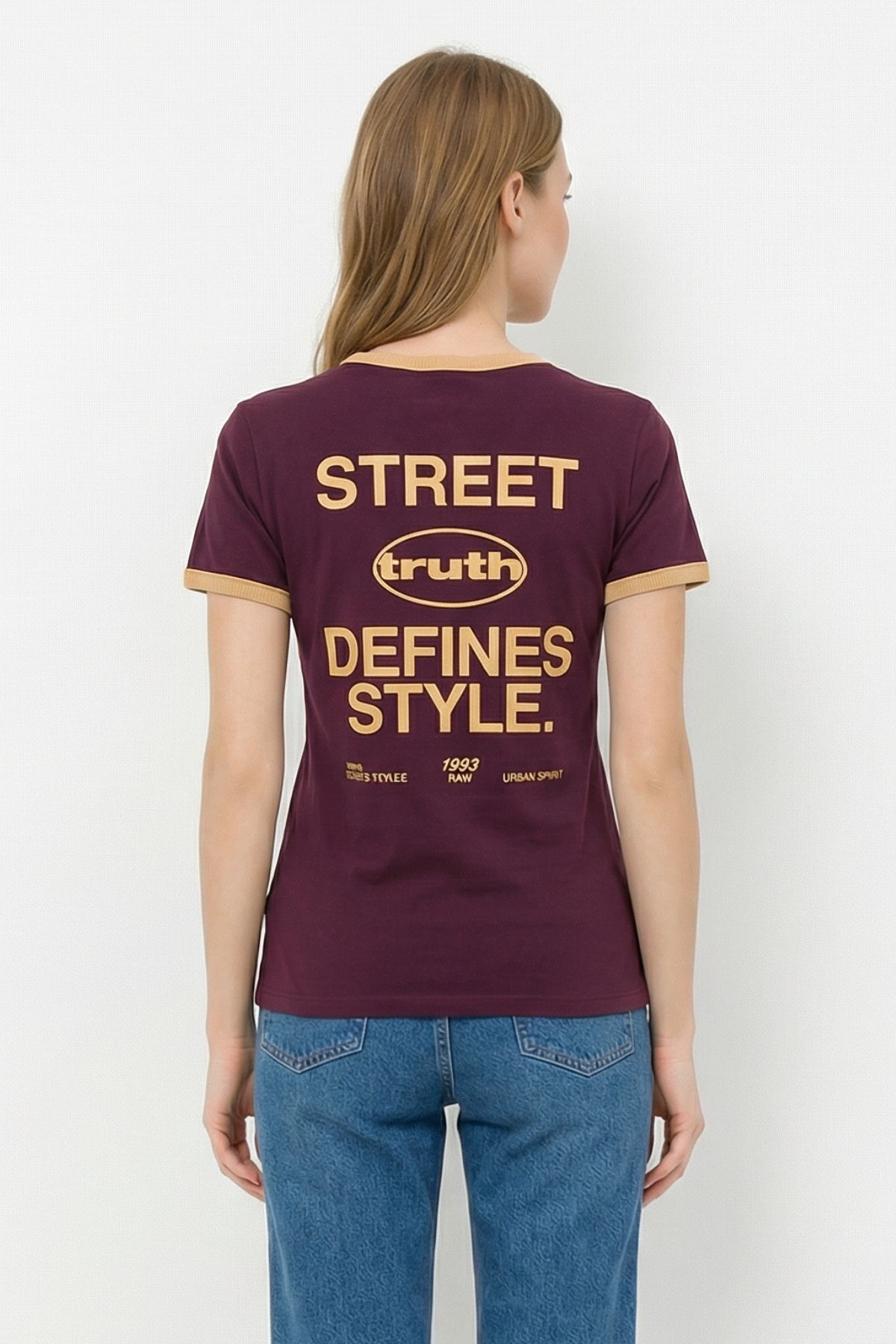 Bordo Ön Arka Yazı Baskılı Tişört 8076