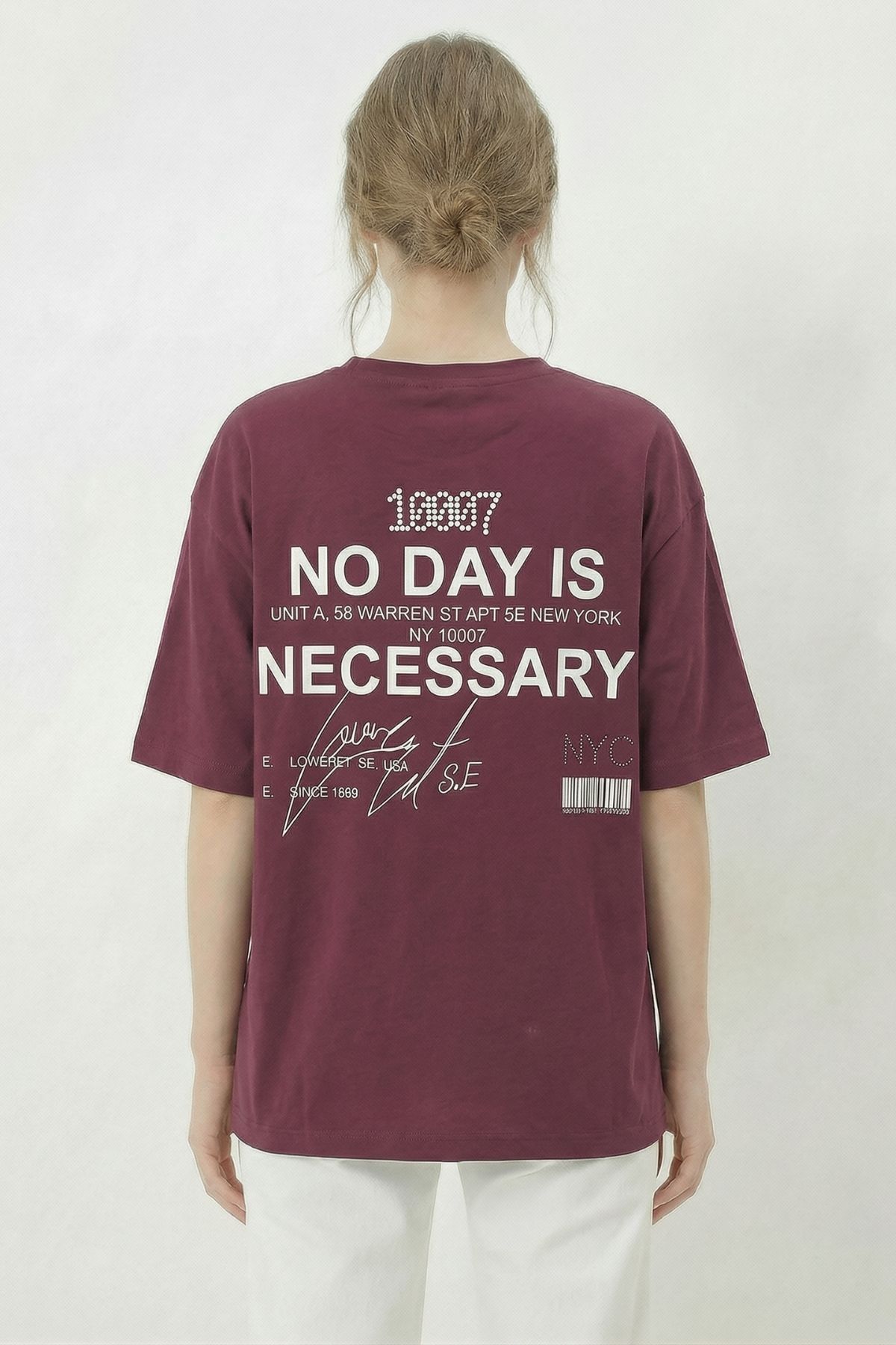Bordo Ön Arka Yazı Baskılı Tişört 8150