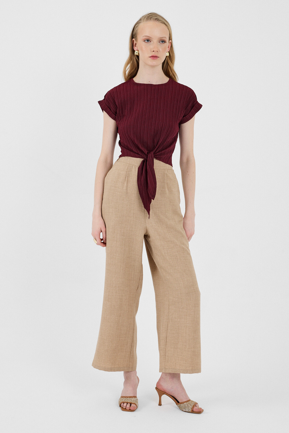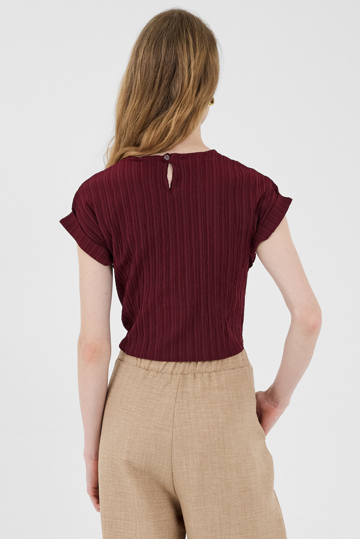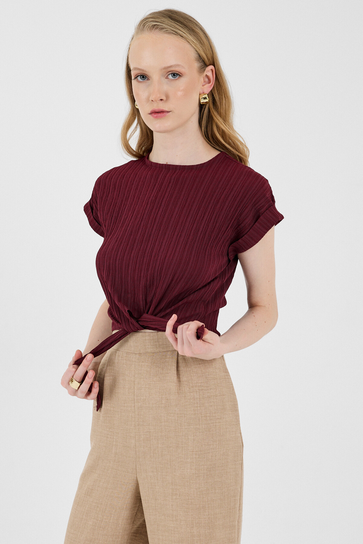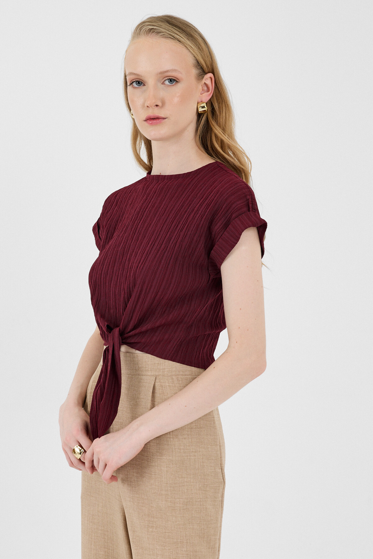 Bordo Ön Bağlama Detaylı Bluz 8071A