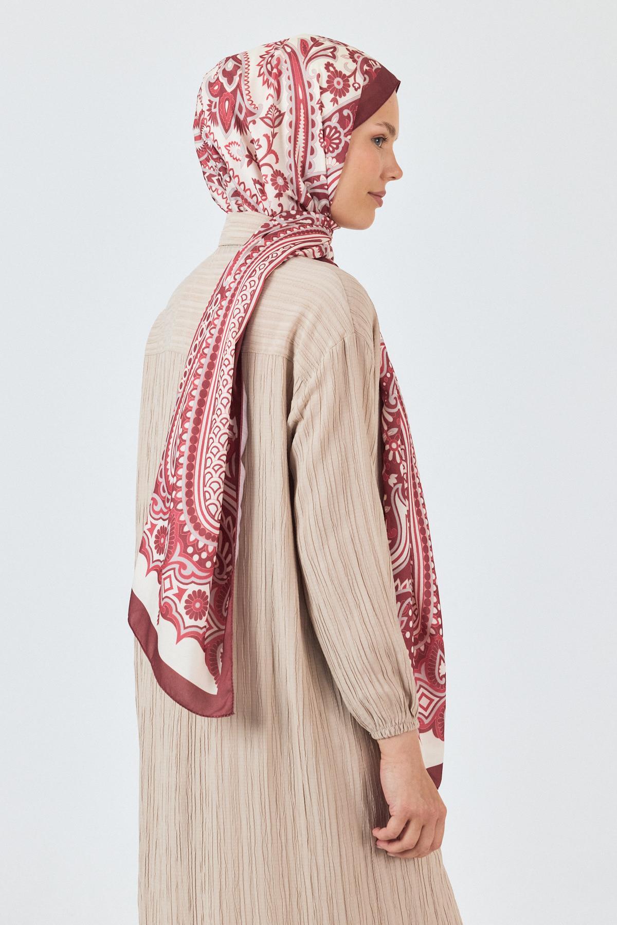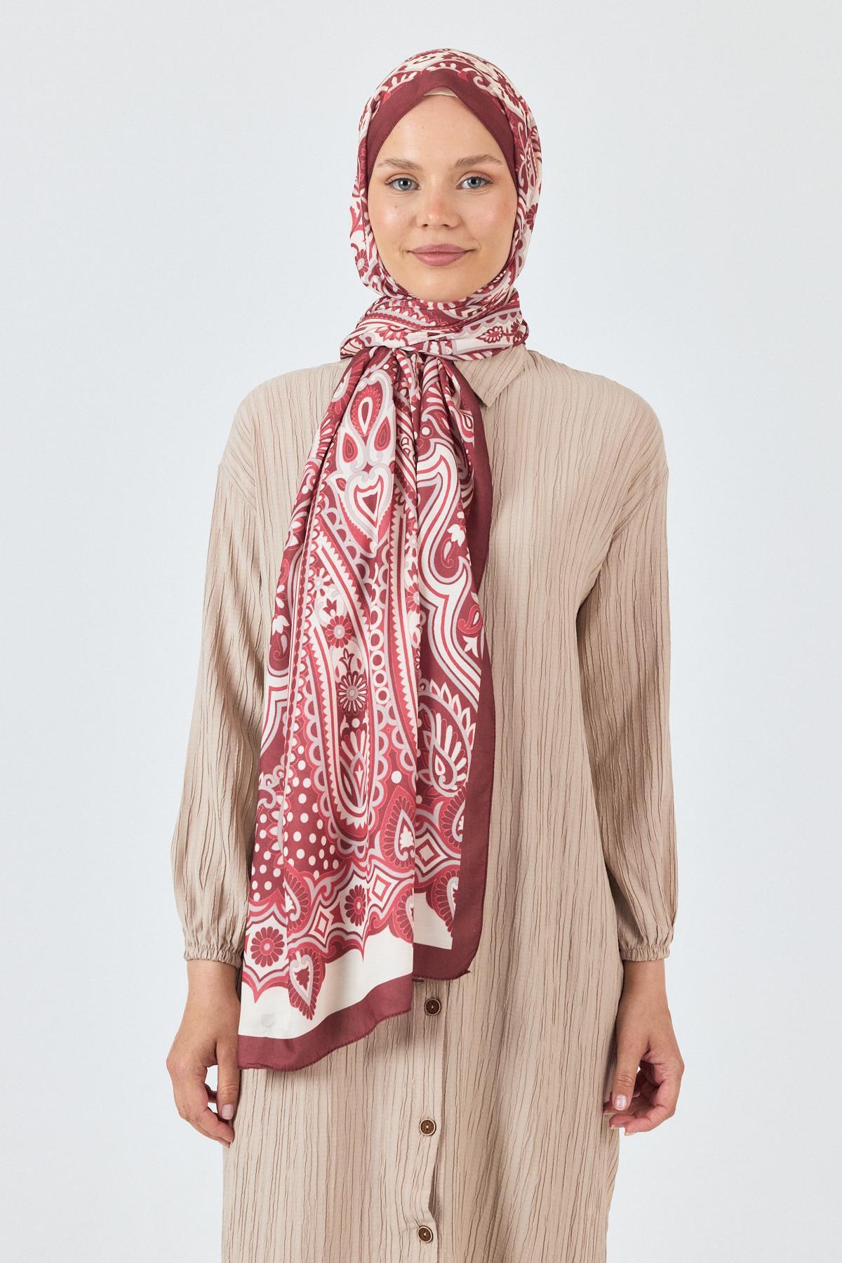 Bordo Retro Desenli Şal 5684