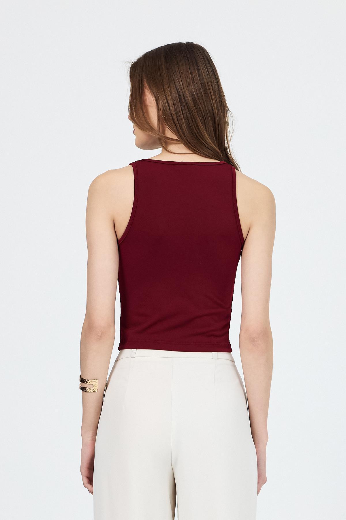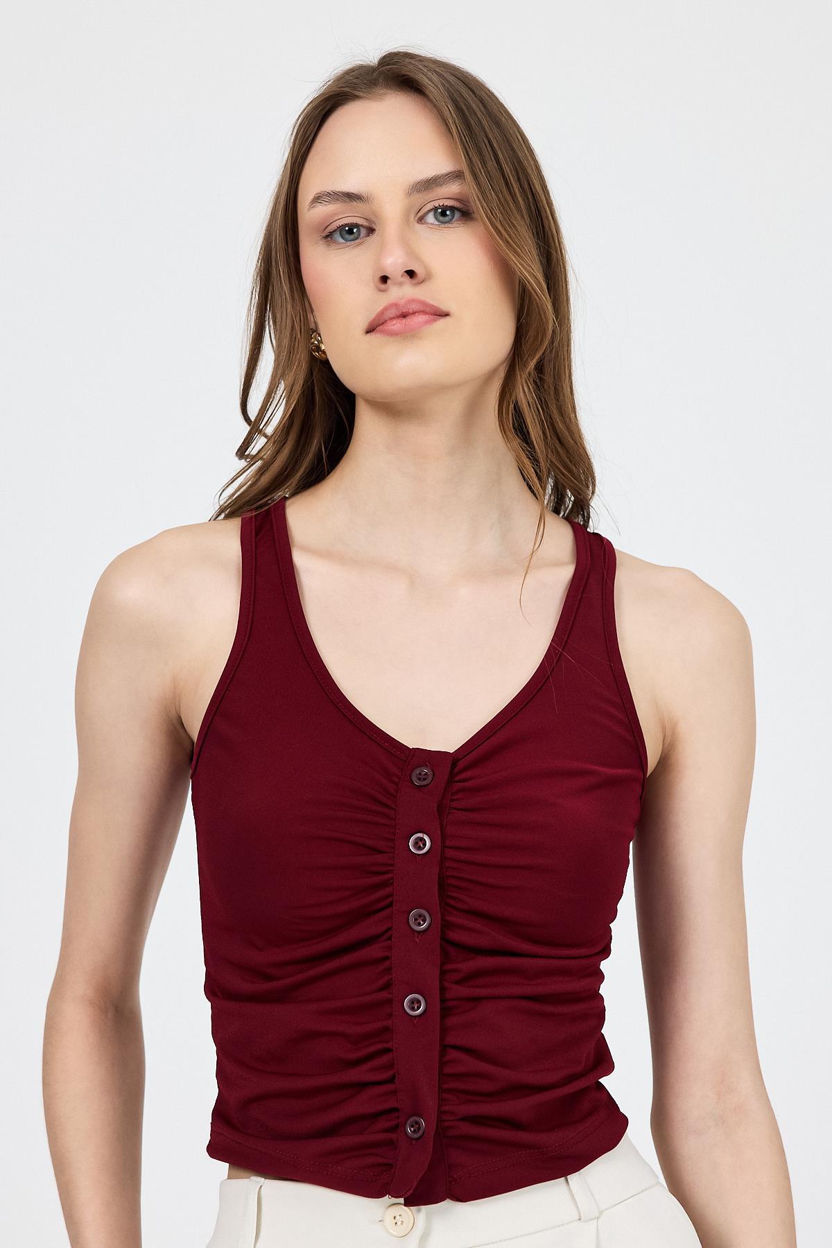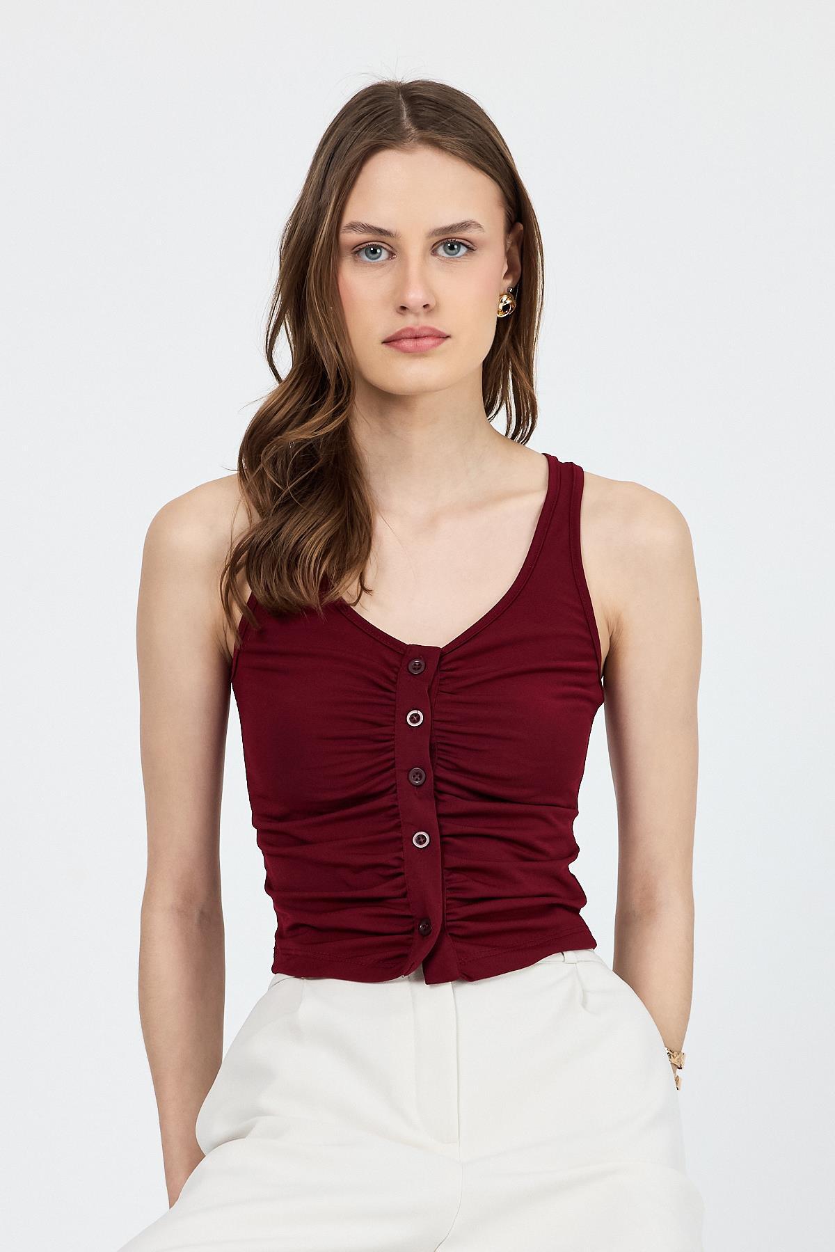 Bordo U Yaka Büzgülü Düğmeli Atlet 13298