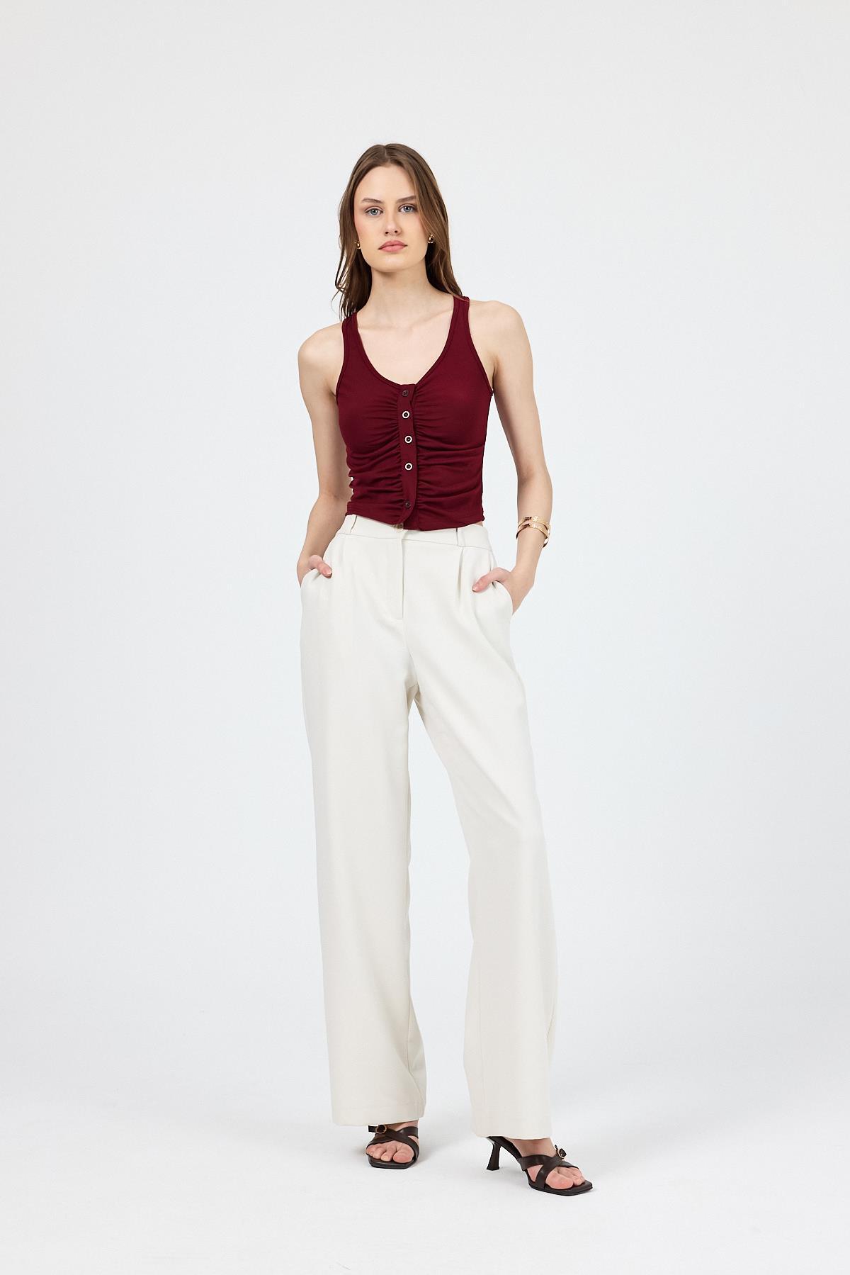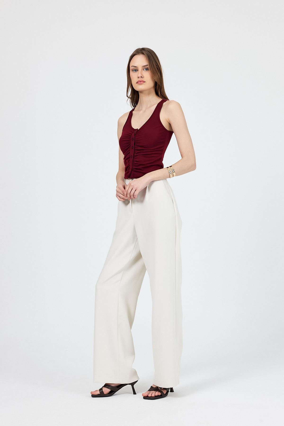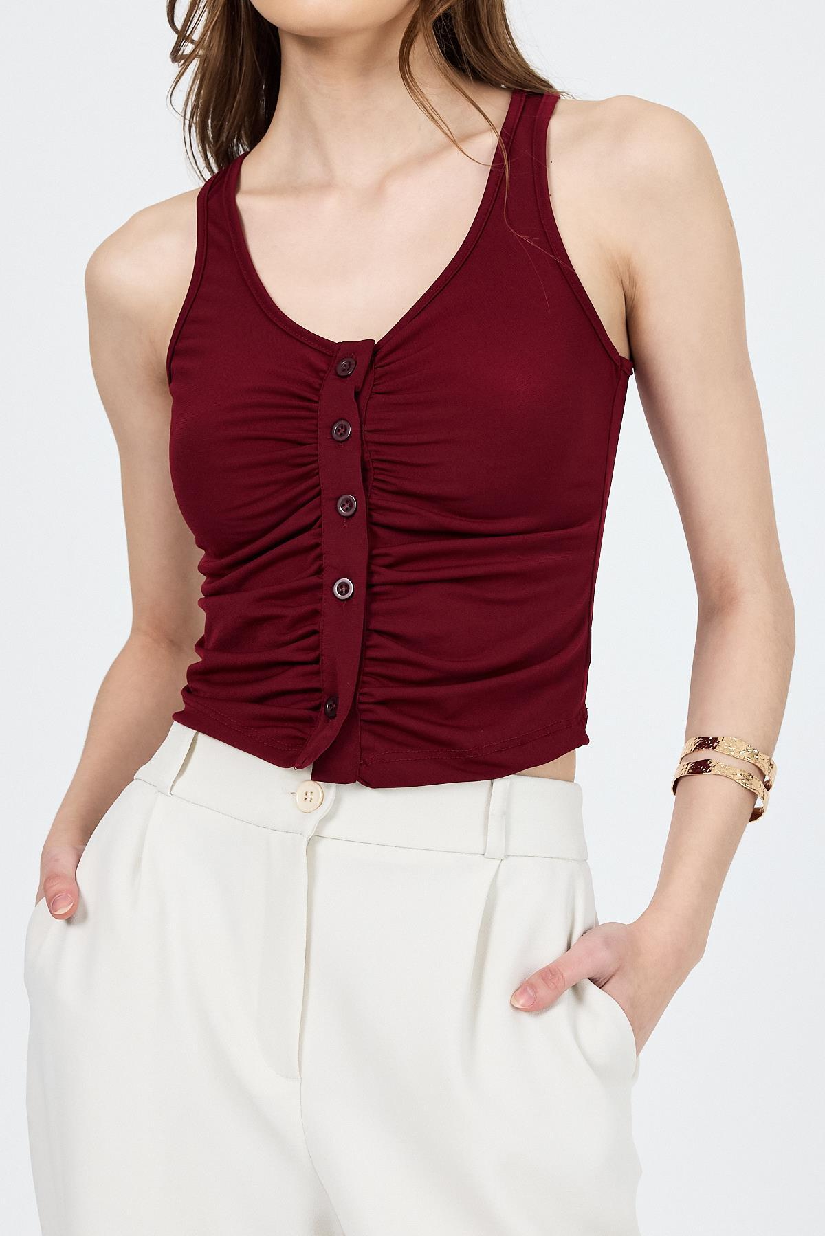 Bordo U Yaka Büzgülü Düğmeli Atlet 13298