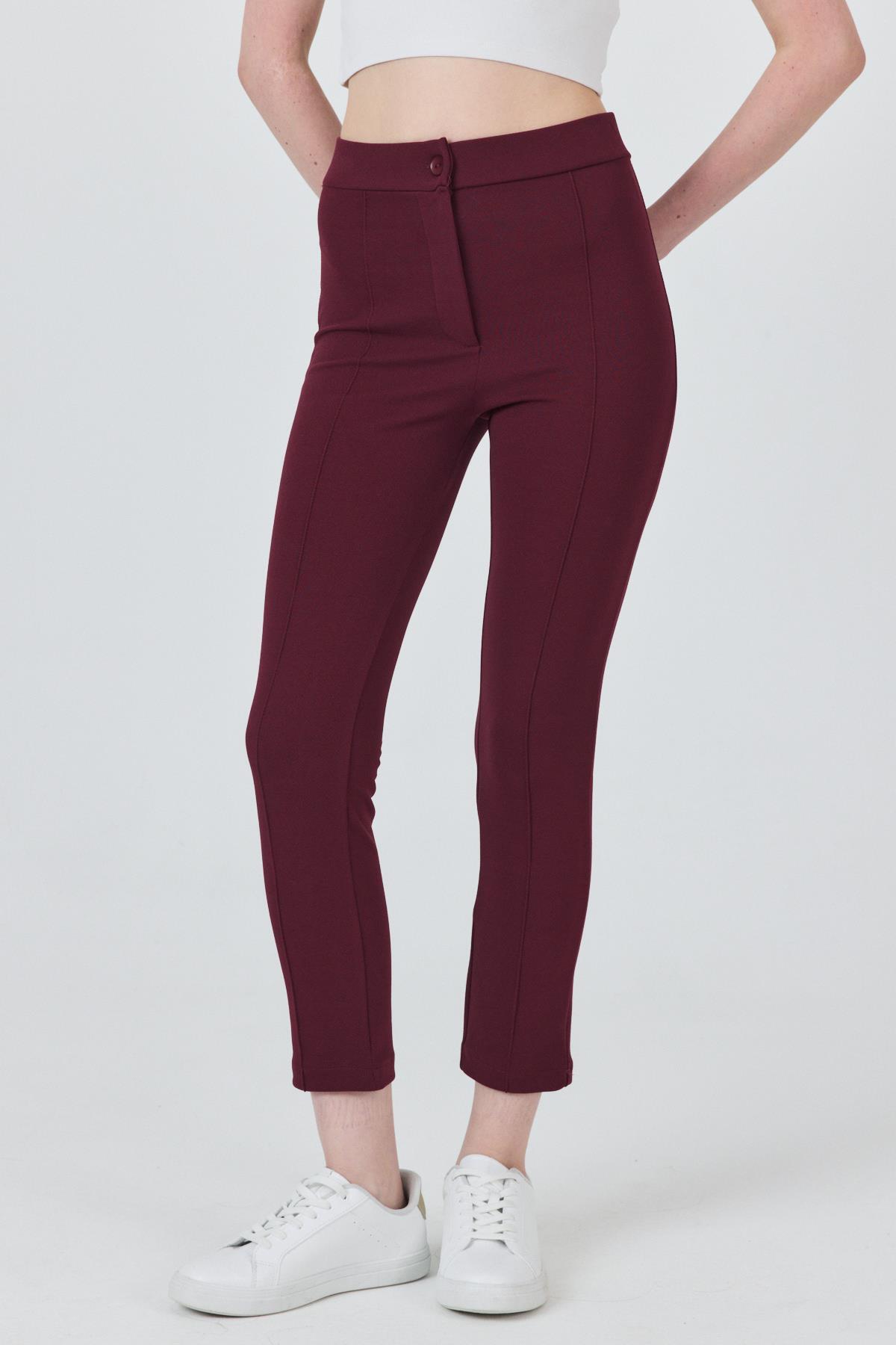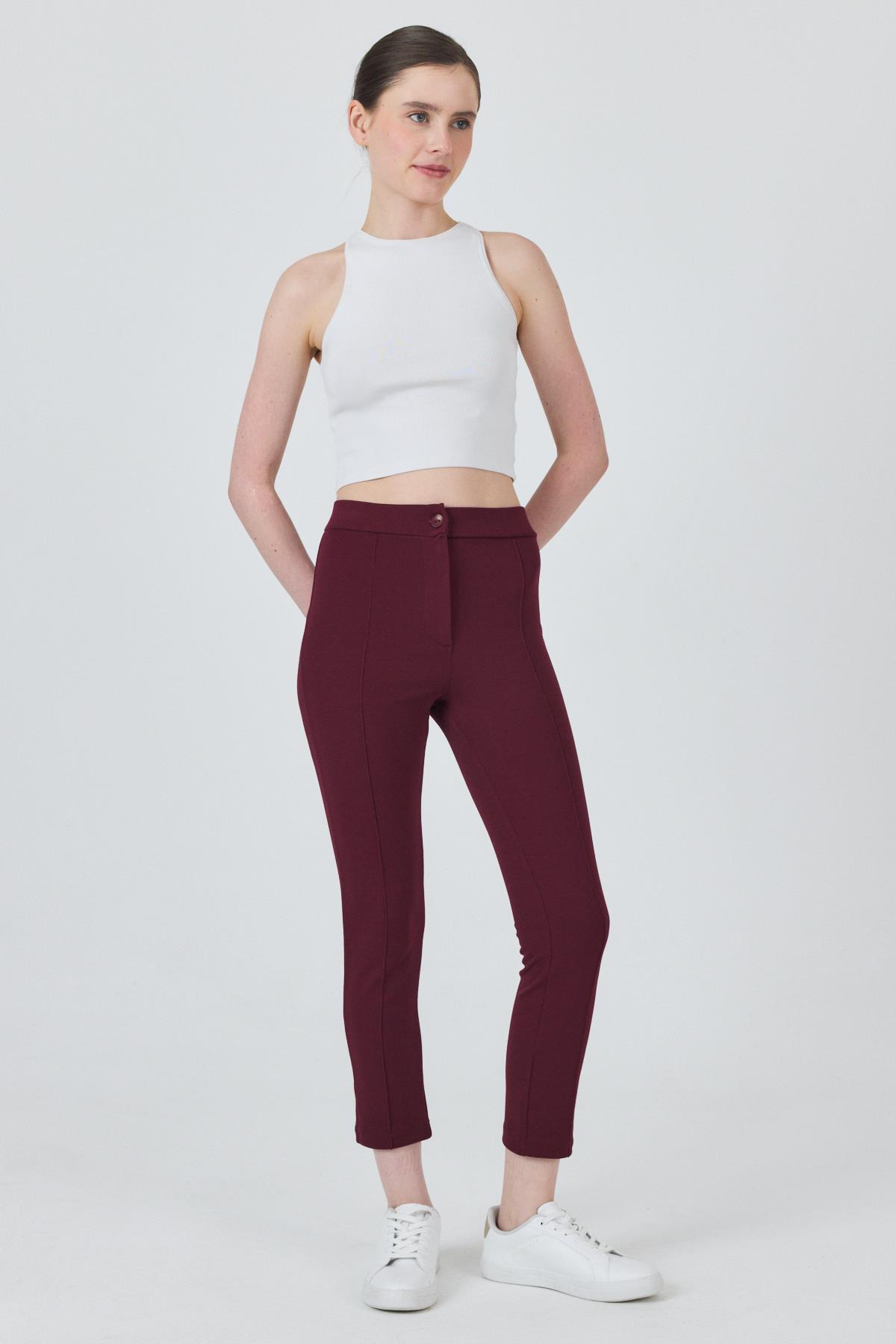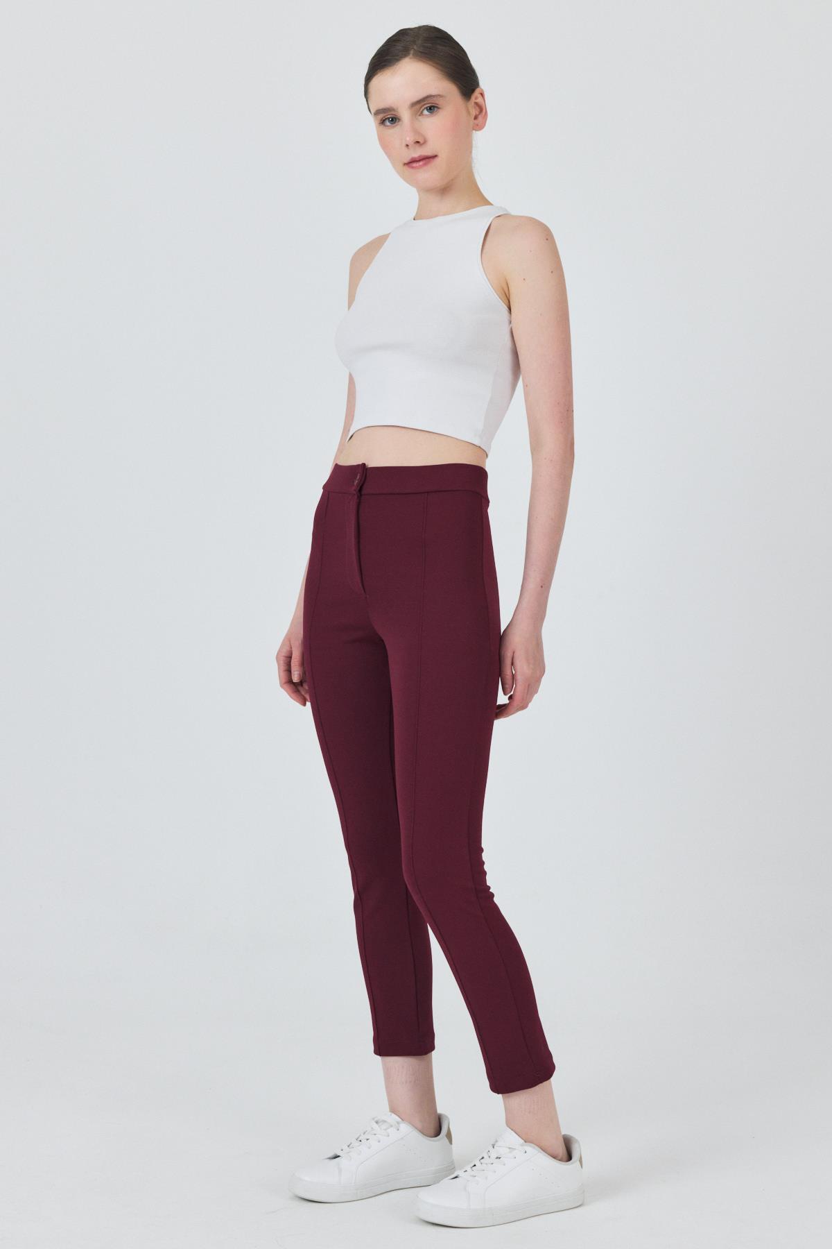 Bordo Yüksek Bel Nervür Dikiş Detaylı Tayt Pantolon 6875A