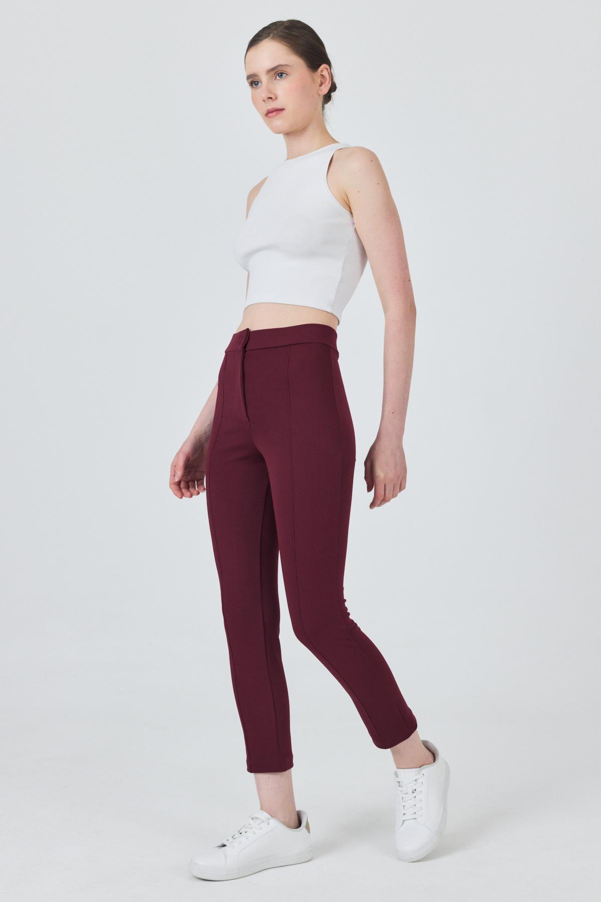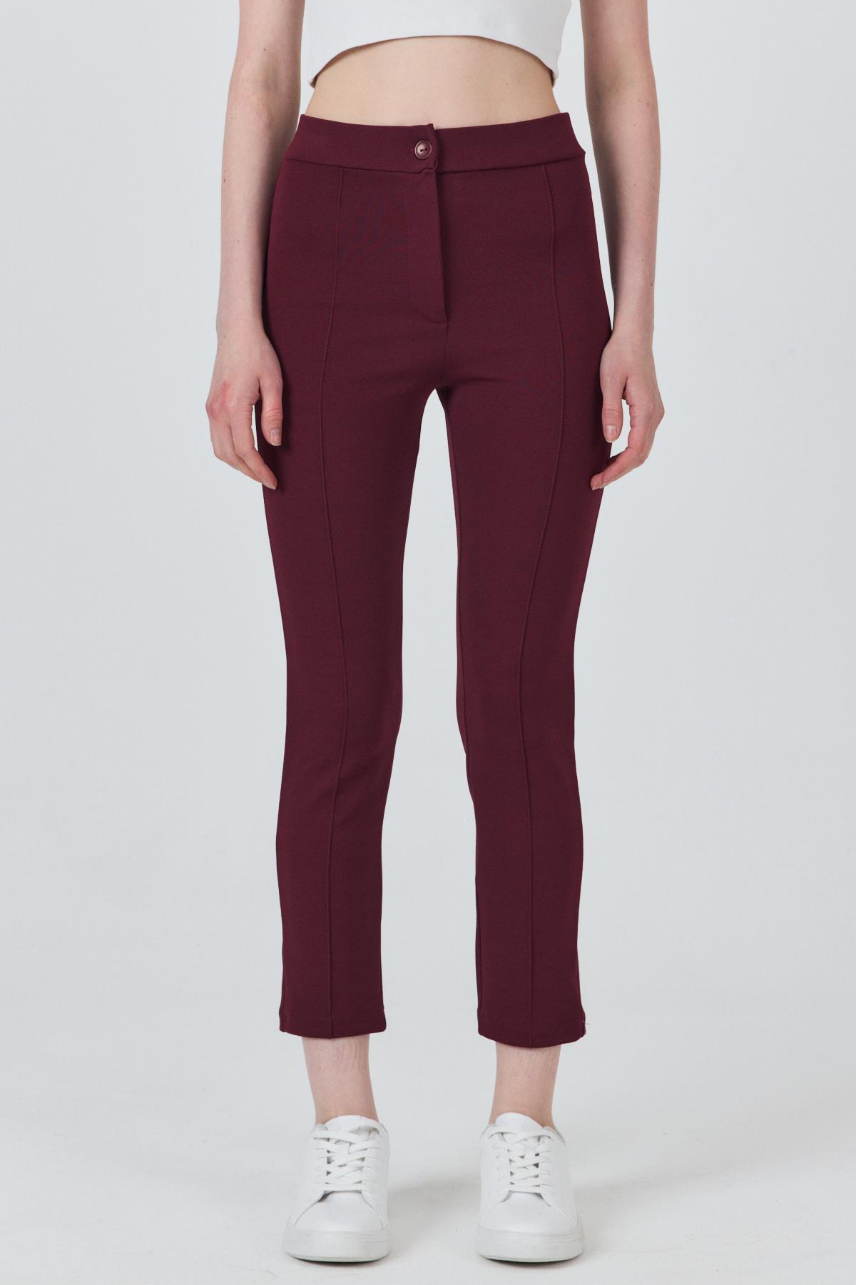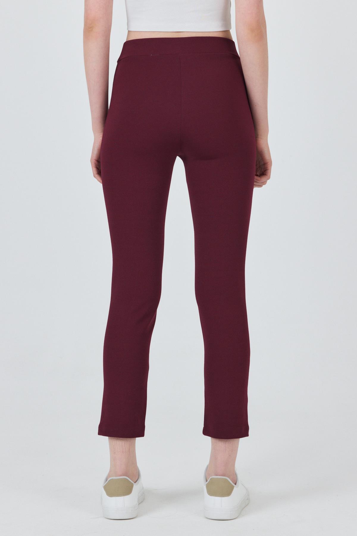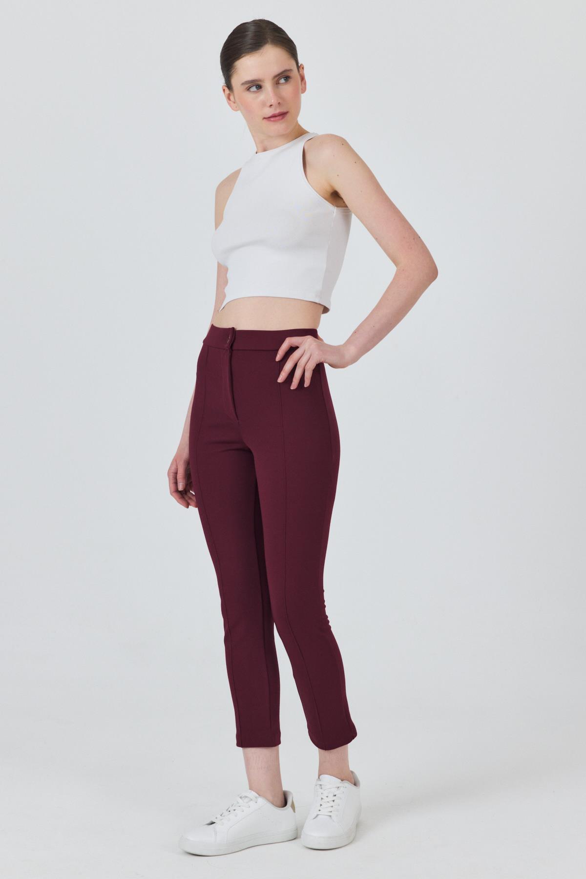 Bordo Yüksek Bel Nervür Dikiş Detaylı Tayt Pantolon 6875A