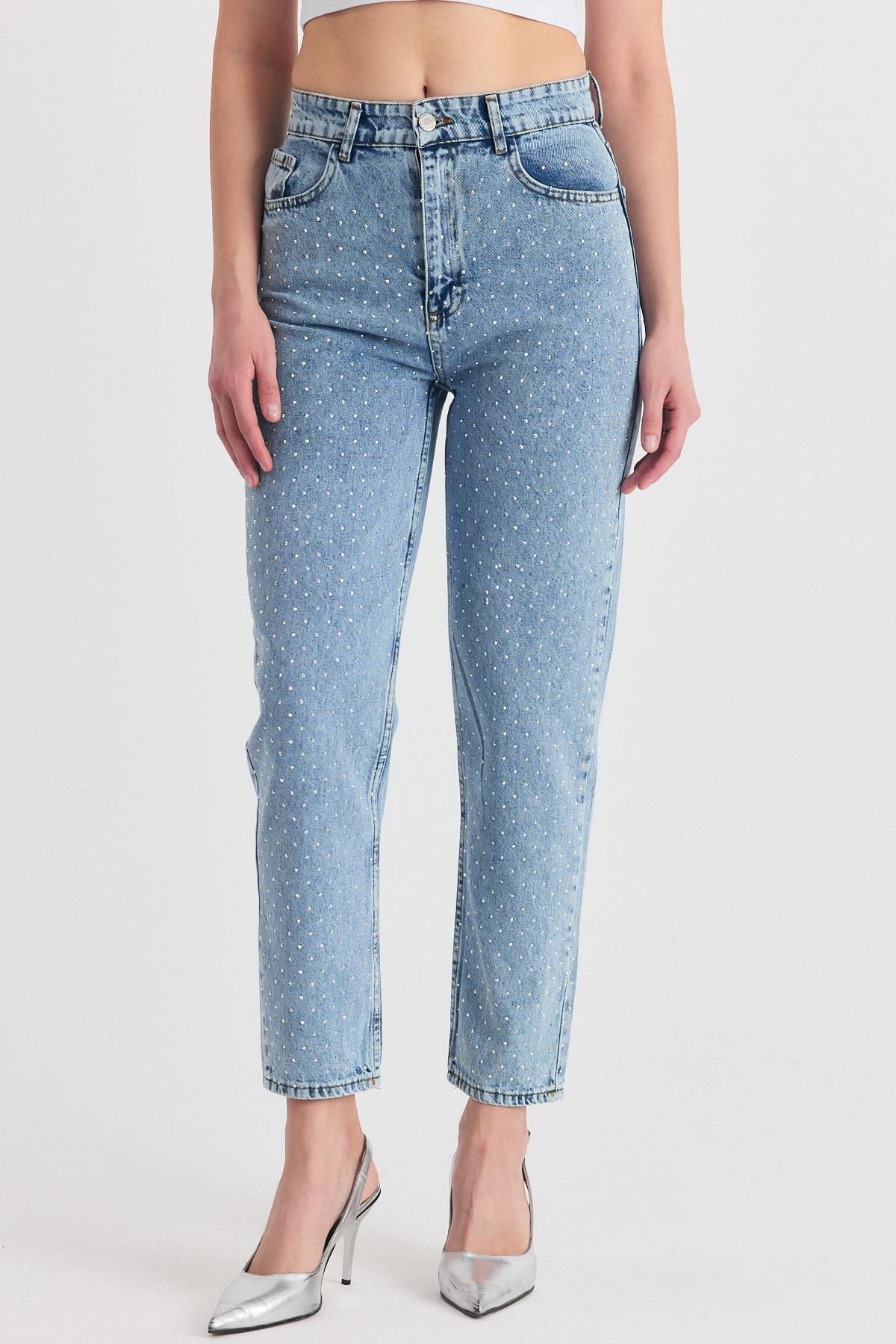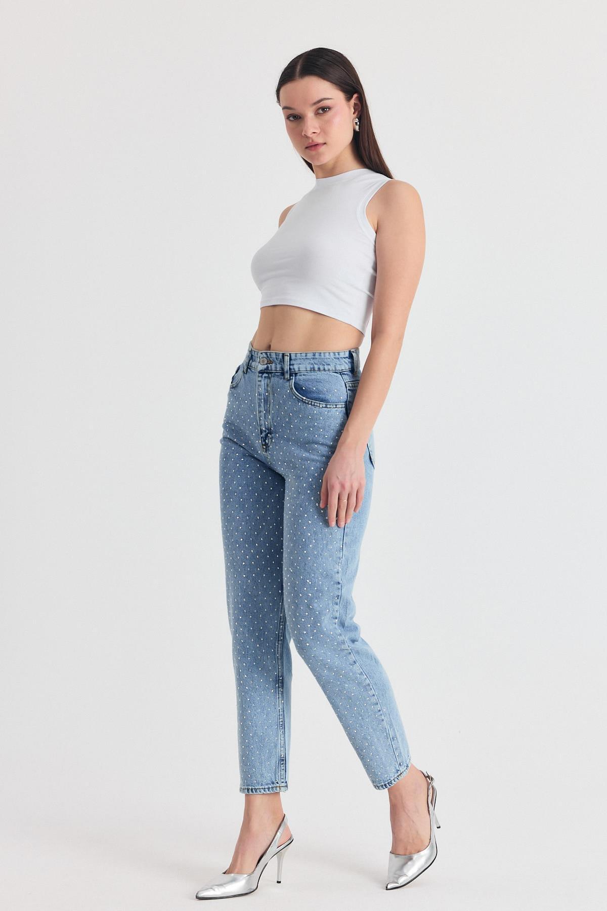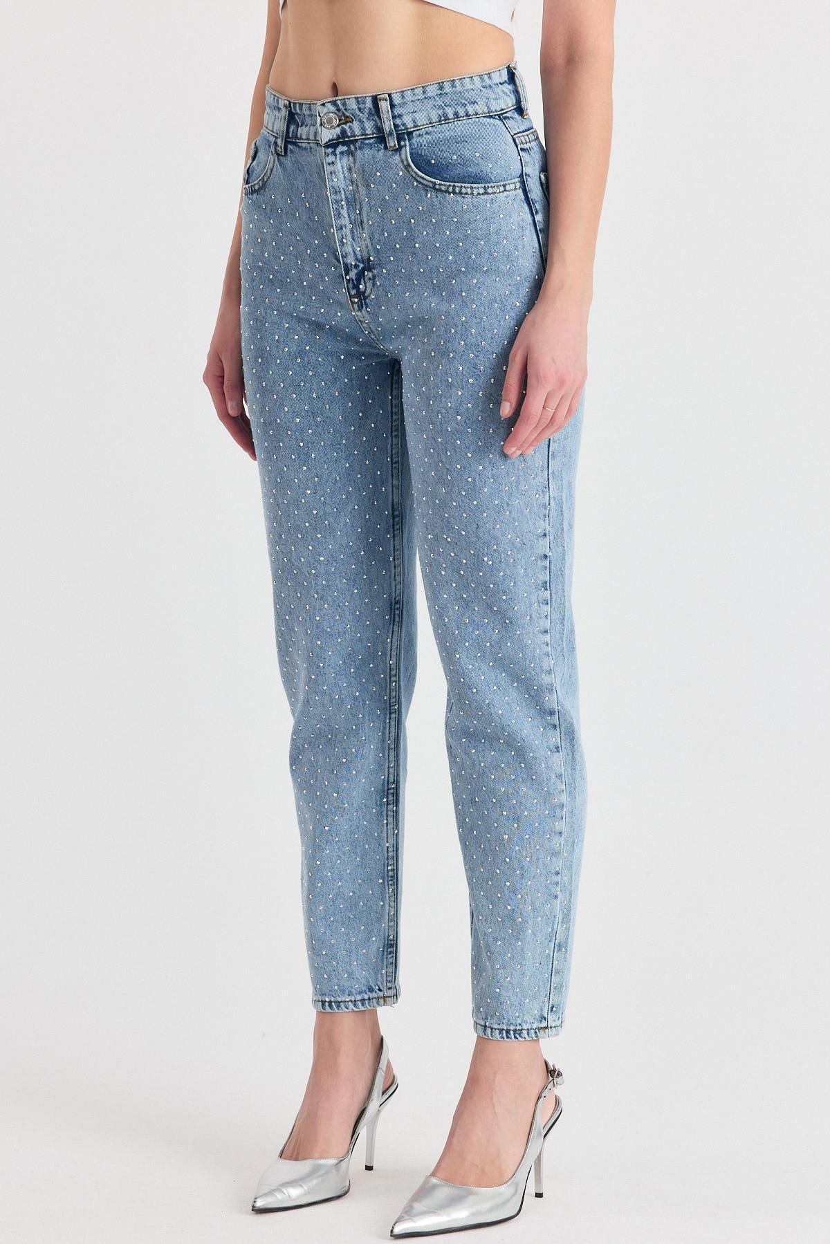 Buzkar Taş Detay Mom Jean 3332