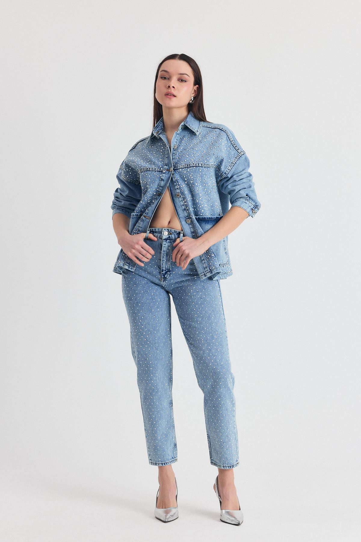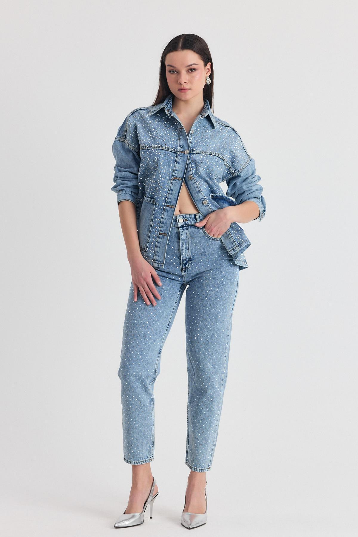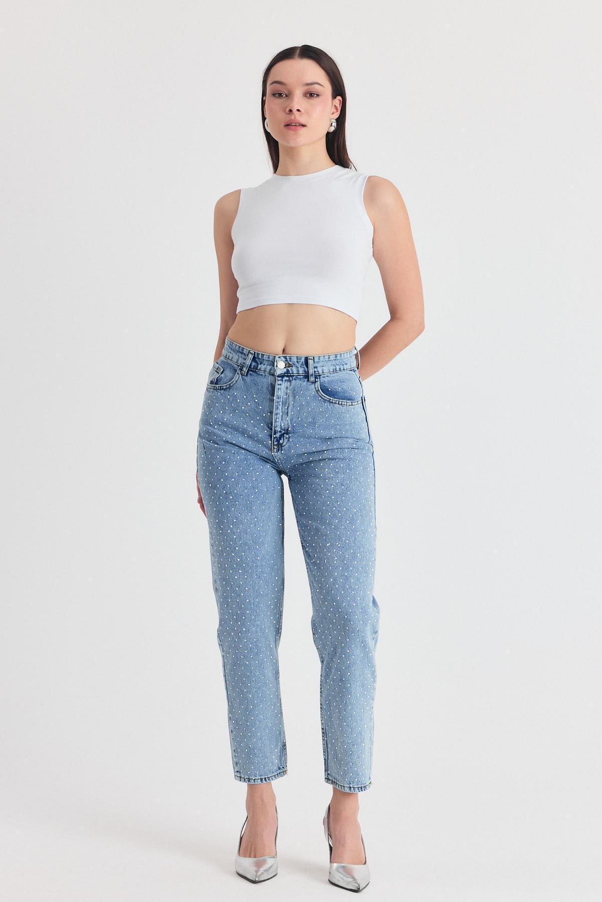 Buzkar Taş Detay Mom Jean 3332