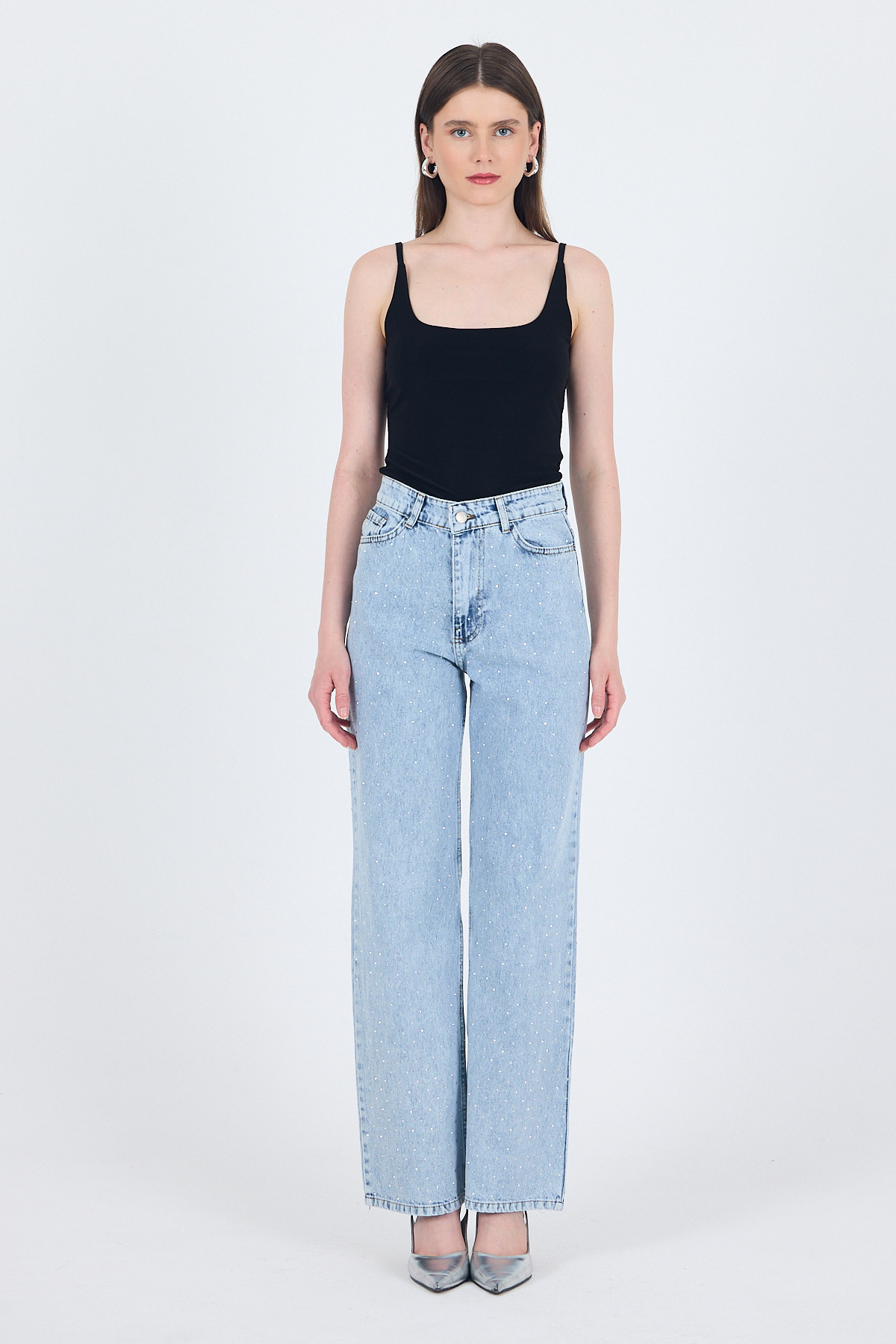 Buzkar Taş Detaylı Düz Paça Jean Pantolon 4910