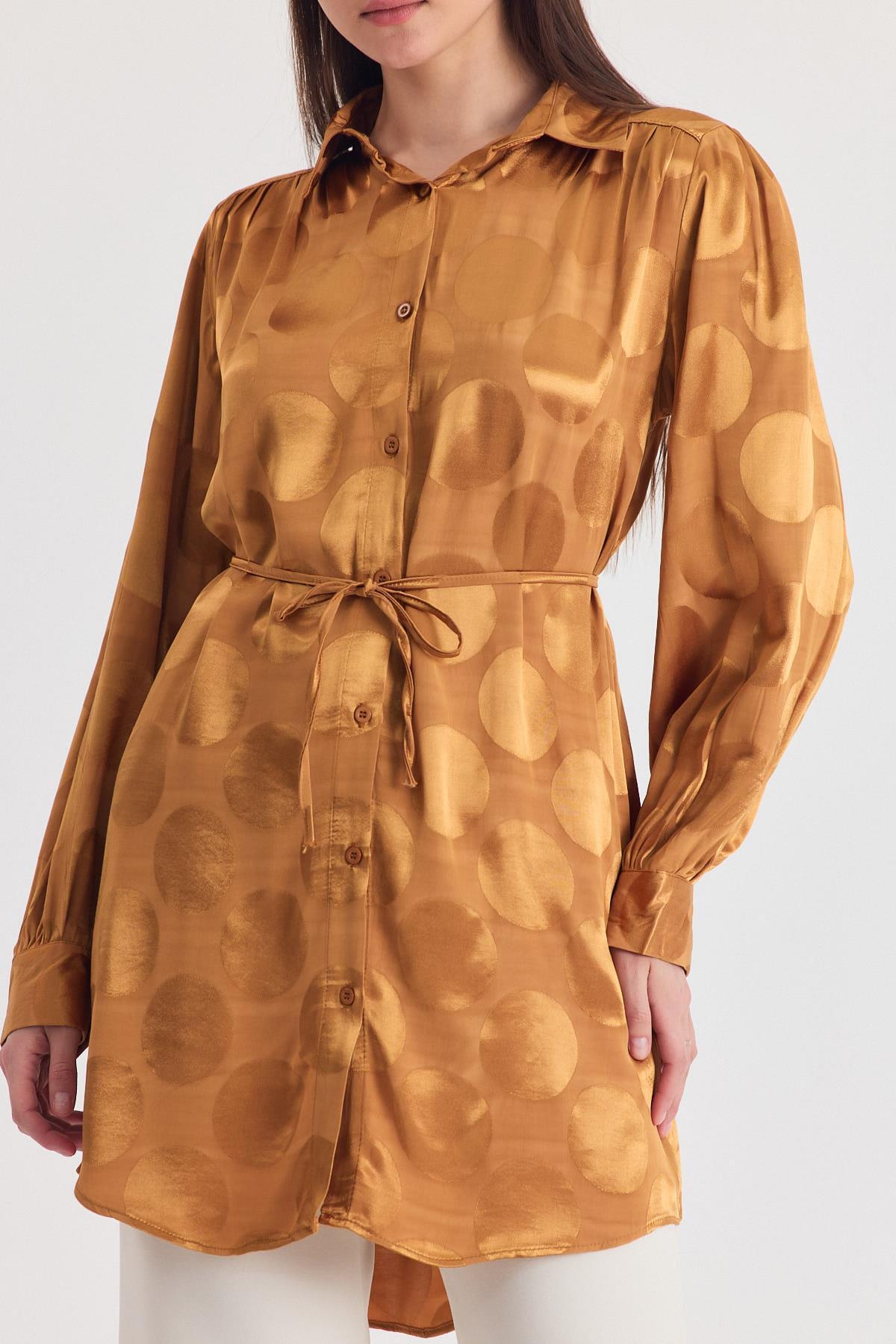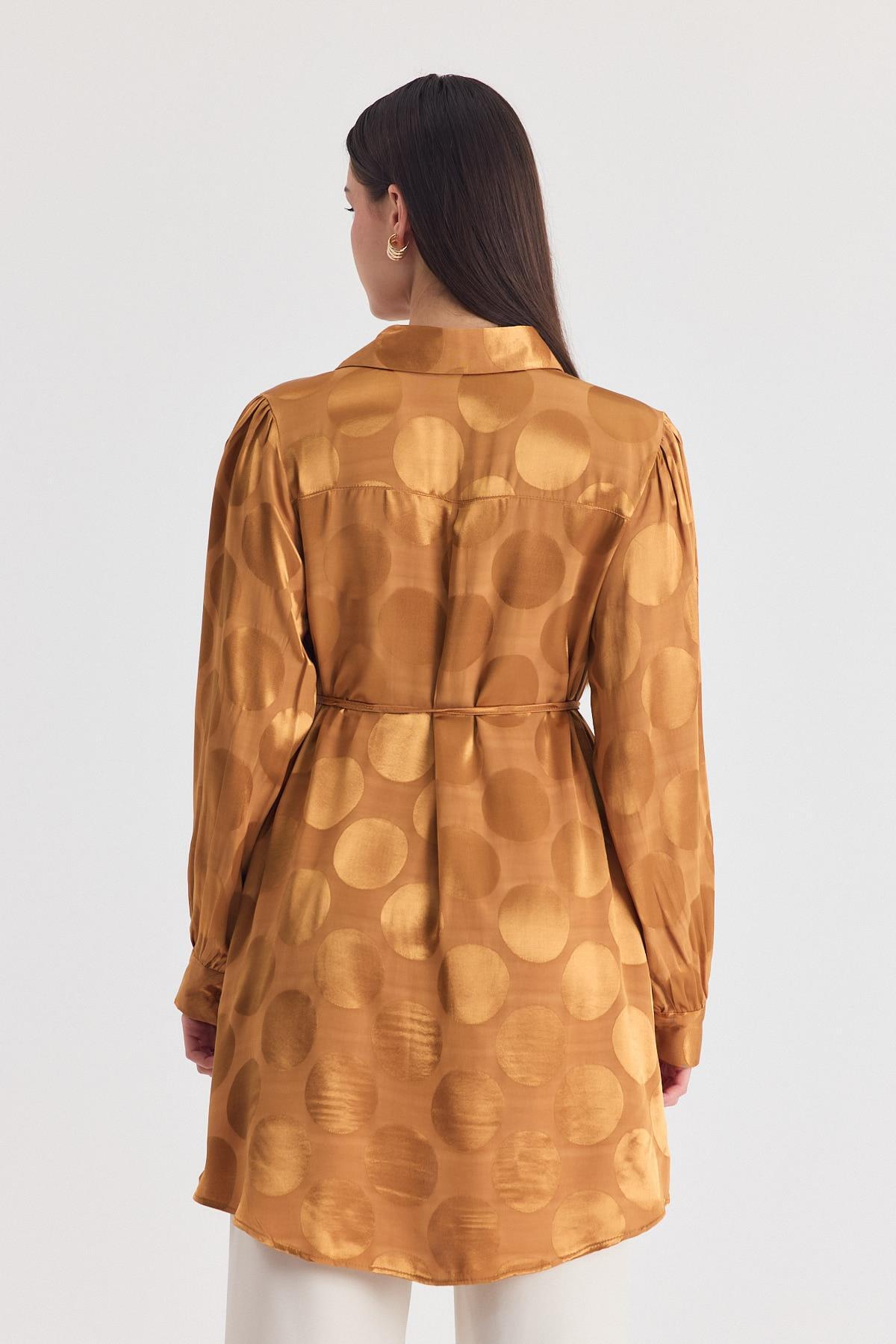 Camel Puantiye Desen İp Bağcık Saten Gömlek 4690A