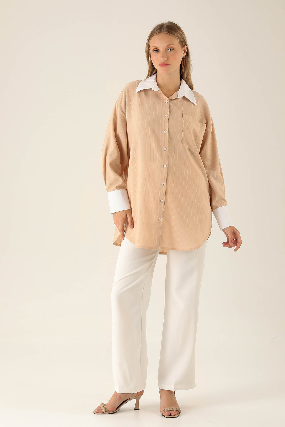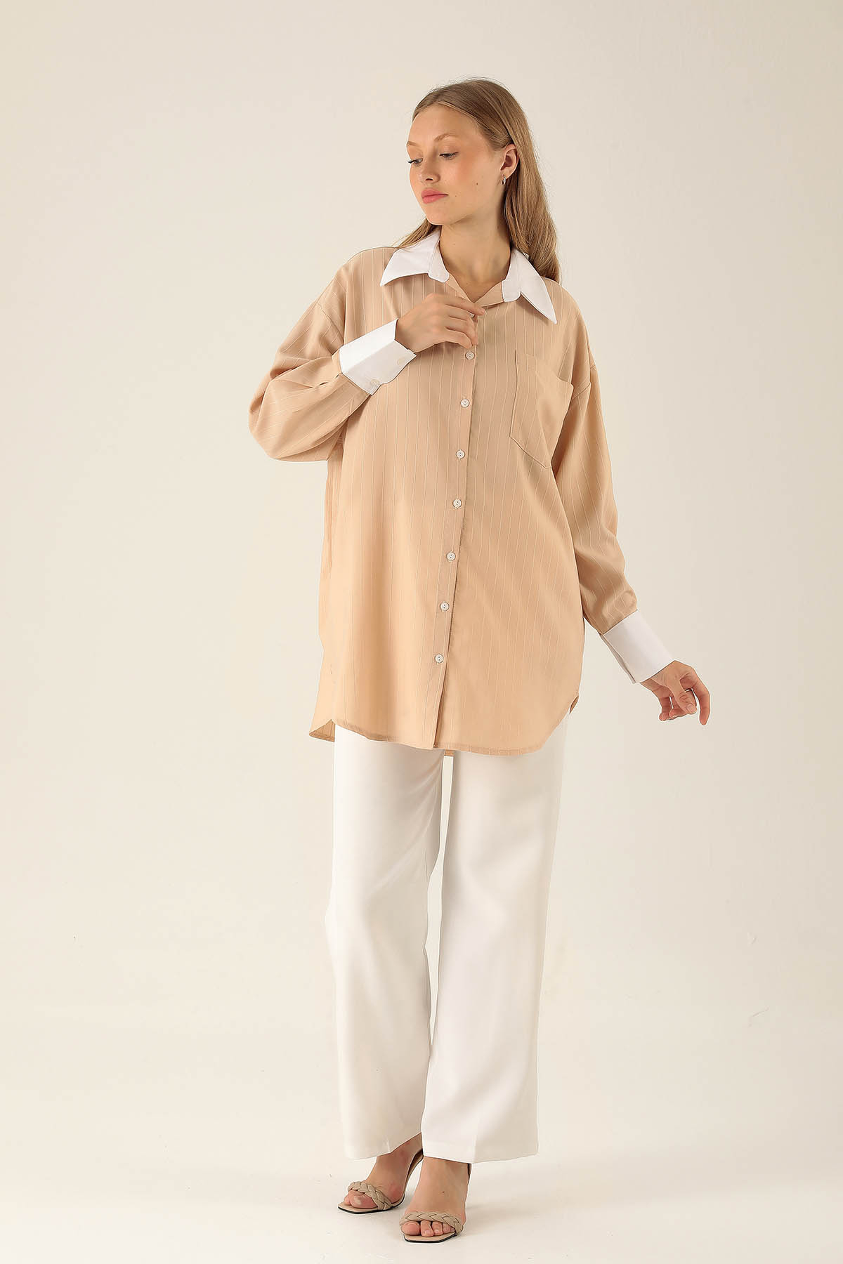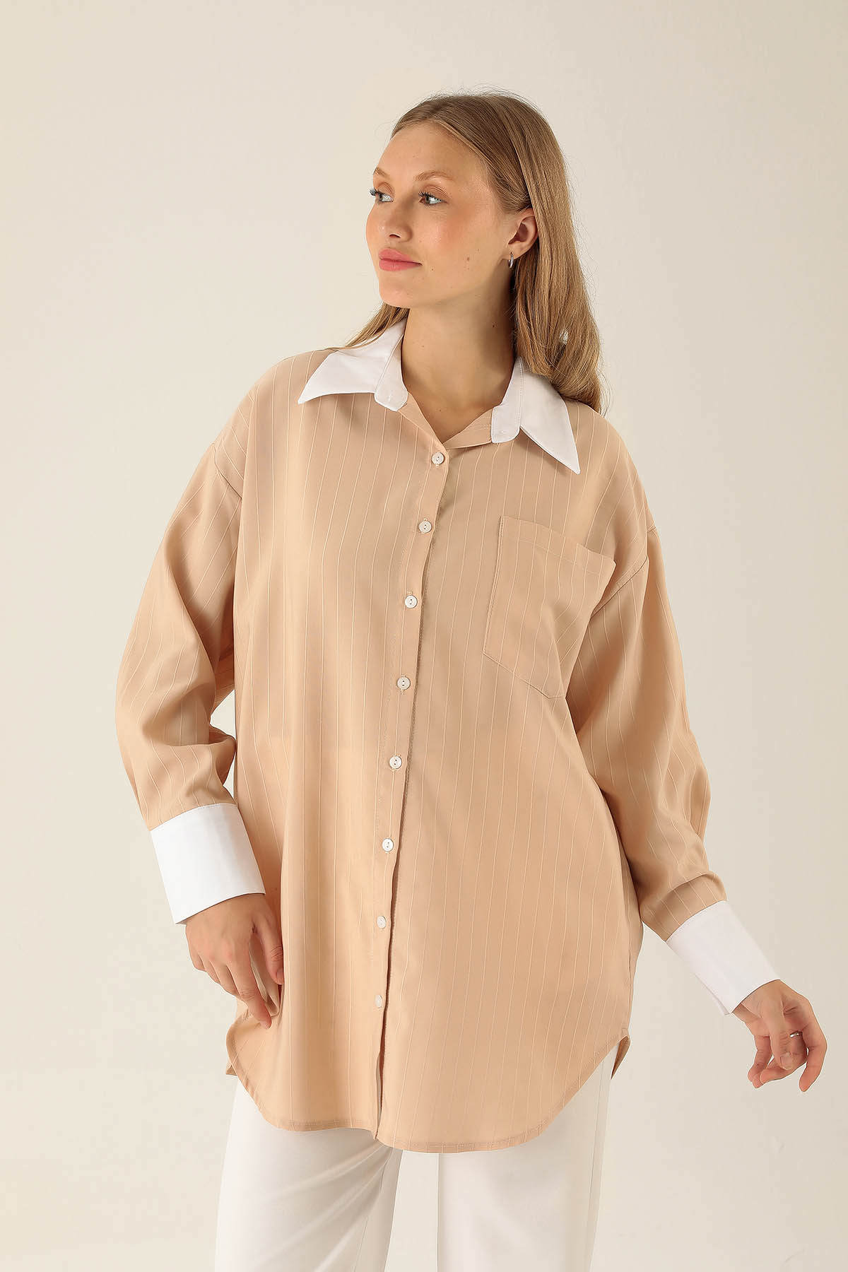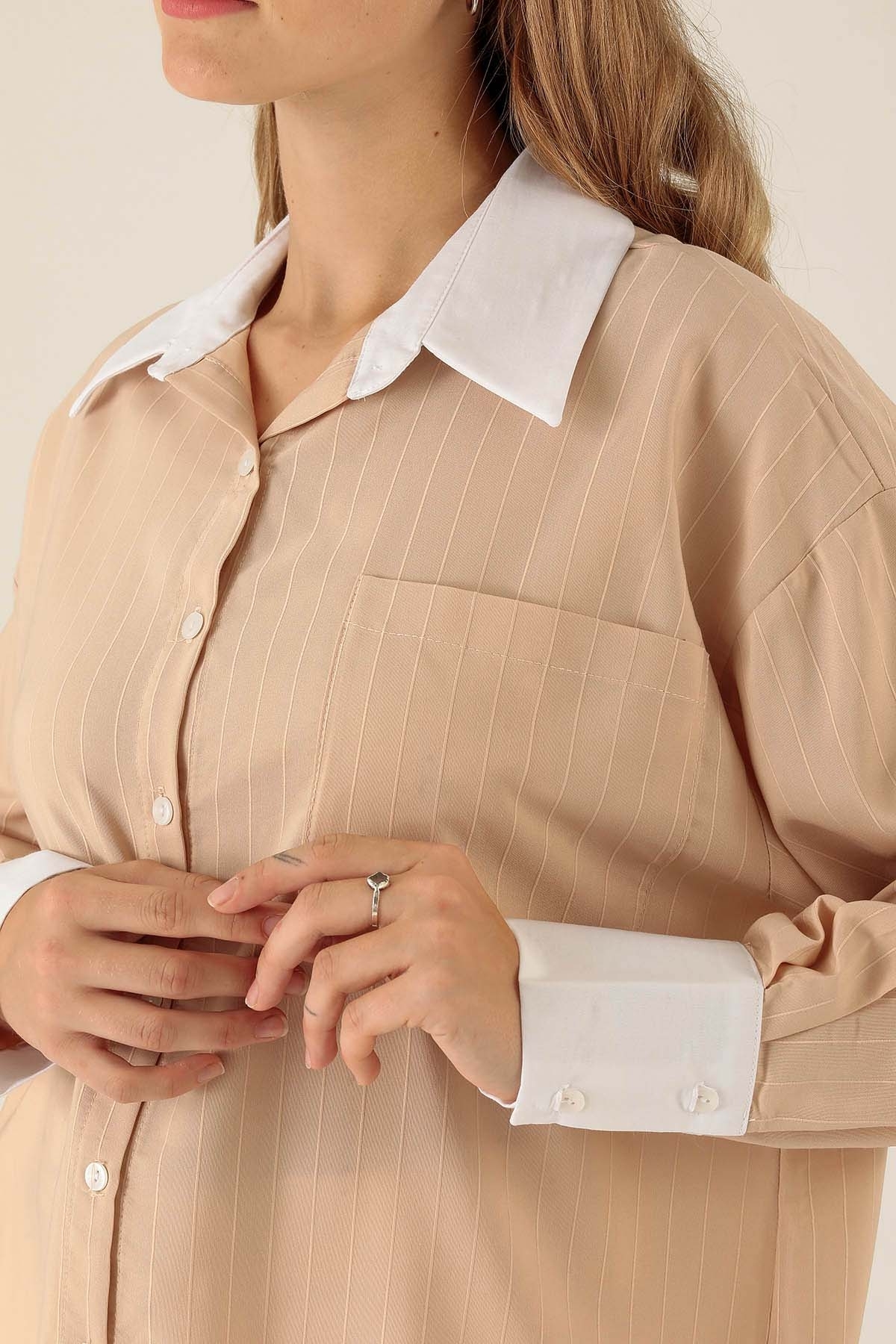 Vizon Çizgili Salaş Gömlek 5475 - RAYS Vizon Çizgili Salaş Gömlek 5475 - RAYS (1)