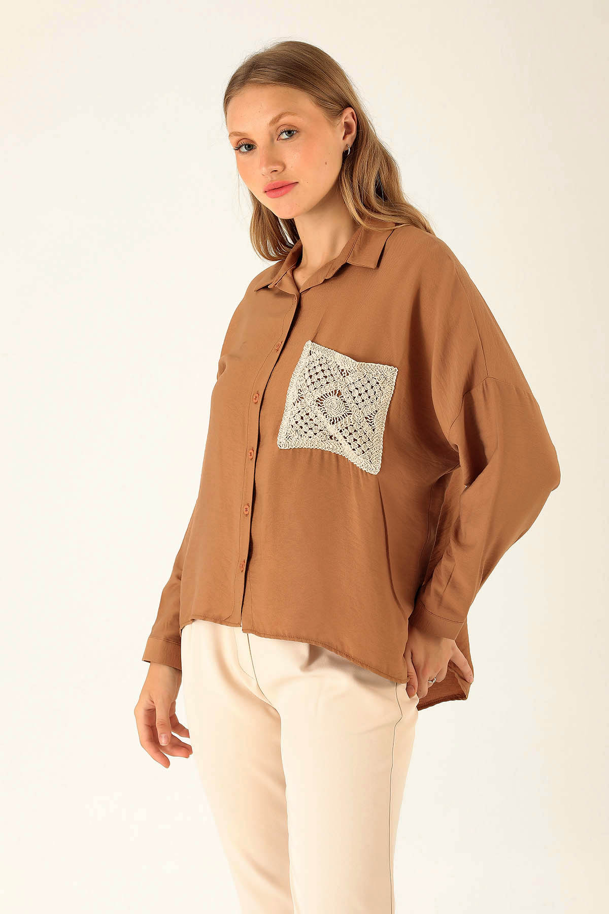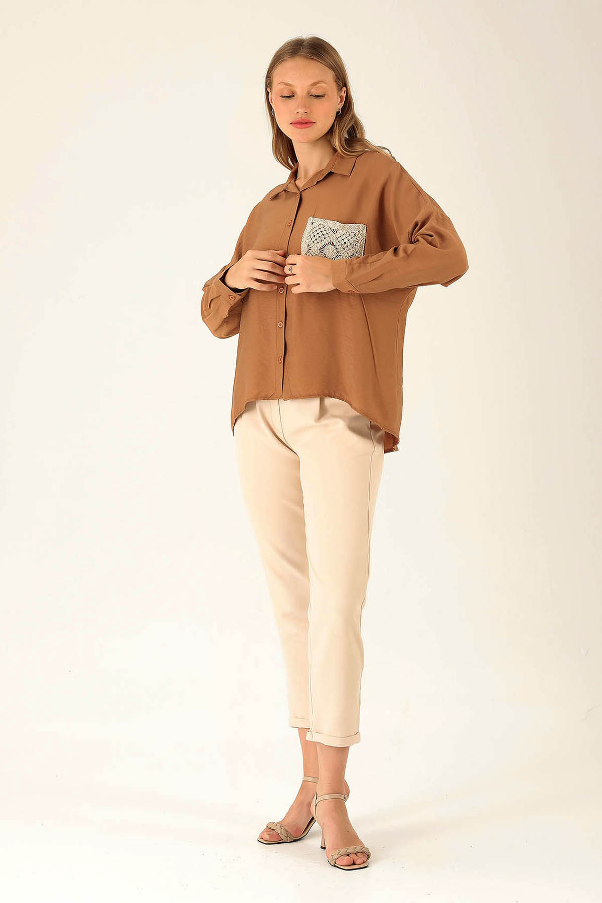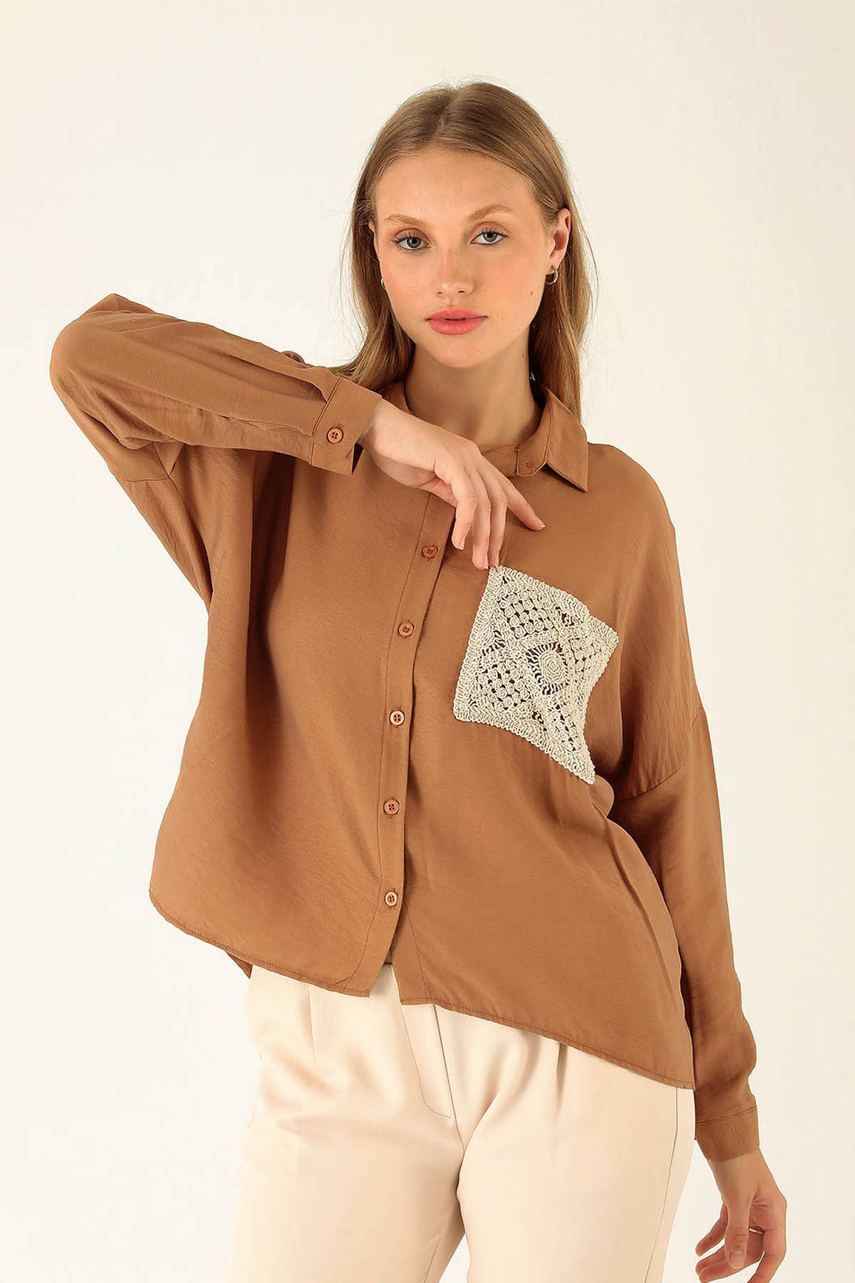 Dantel Cep Detaylı Bayan Gömlek - 6557A Taba