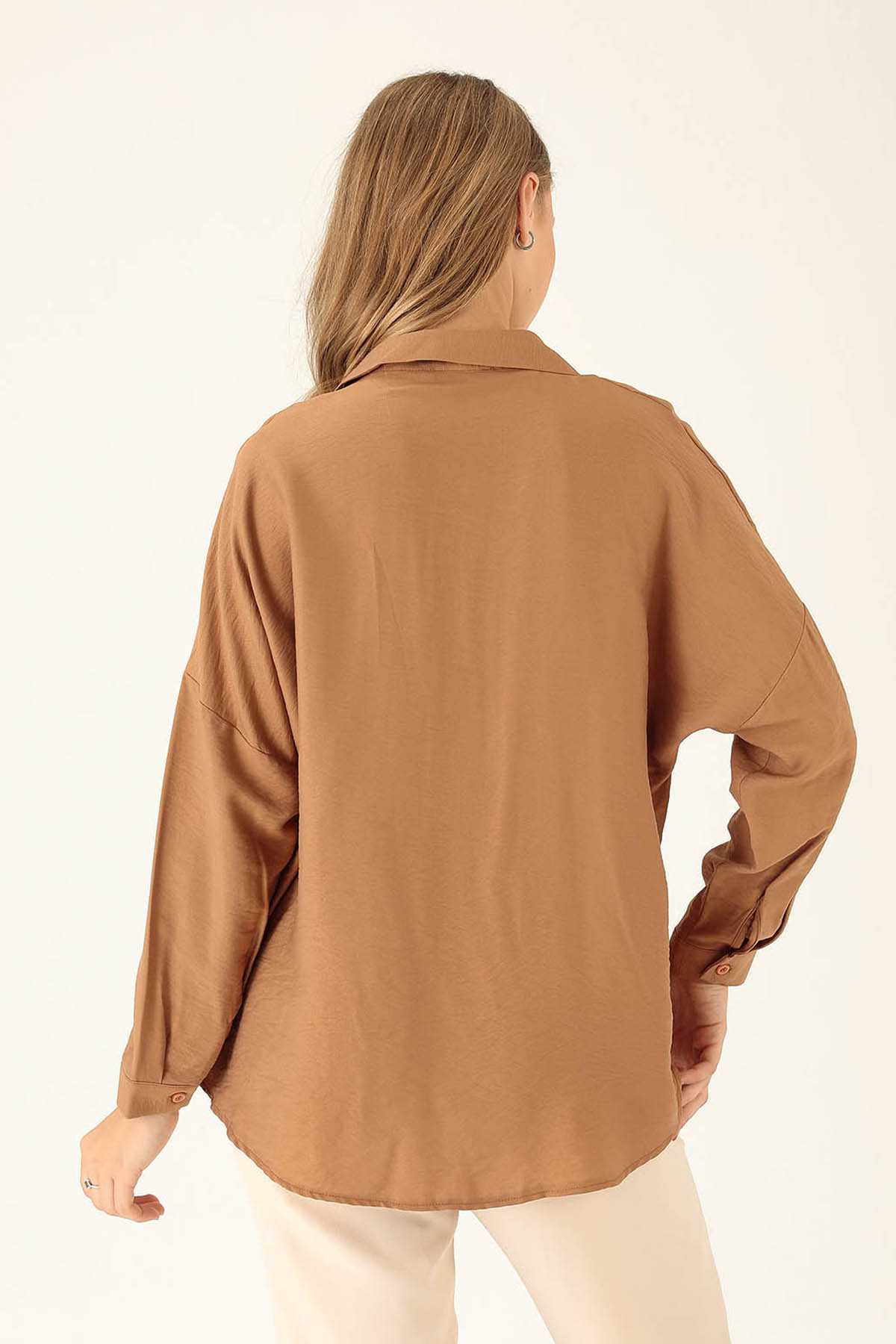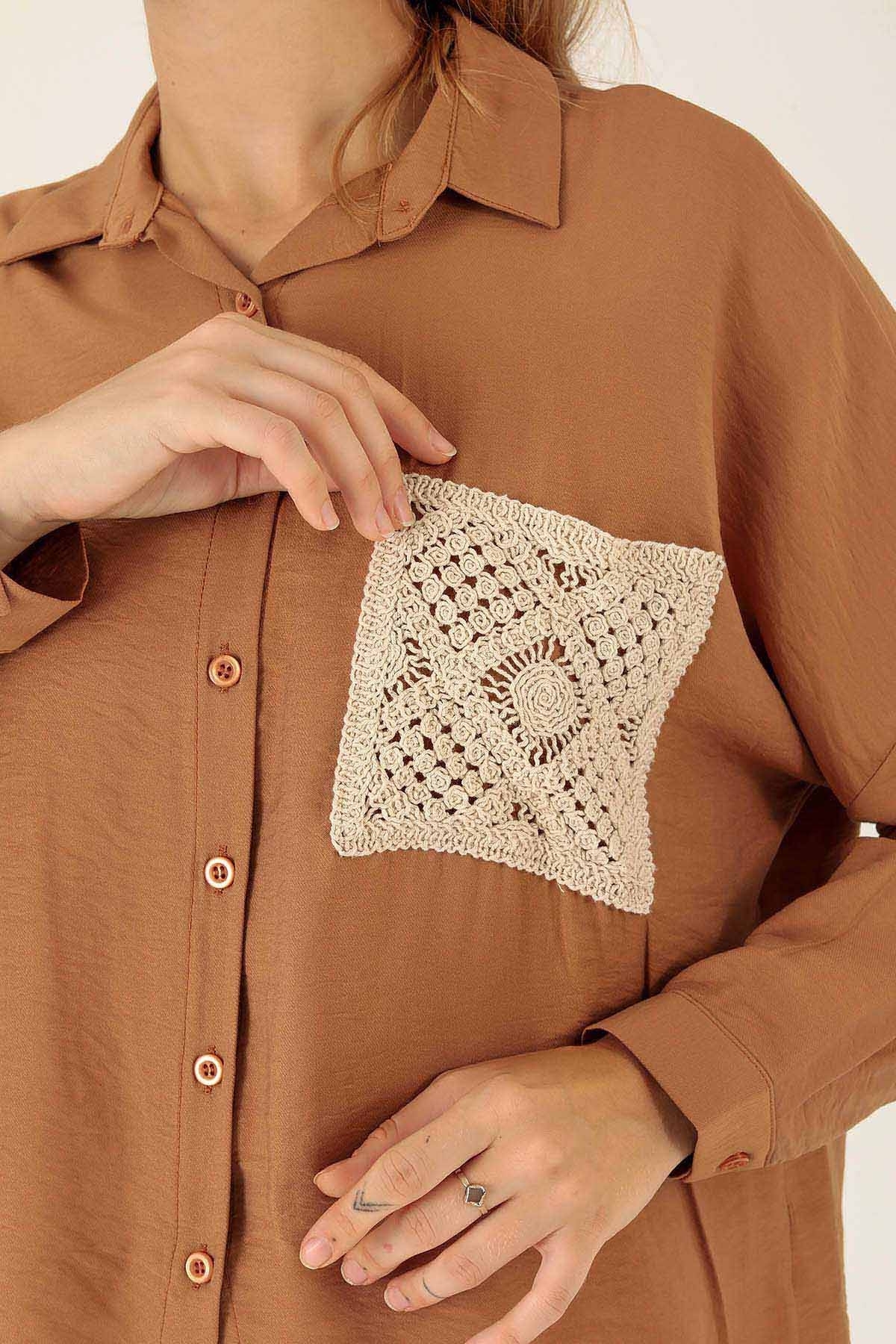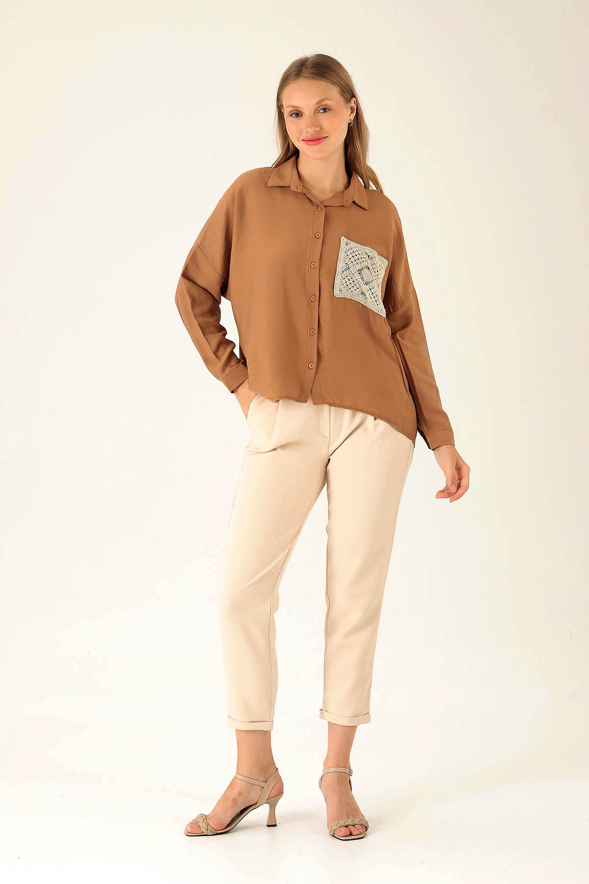 Dantel Cep Detaylı Bayan Gömlek - 6557A Taba