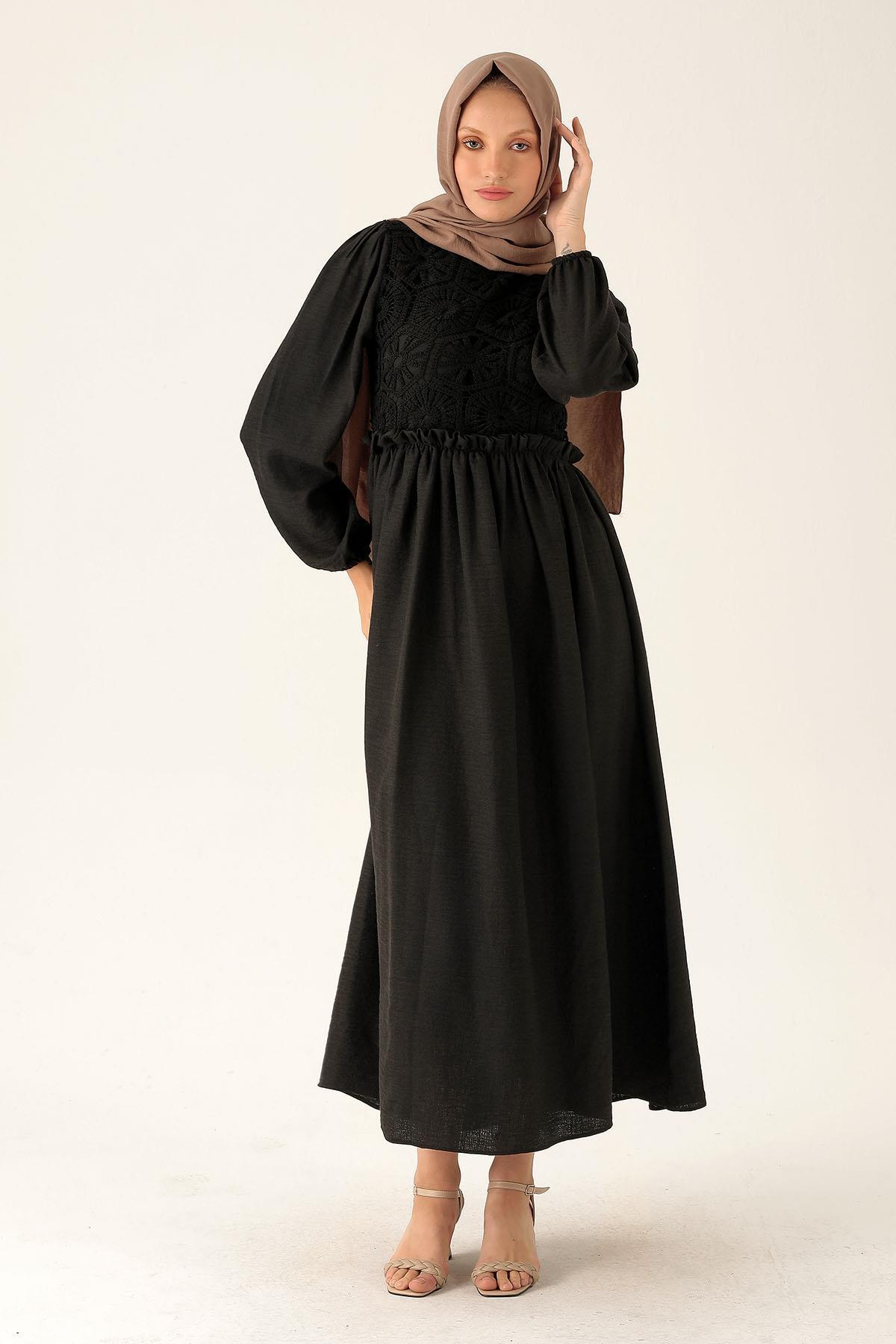 Siyah Dantelli Kemer Detay Elbise 35518 - RAYS Siyah Dantelli Kemer Detay Elbise 35518 - RAYS (1)