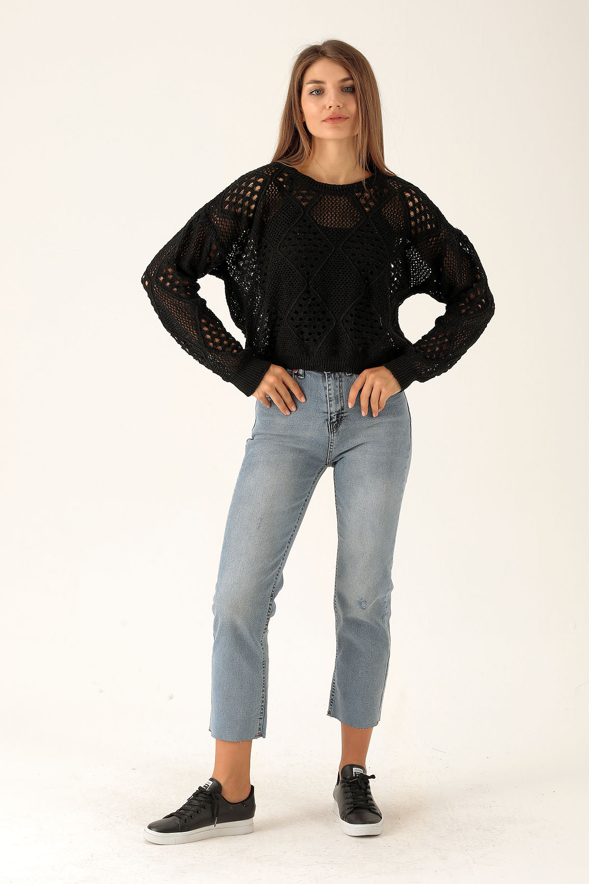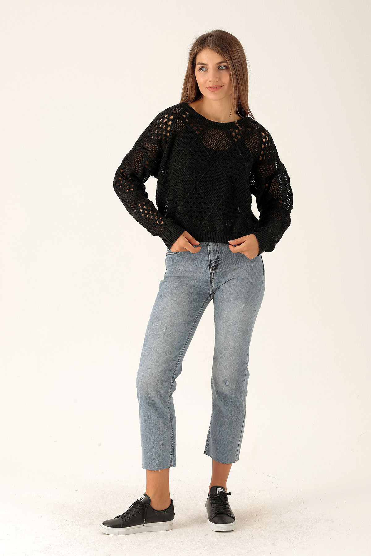 Delikli Bayan Kazak - 1528 Siyah