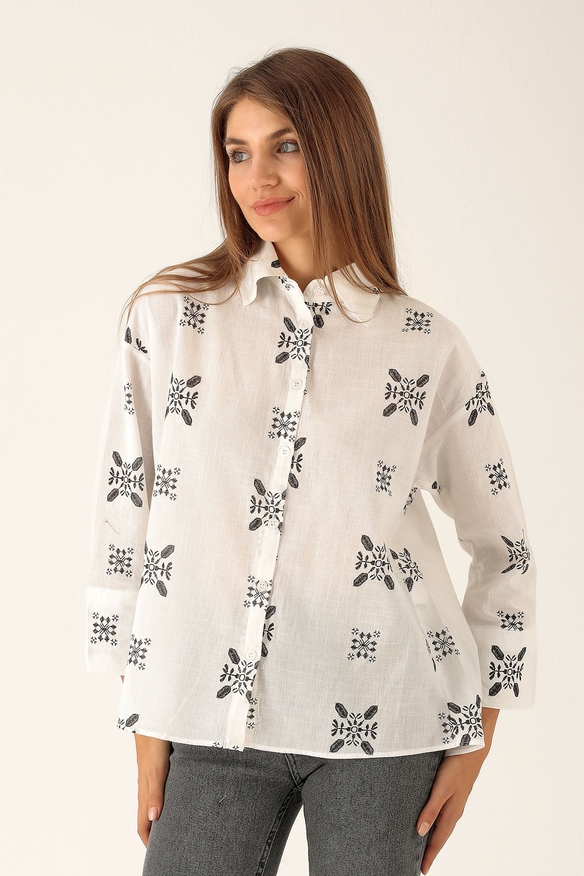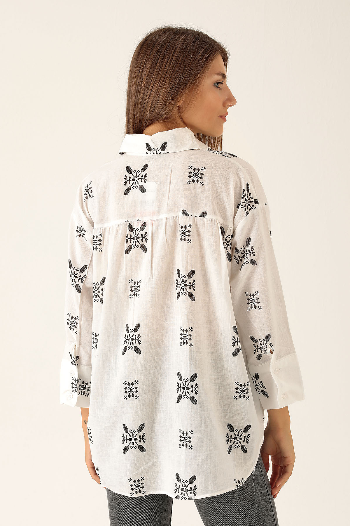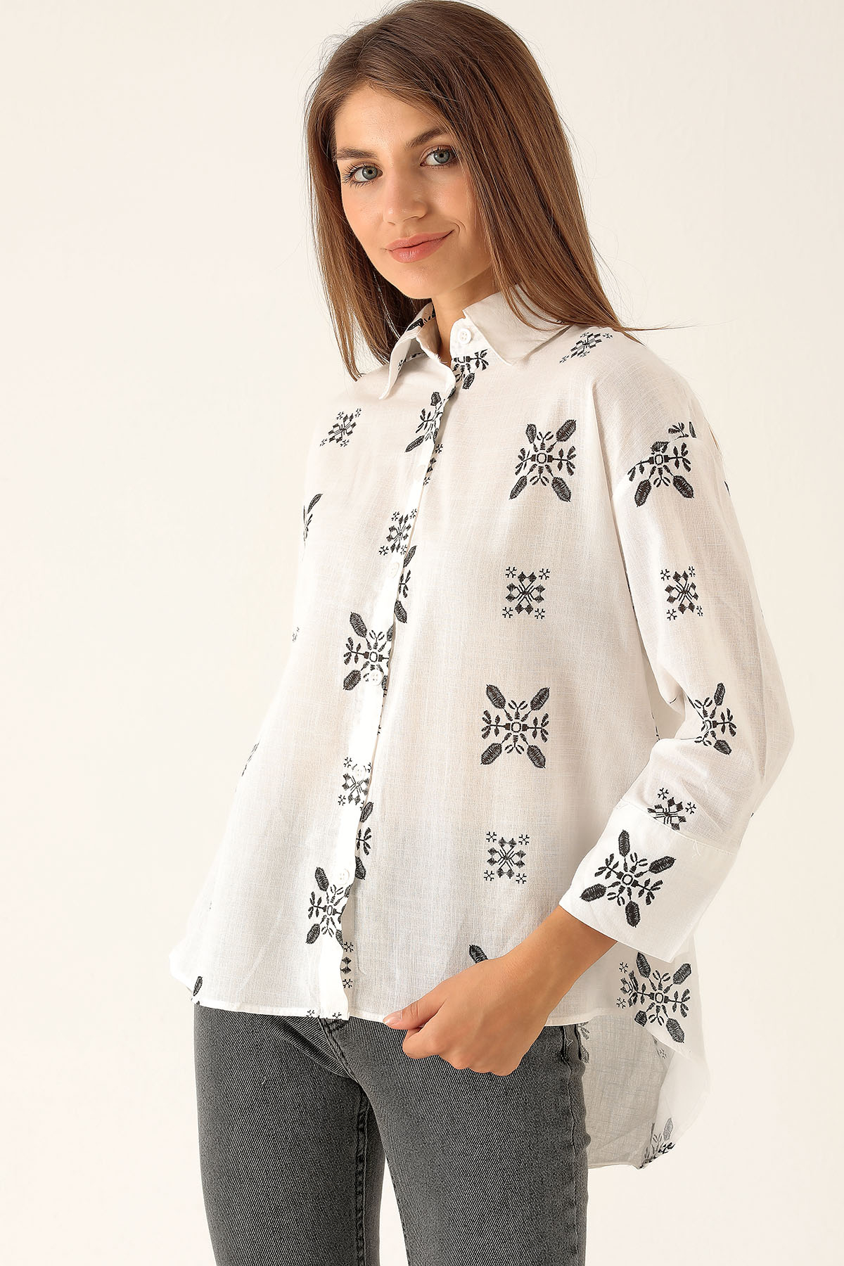 Desenli Keten Bayan Gömlek - 23300 Siyah