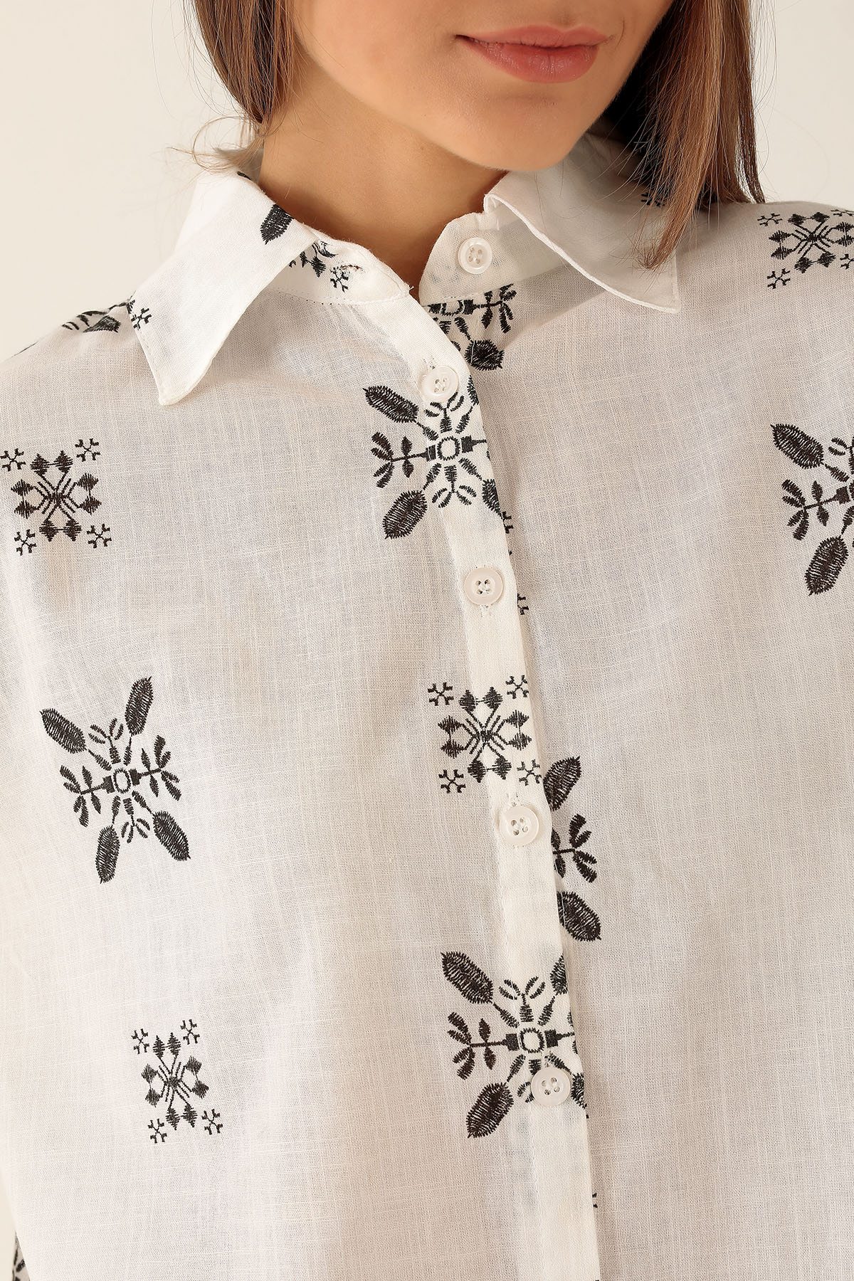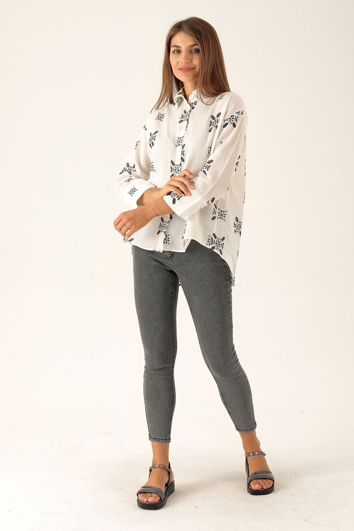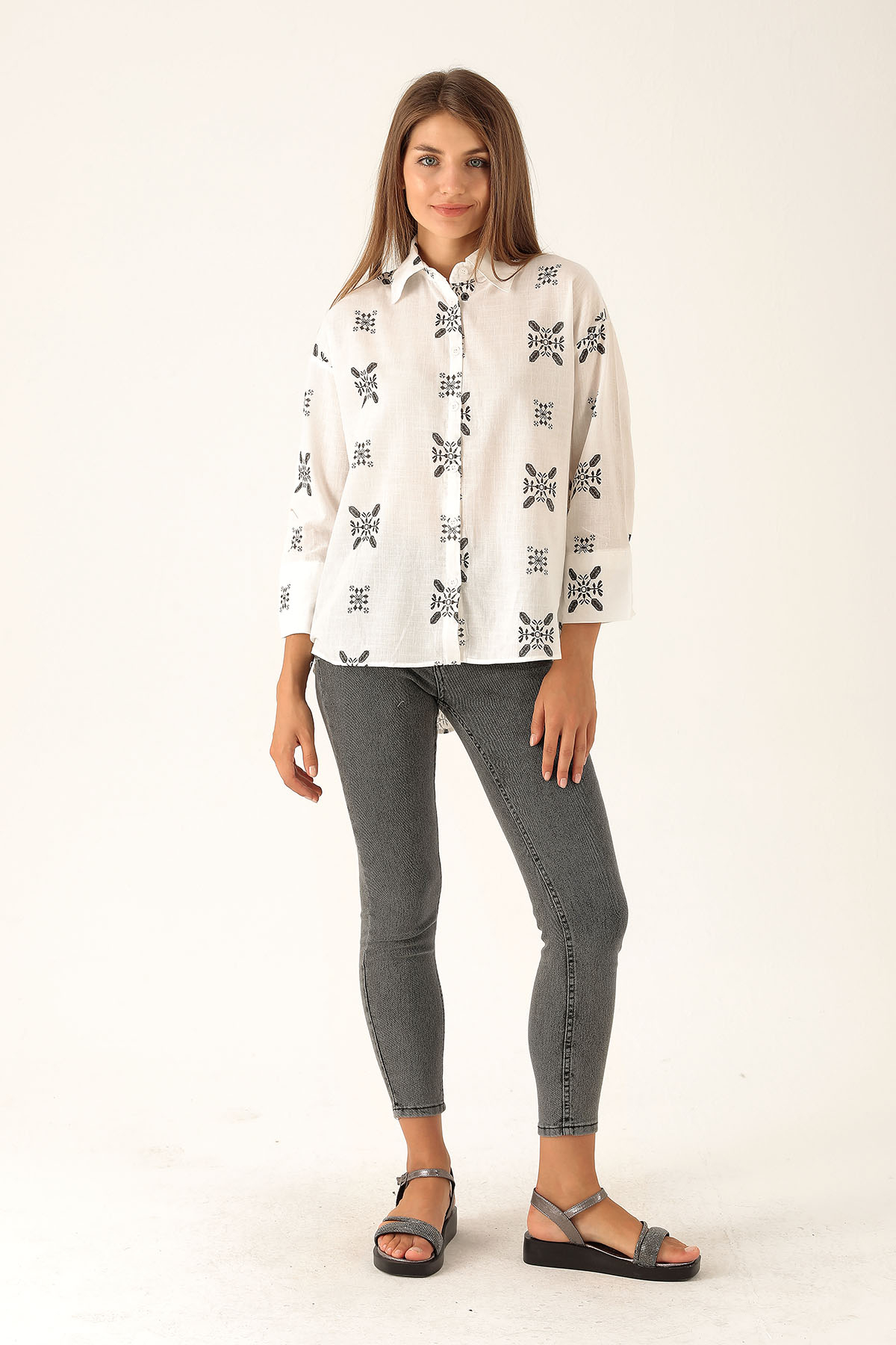 Desenli Keten Bayan Gömlek - 23300 Siyah