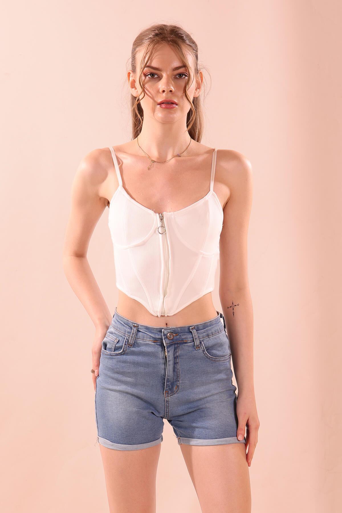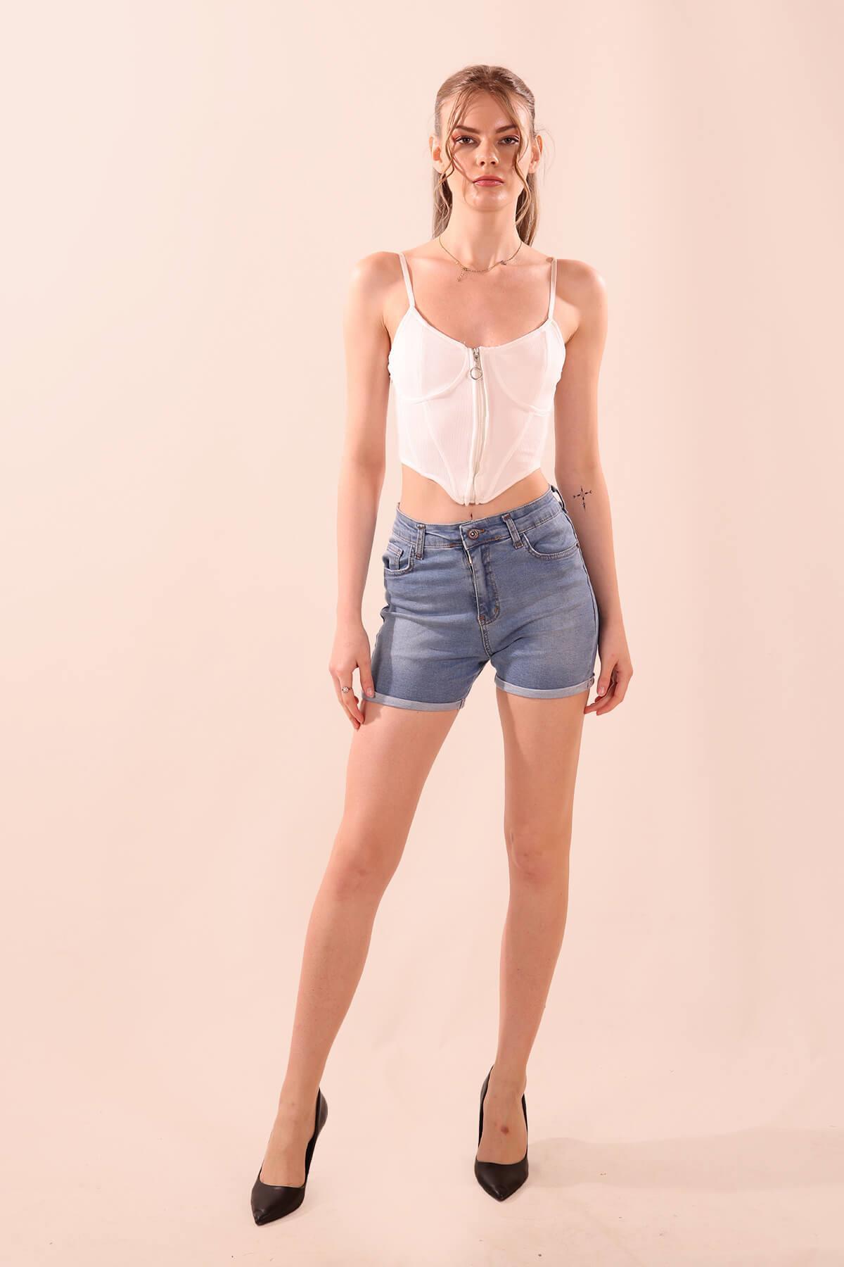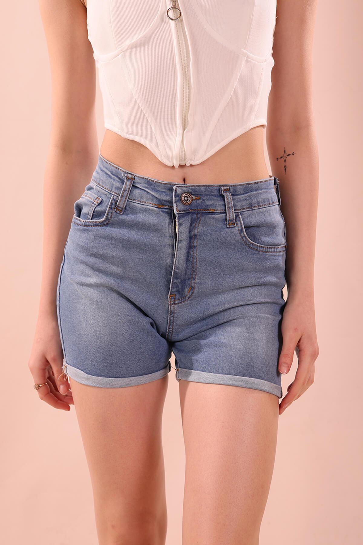 Double Paça Şort - 0181 Mavi