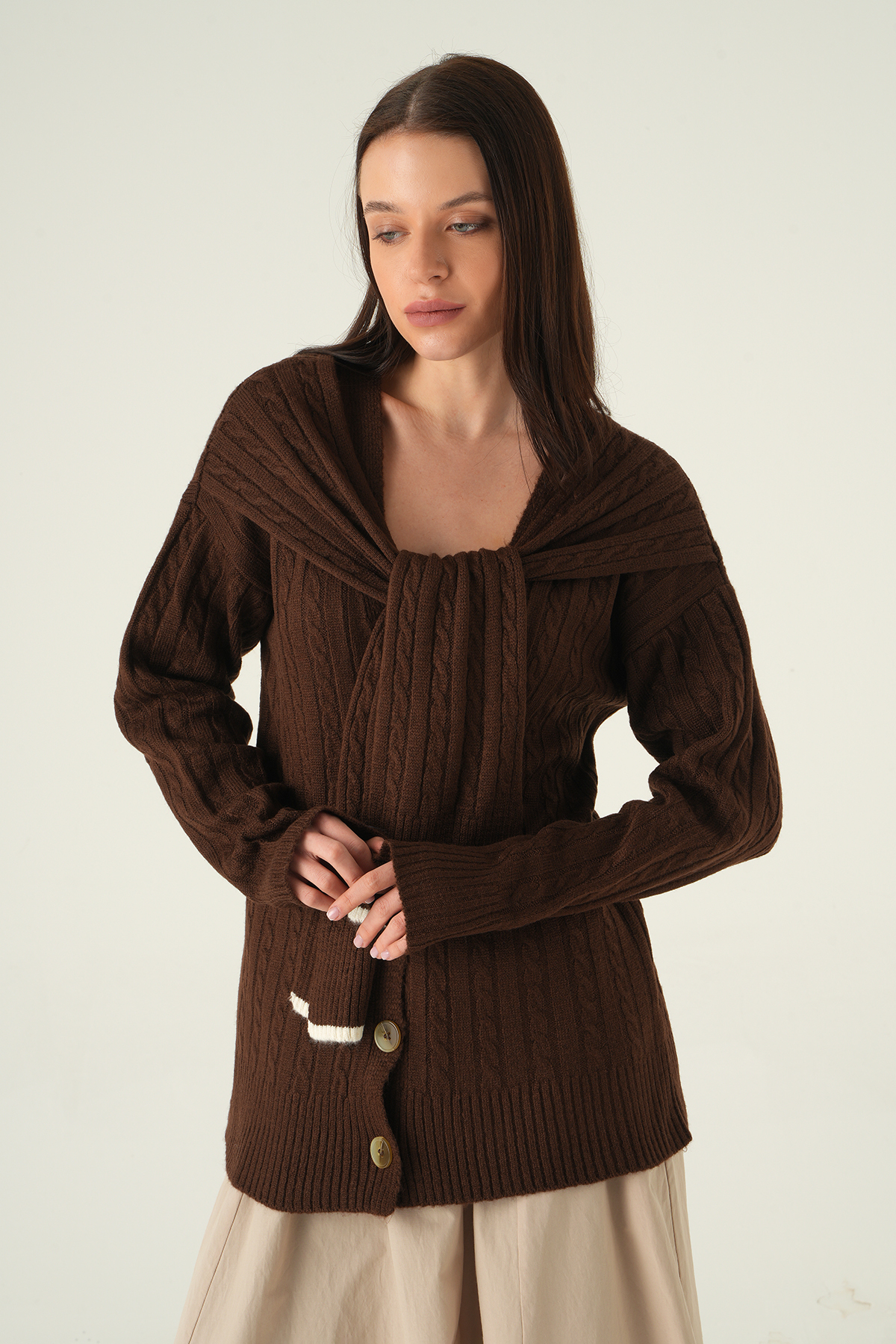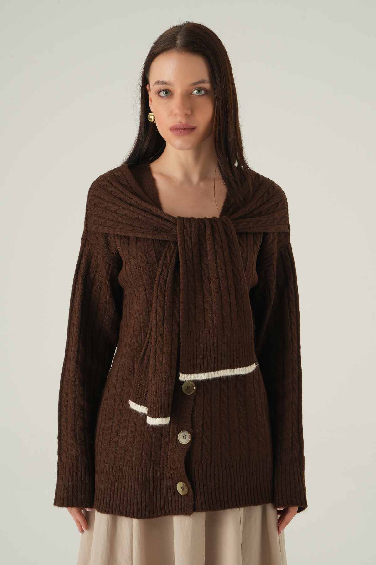 8384A Ön Şerit Detay Hırka Kahve - RAYS 8384A Ön Şerit Detay Hırka Kahve - RAYS (1)