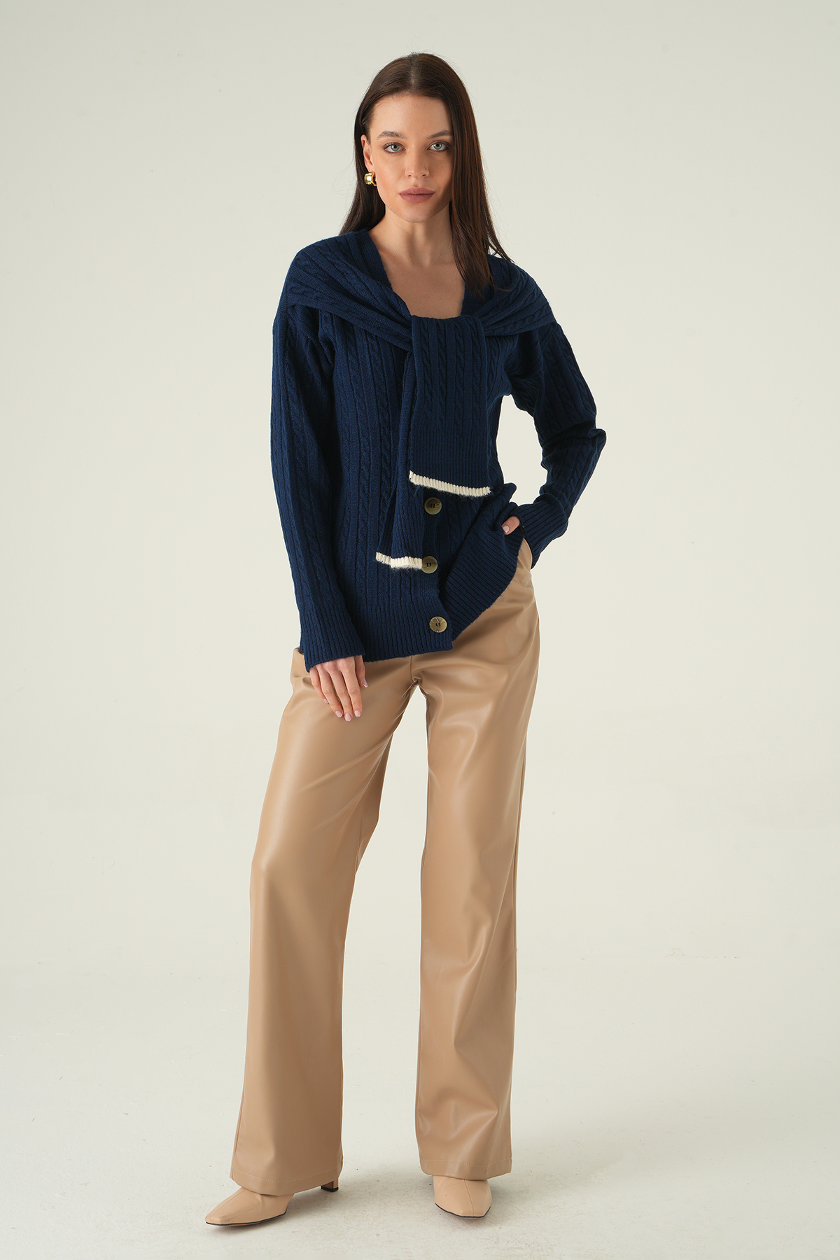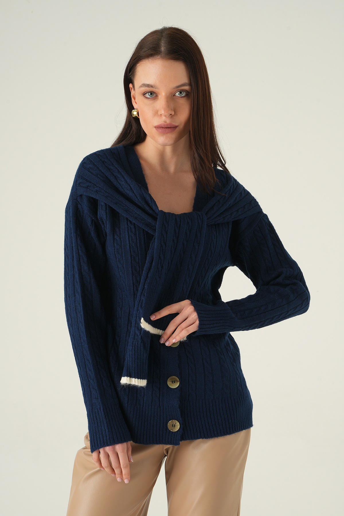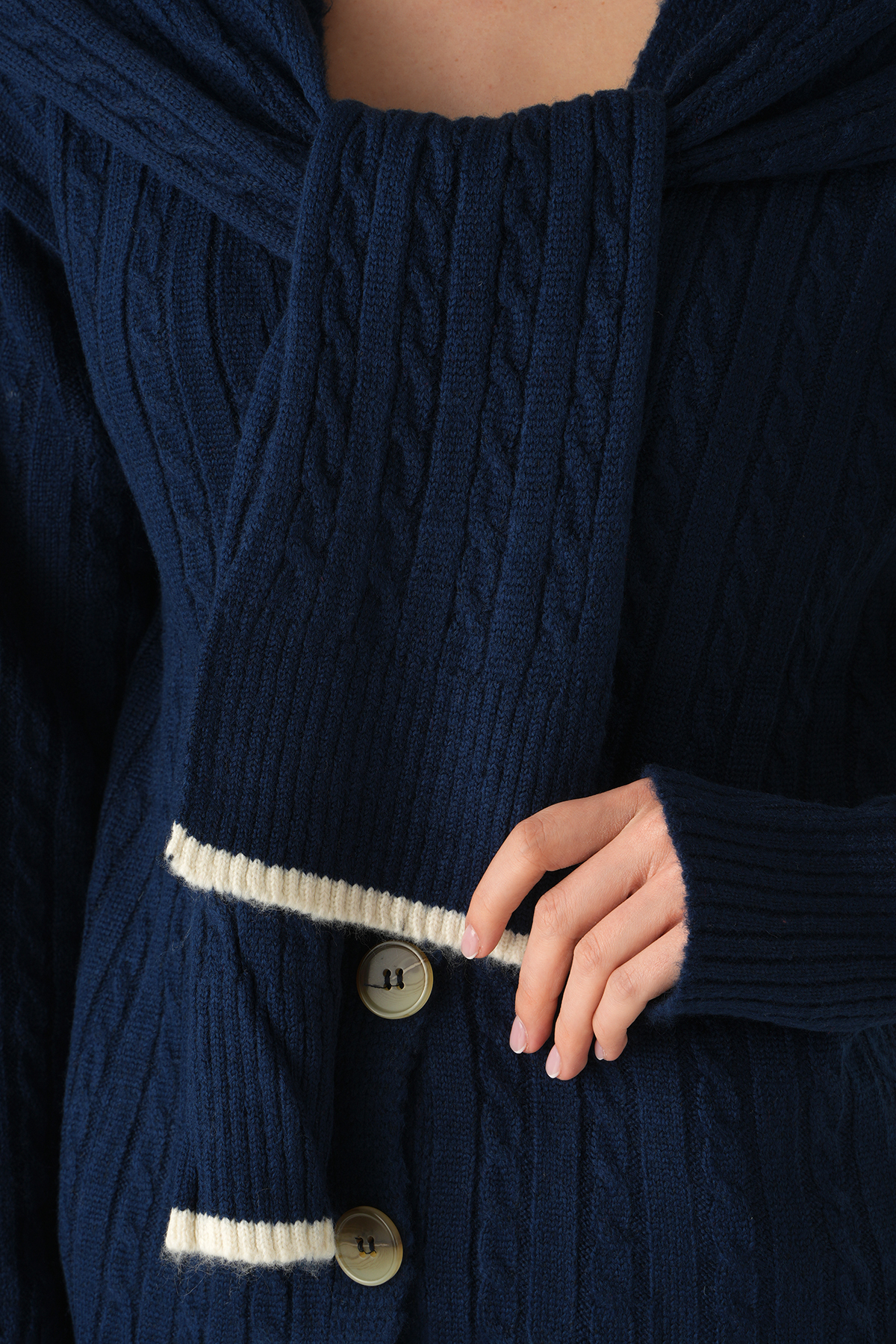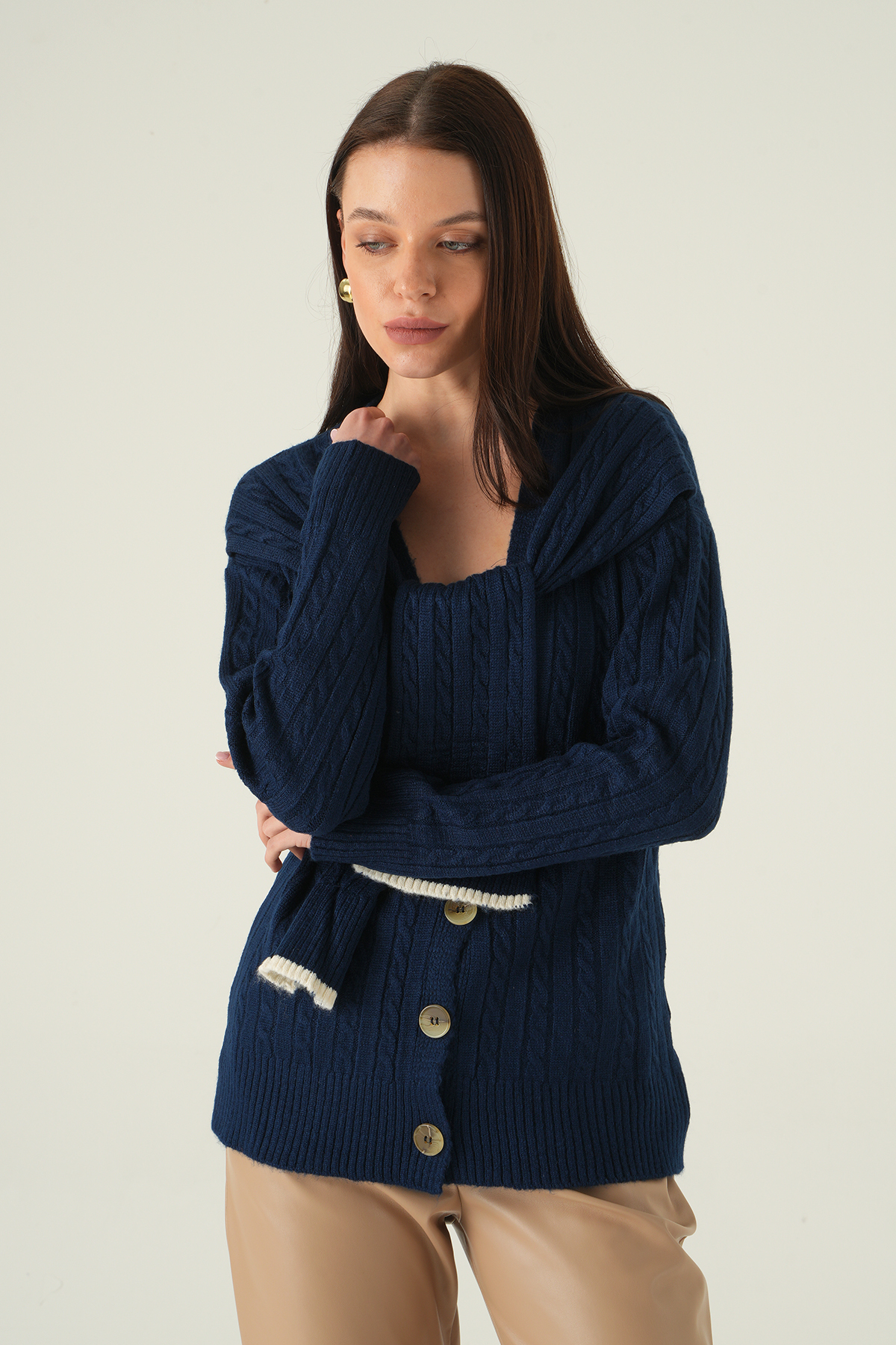 Düğmeli Örgülü Hırka Laci 2470