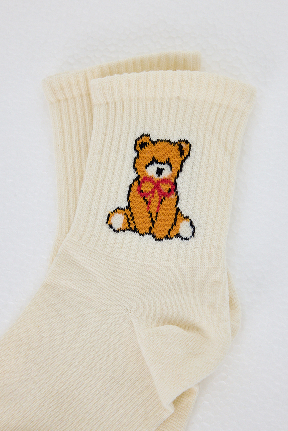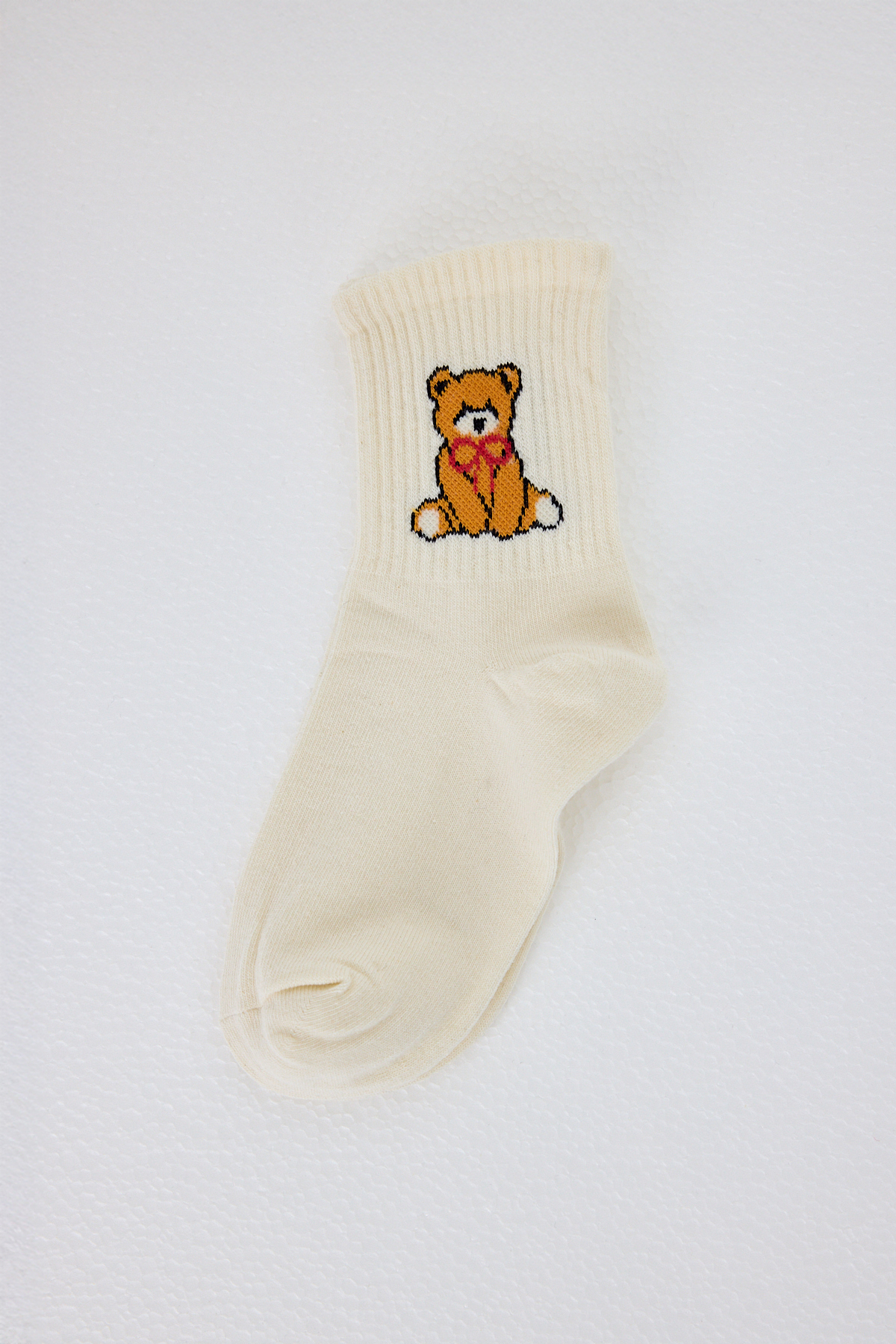 Ekru Ayı Desenli Örme Soket Çorap 1214
