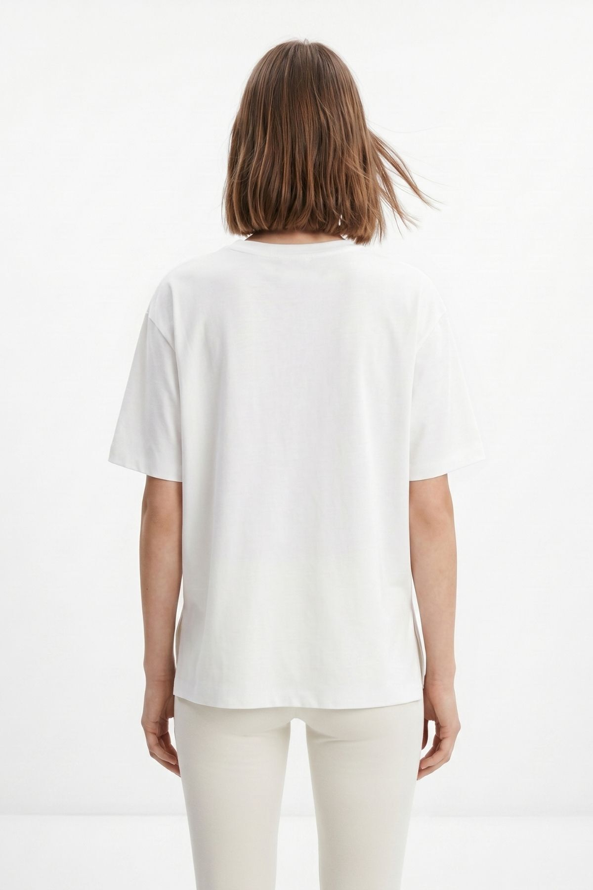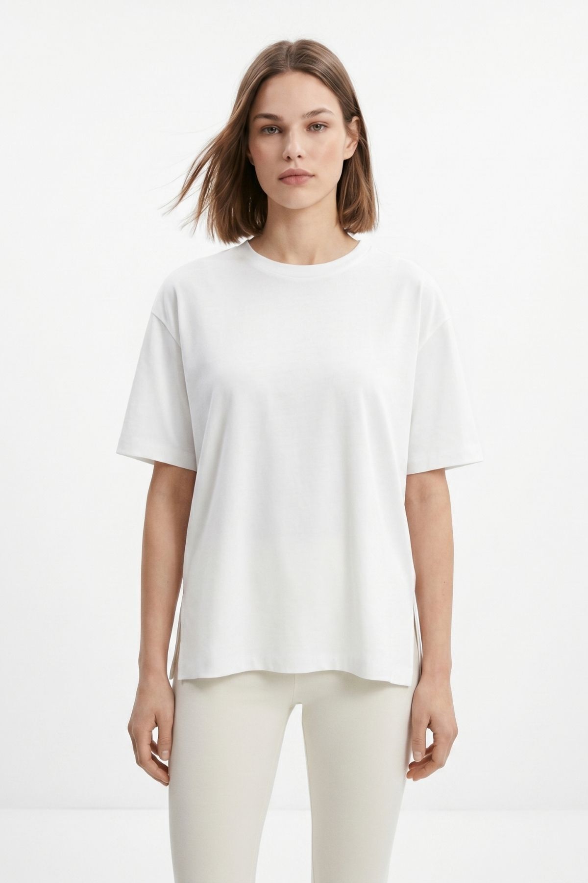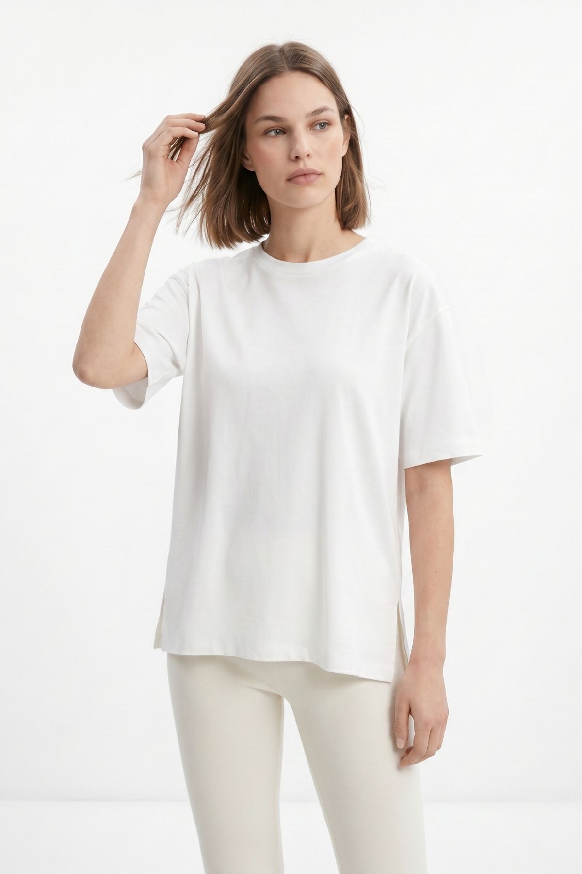 Ekru Bisiklet Yaka Salaş Tişört 0474