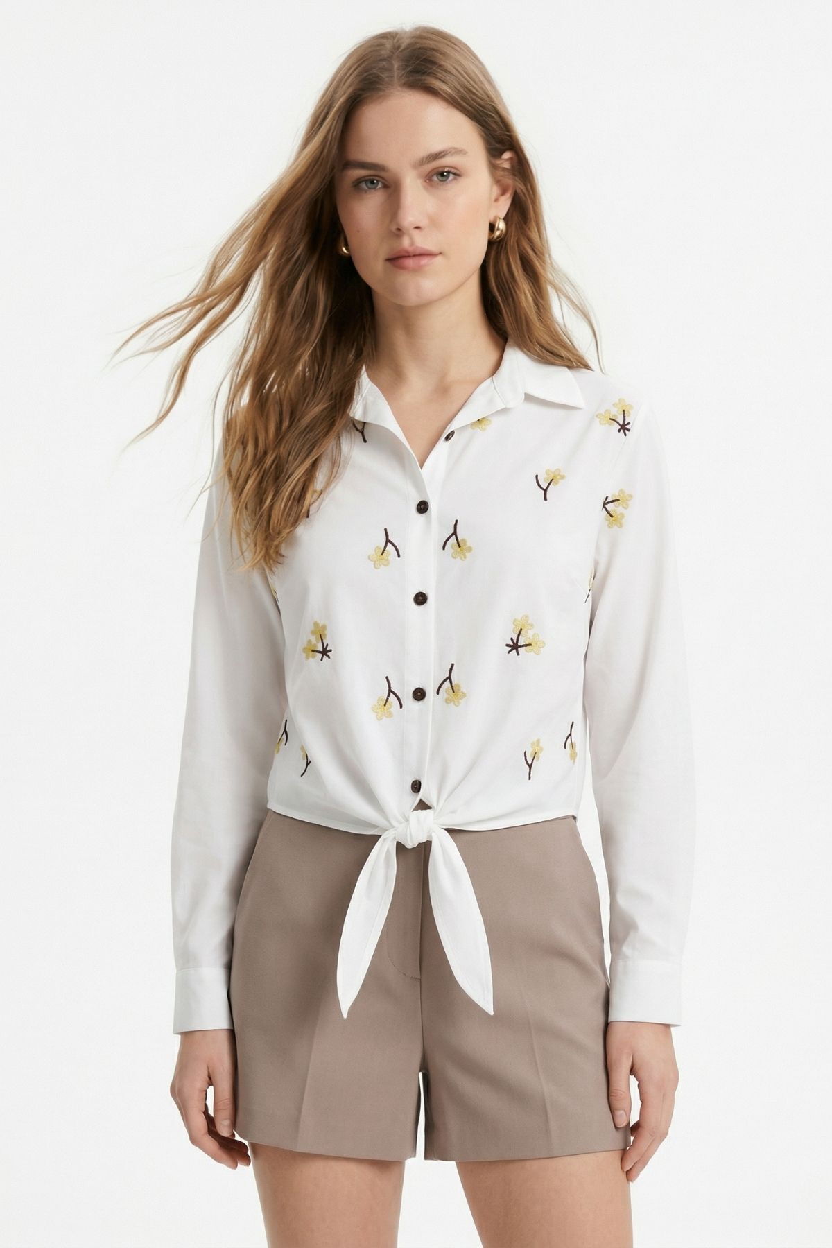 6282 Çiçek Nakışlı Bağlamalı Gömlek
