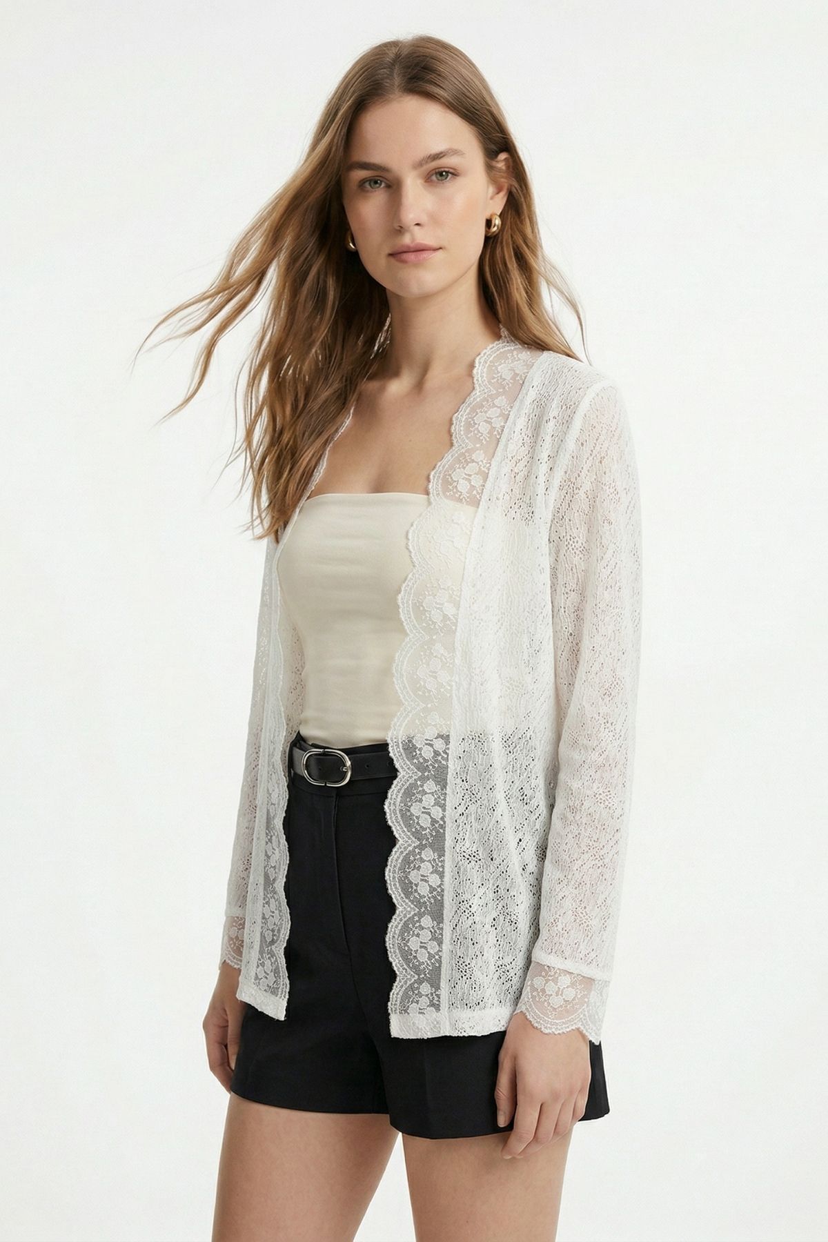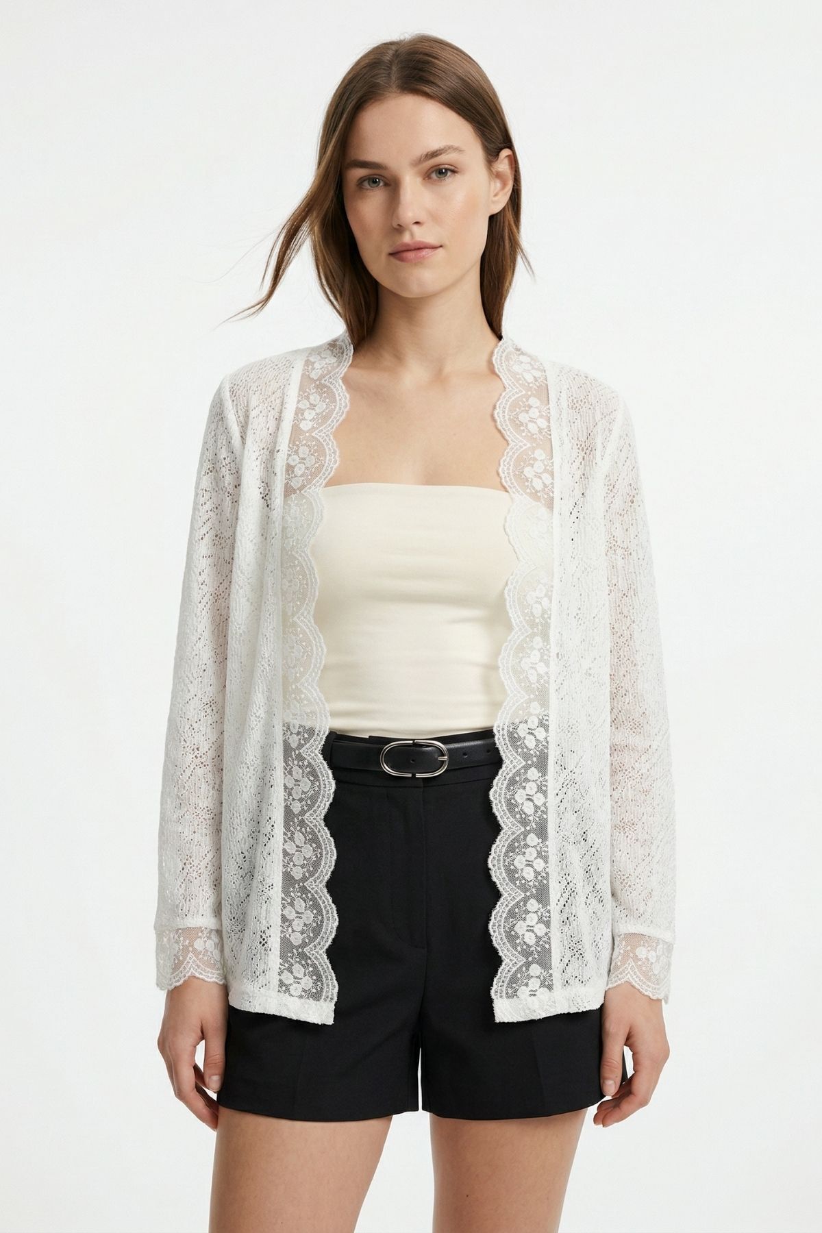 Ekru Dantelli Hırka 3099