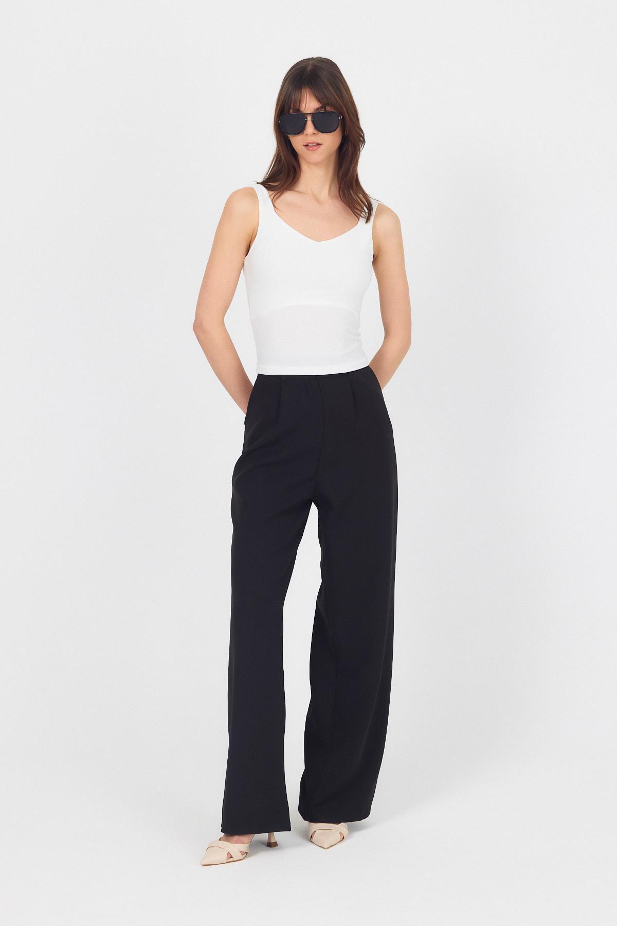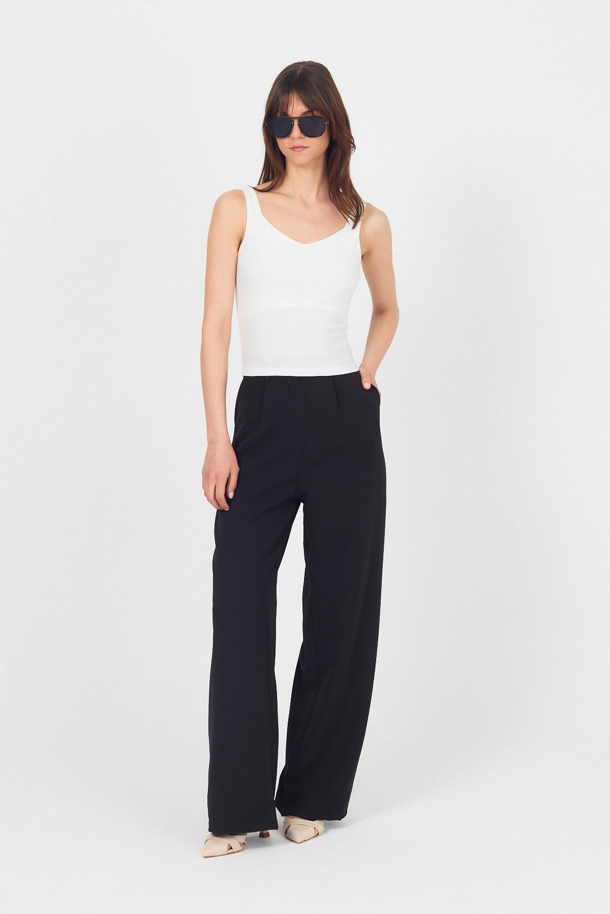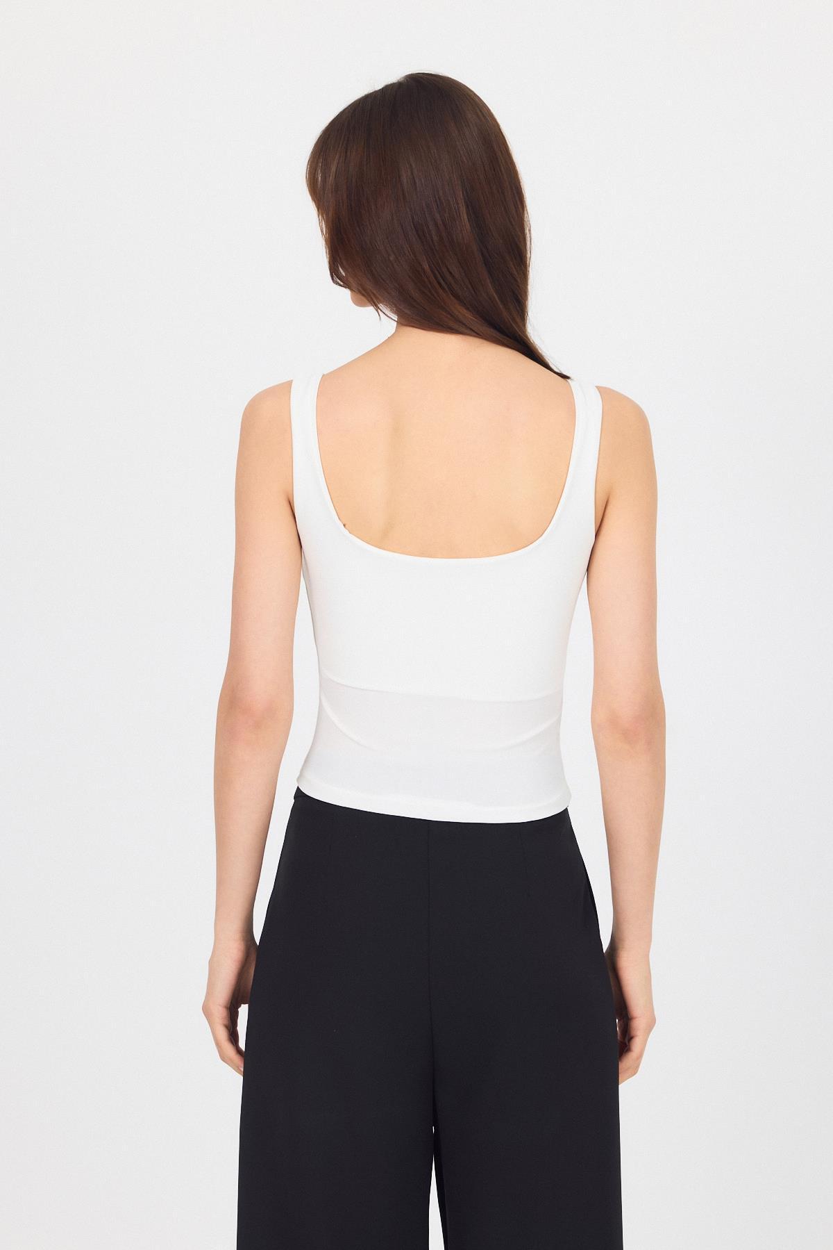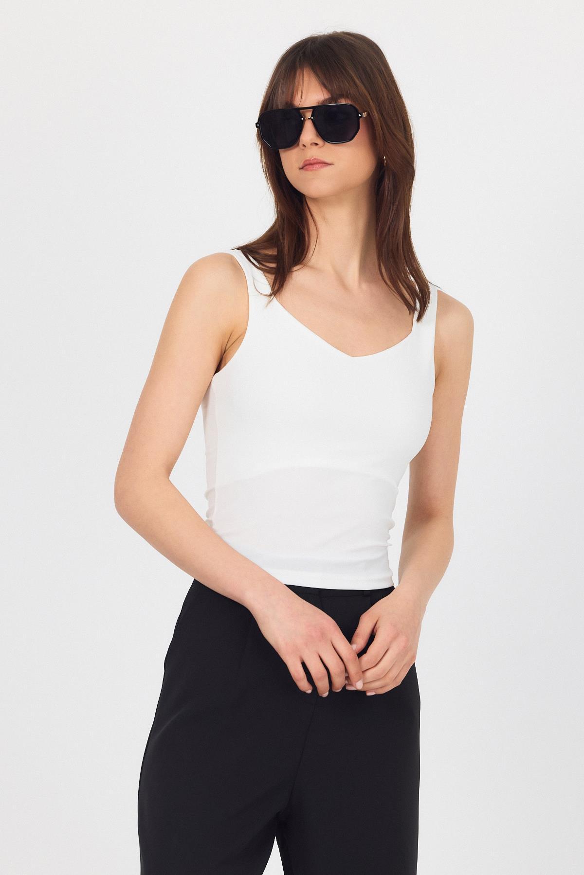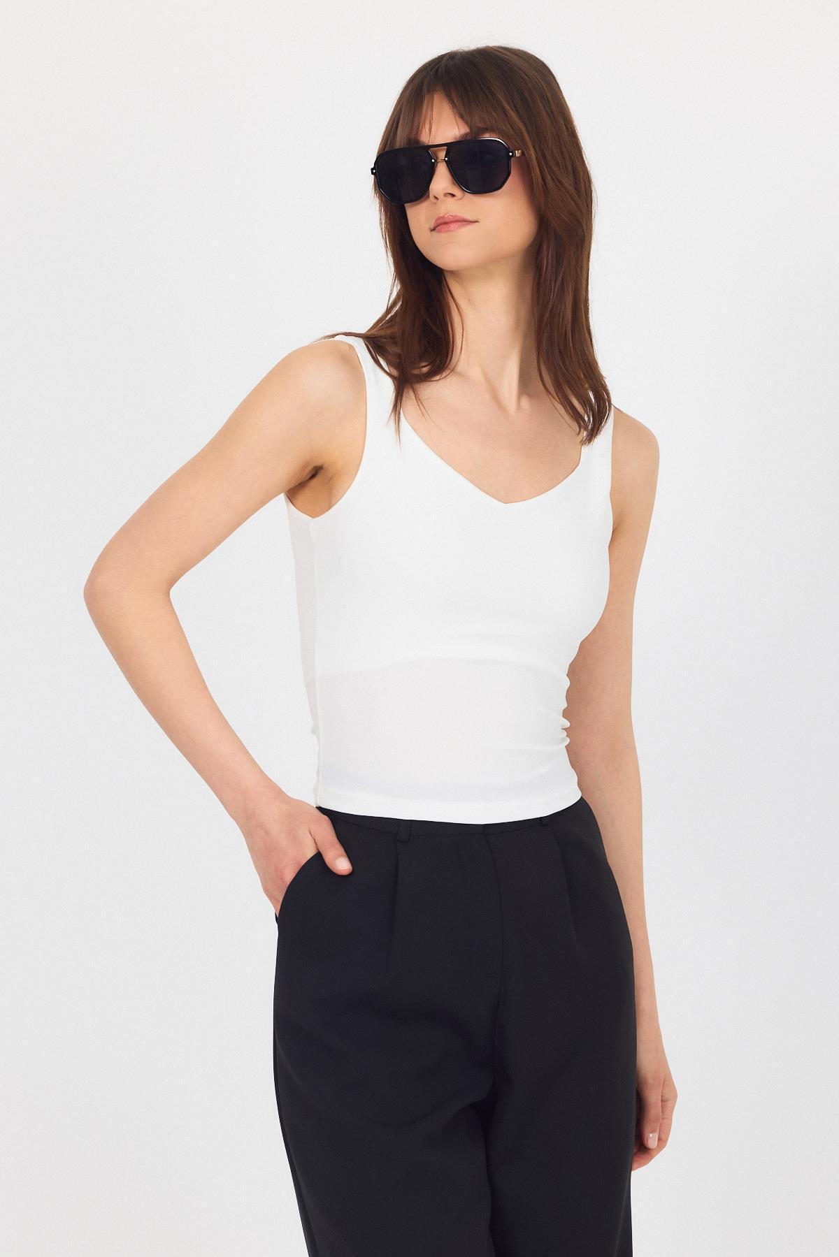 Ekru Kalın Askılı V Yaka Bluz 13293