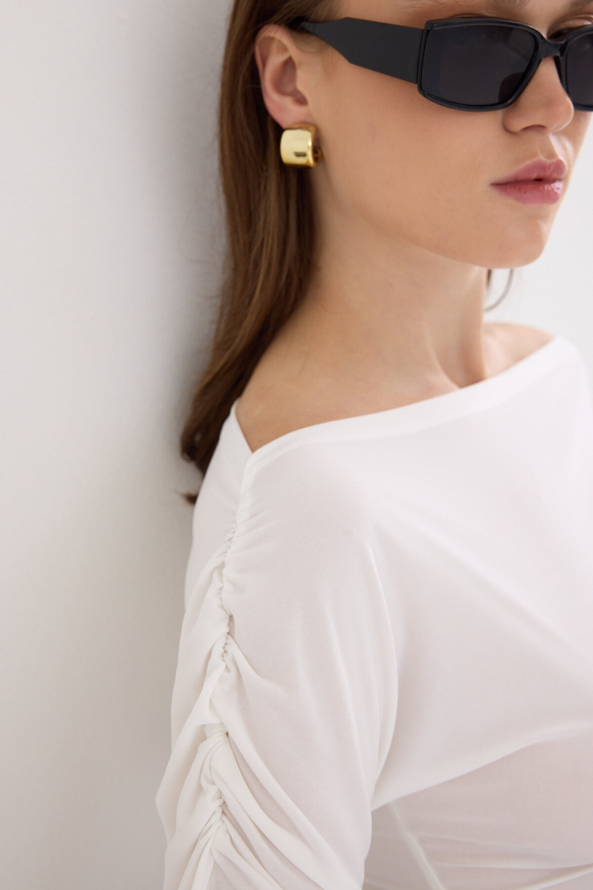 Ekru Kayık Yaka Kol Büzgülü Bluz 2433